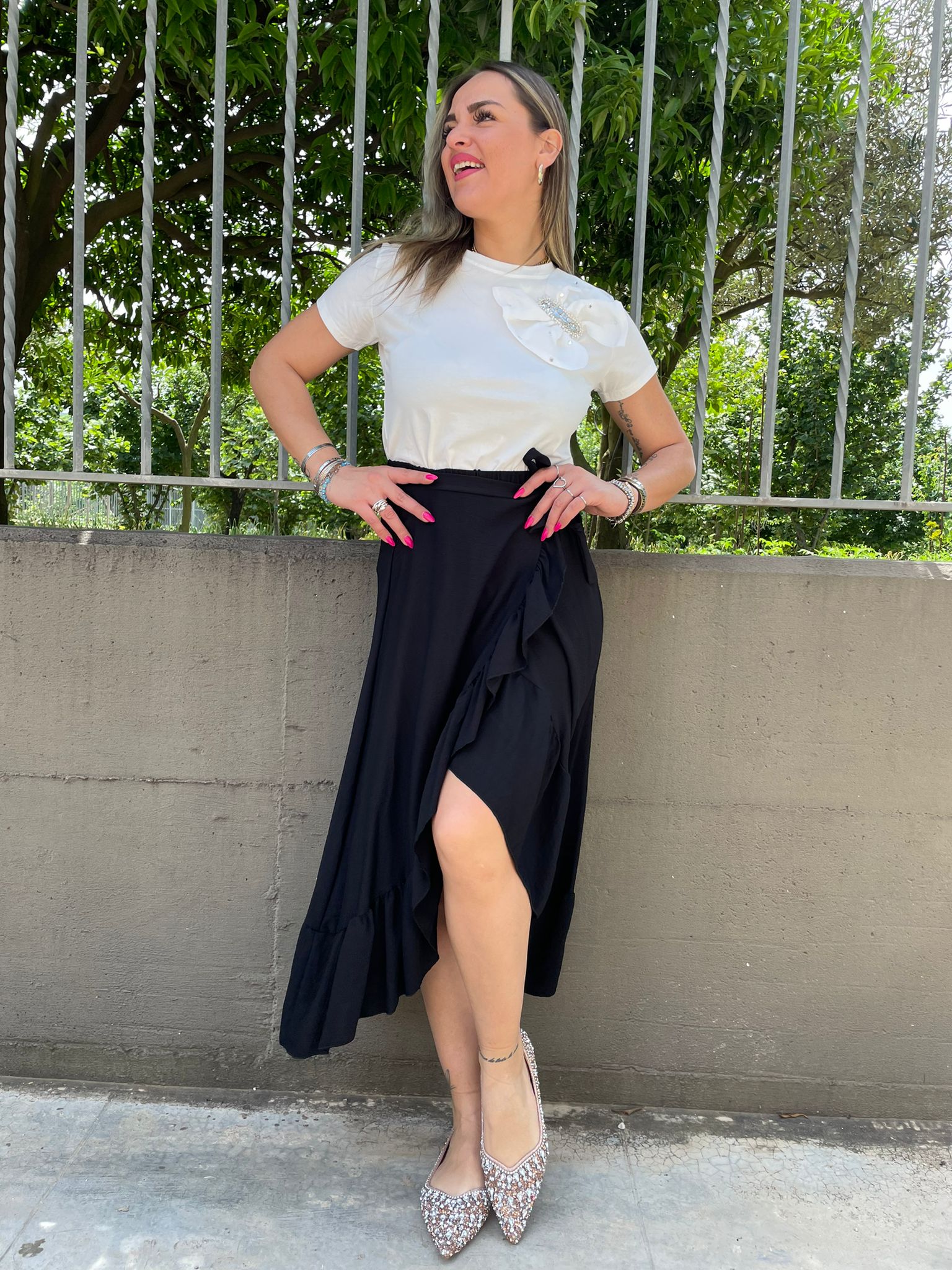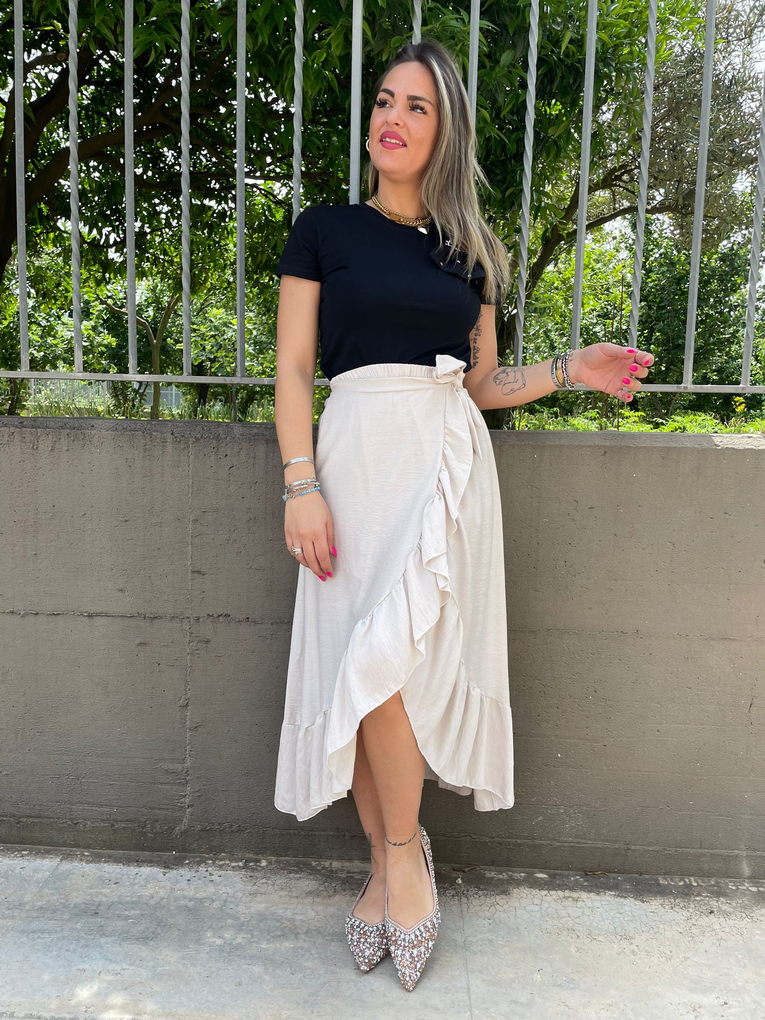 - Gonna lunga effetto lino