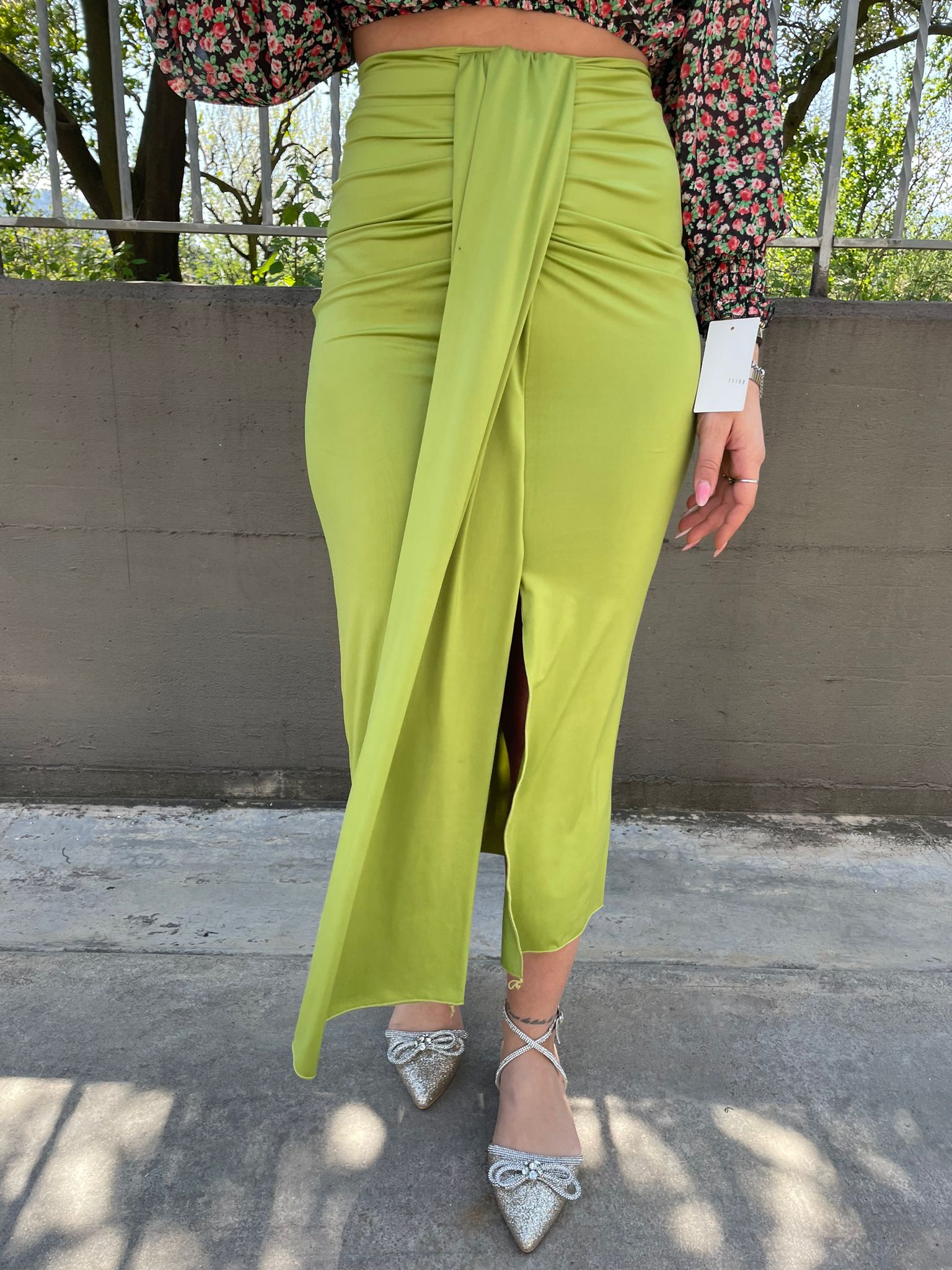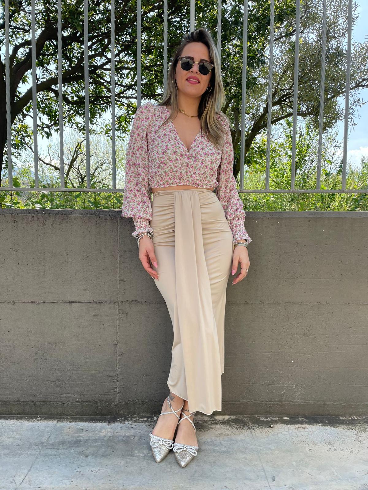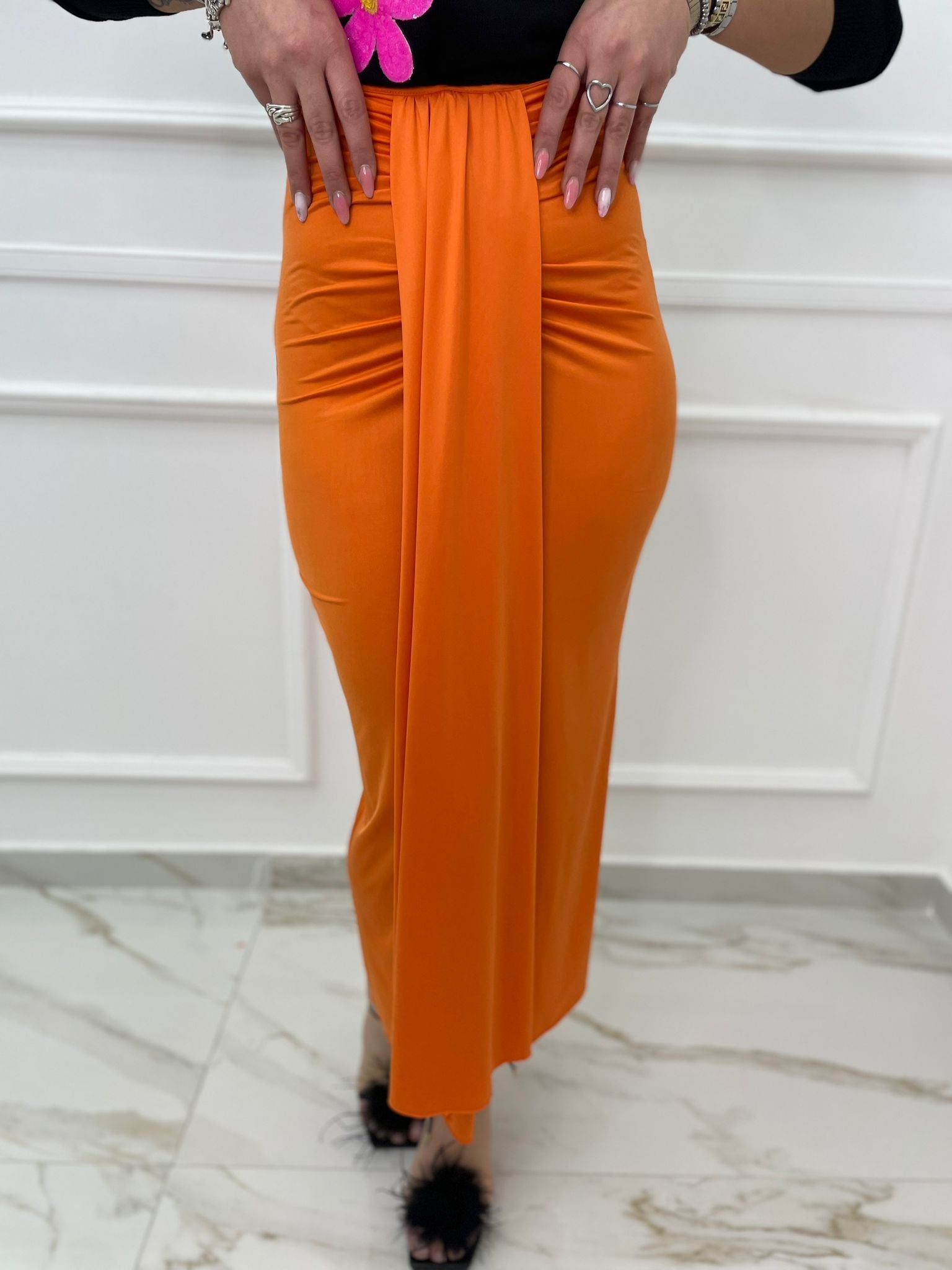Gonna lunga in lycra con fusciacca avanti