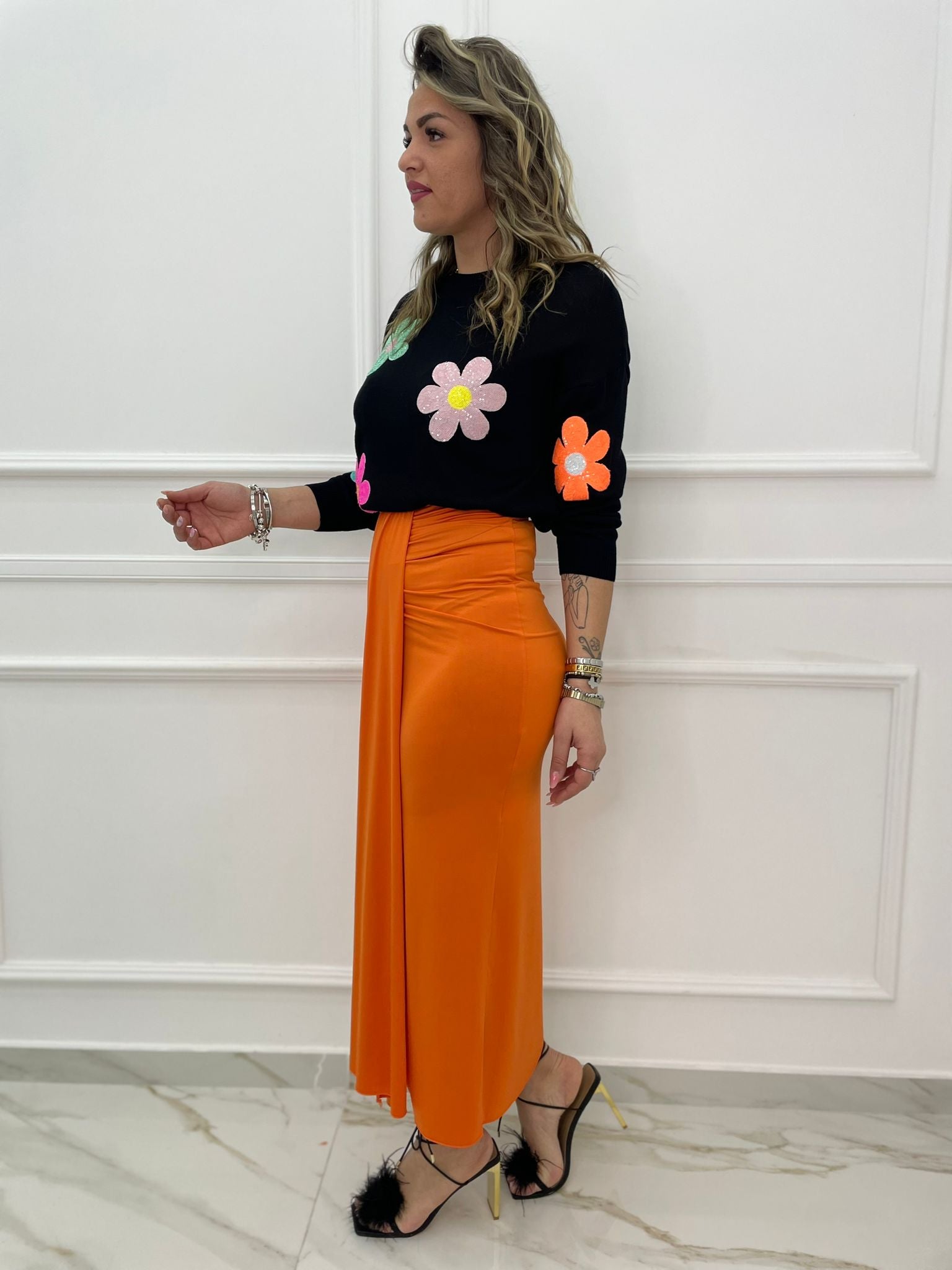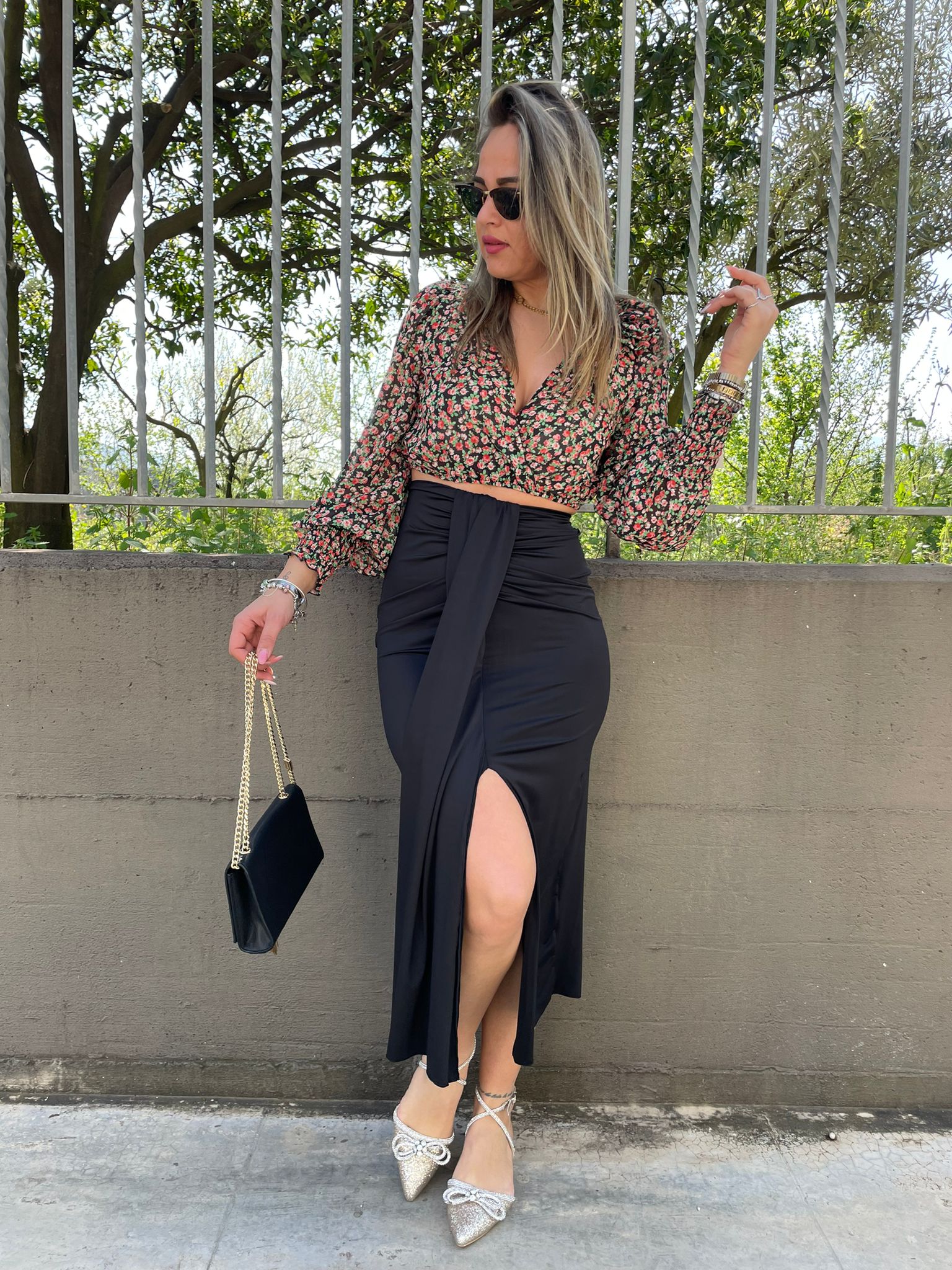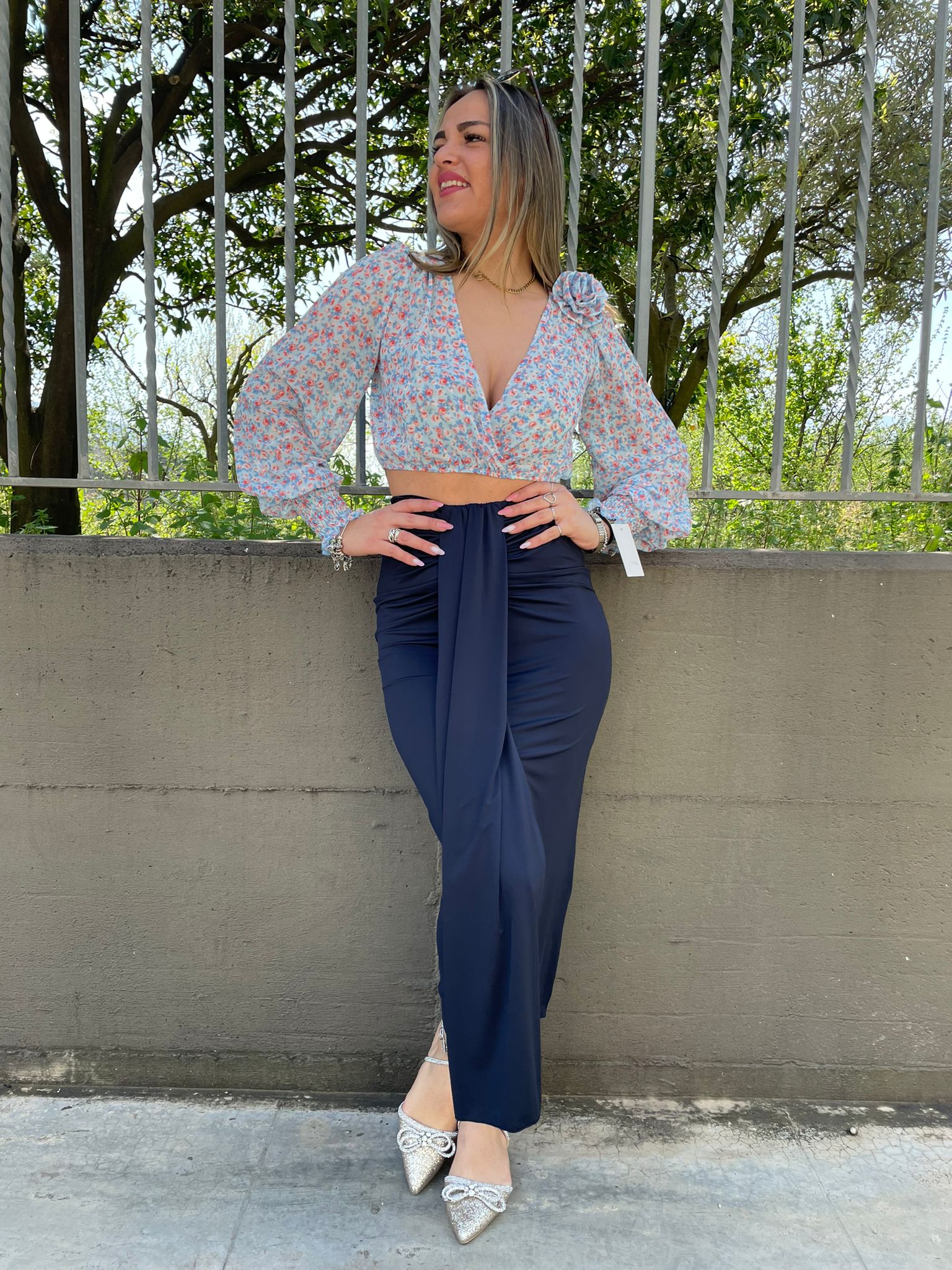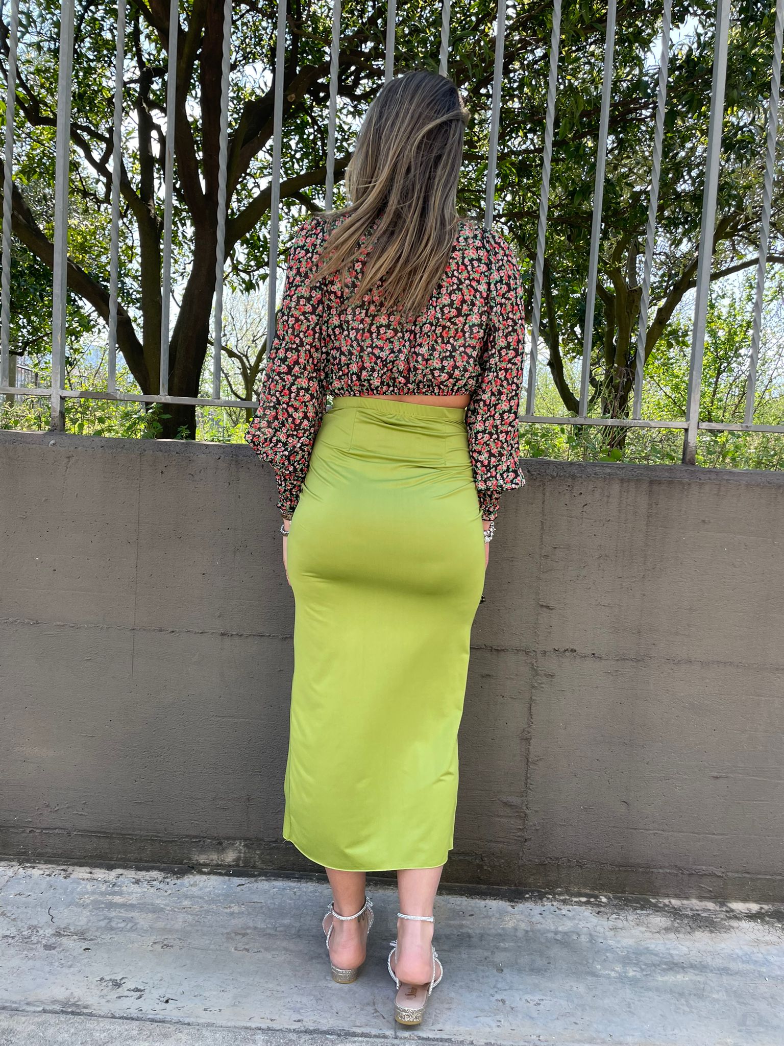 Gonna lunga in lycra con fusciacca avanti
