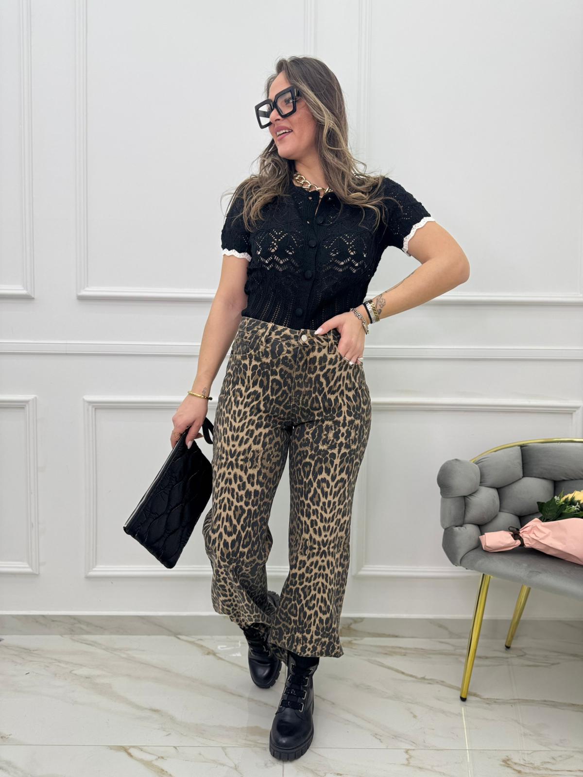 Jeans animalier modello wide leg