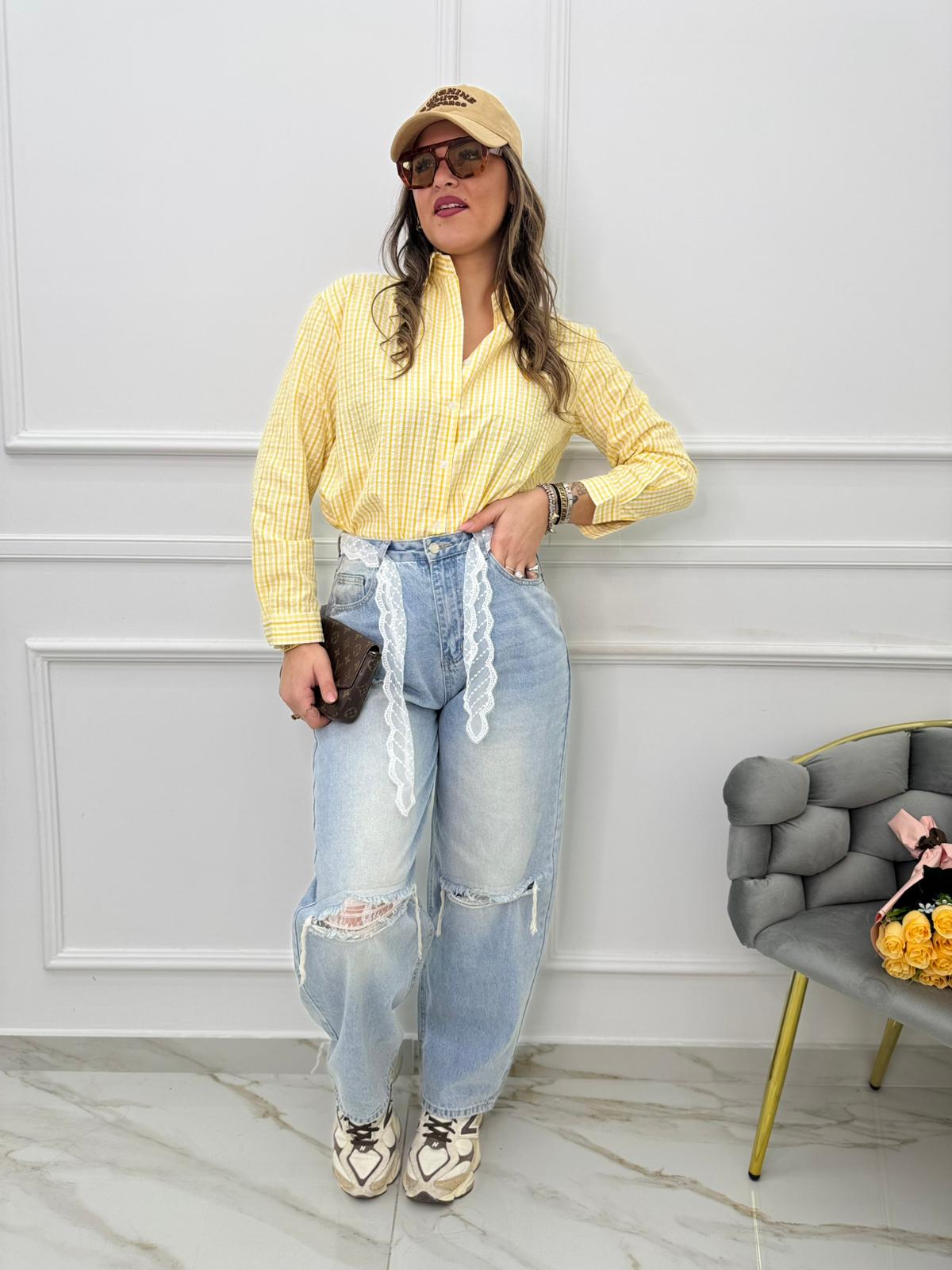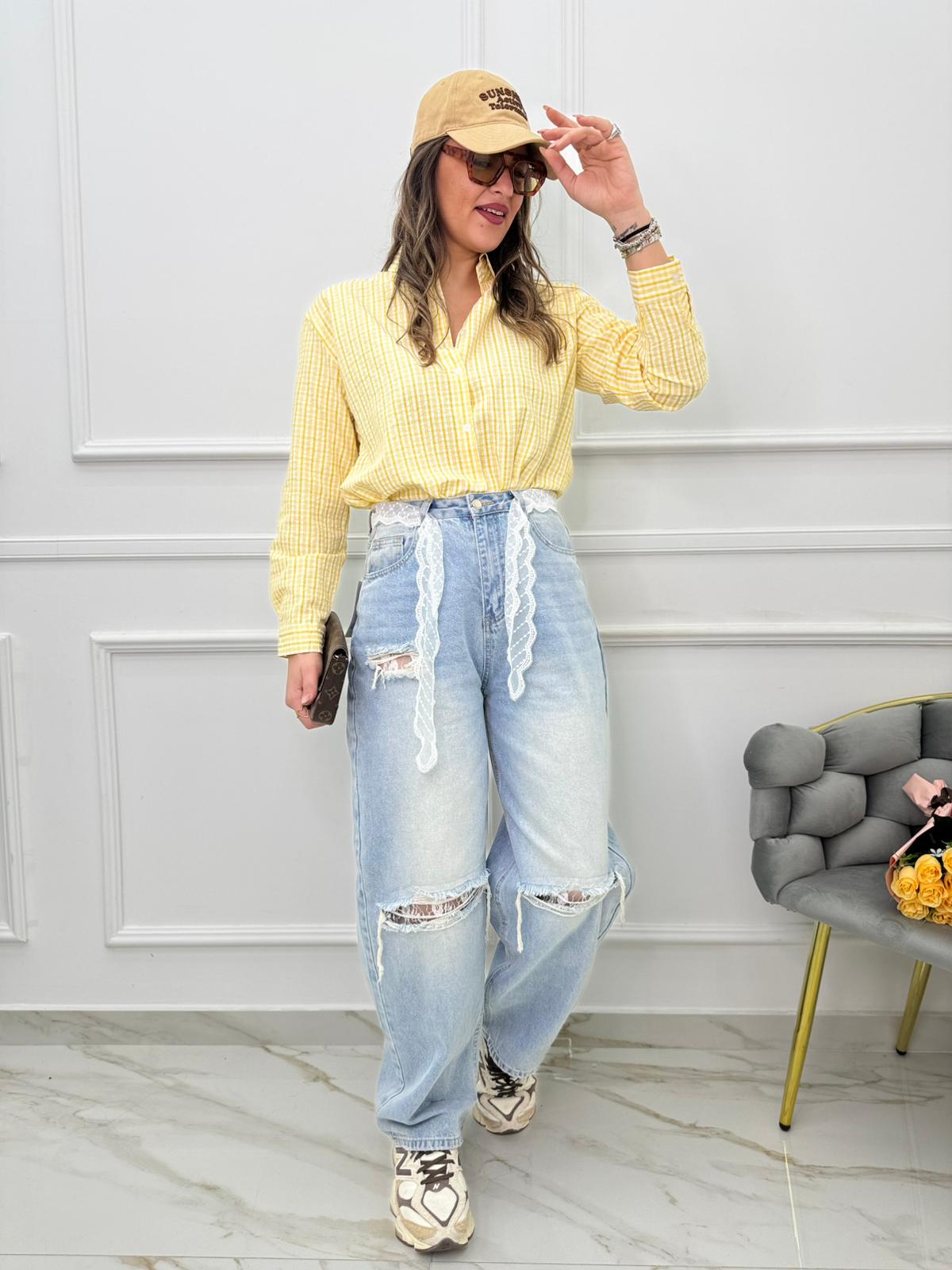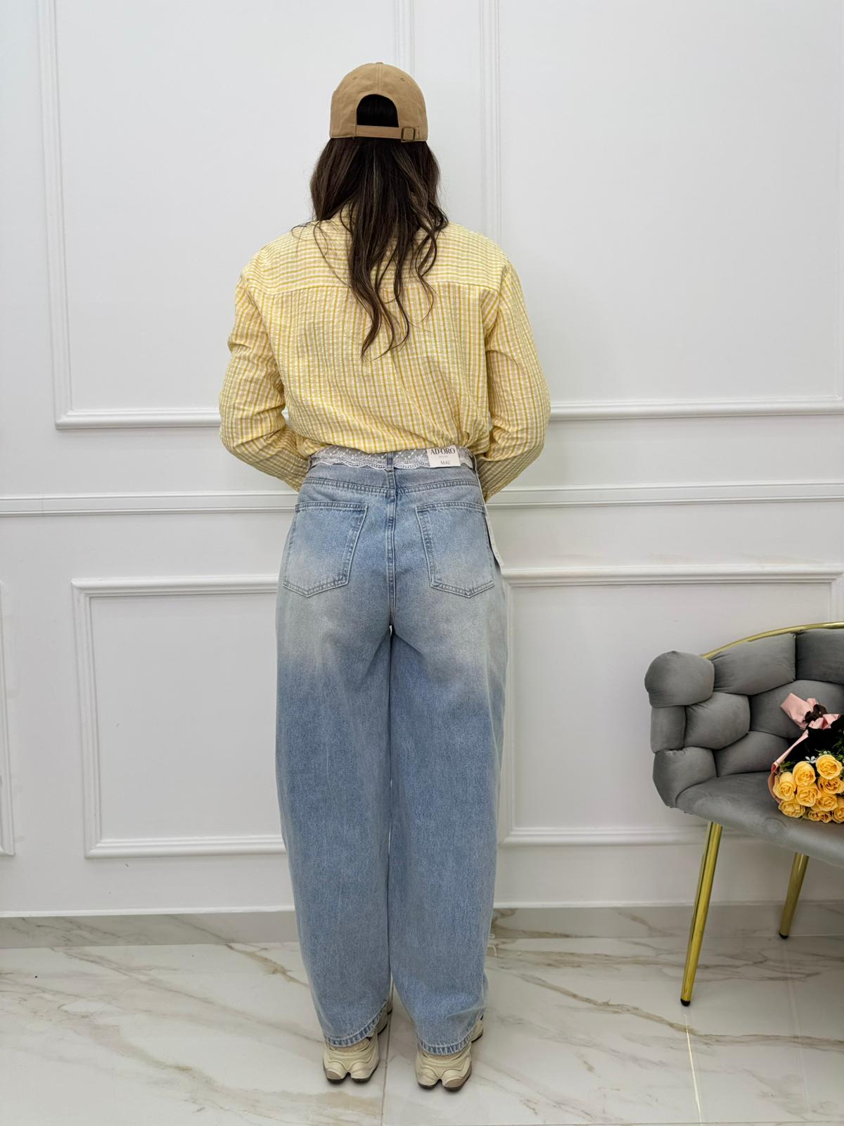 Jeans balloon con cintura in pizzo