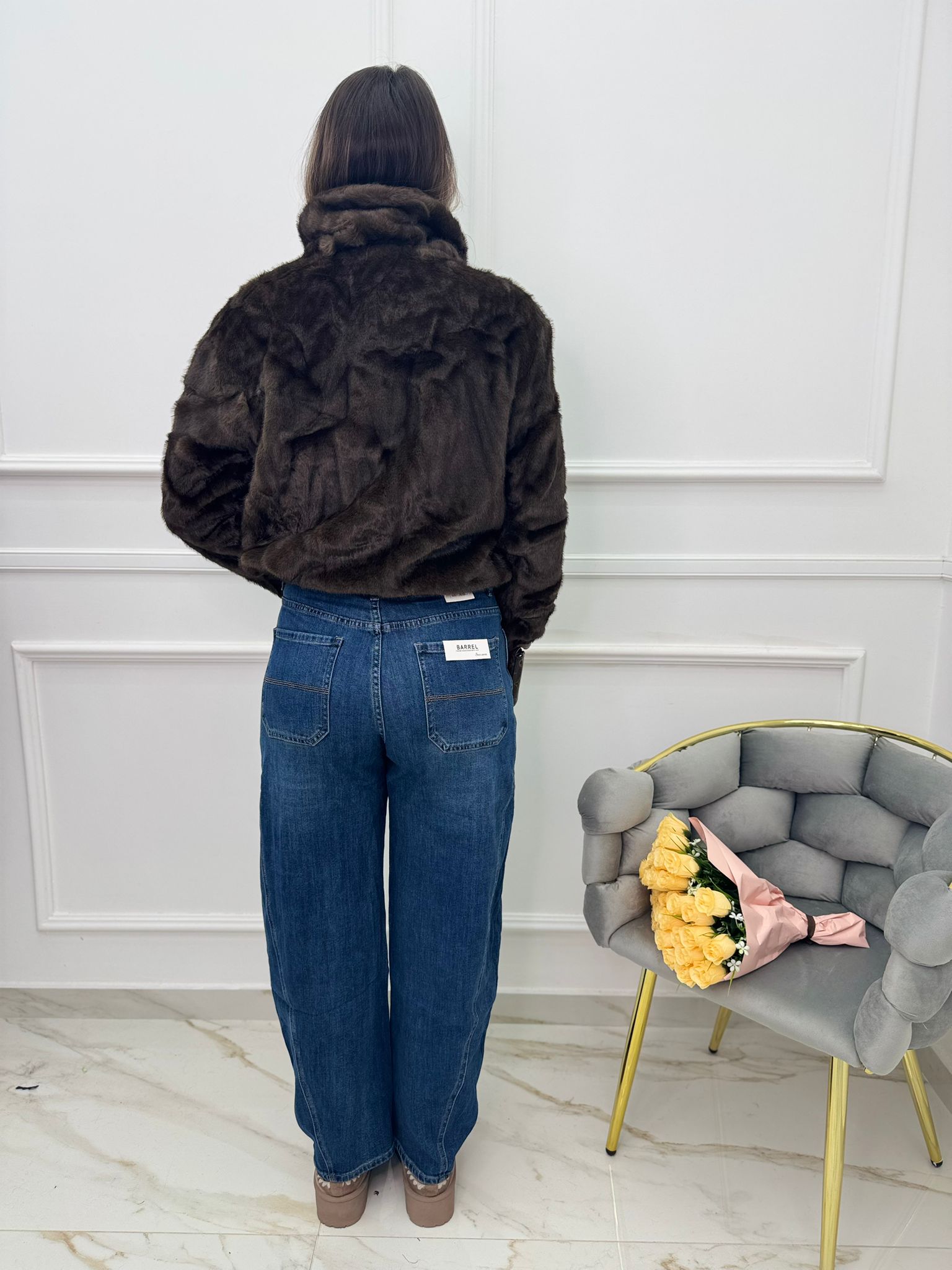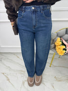 Jeans barrel con stringhe in vita