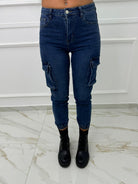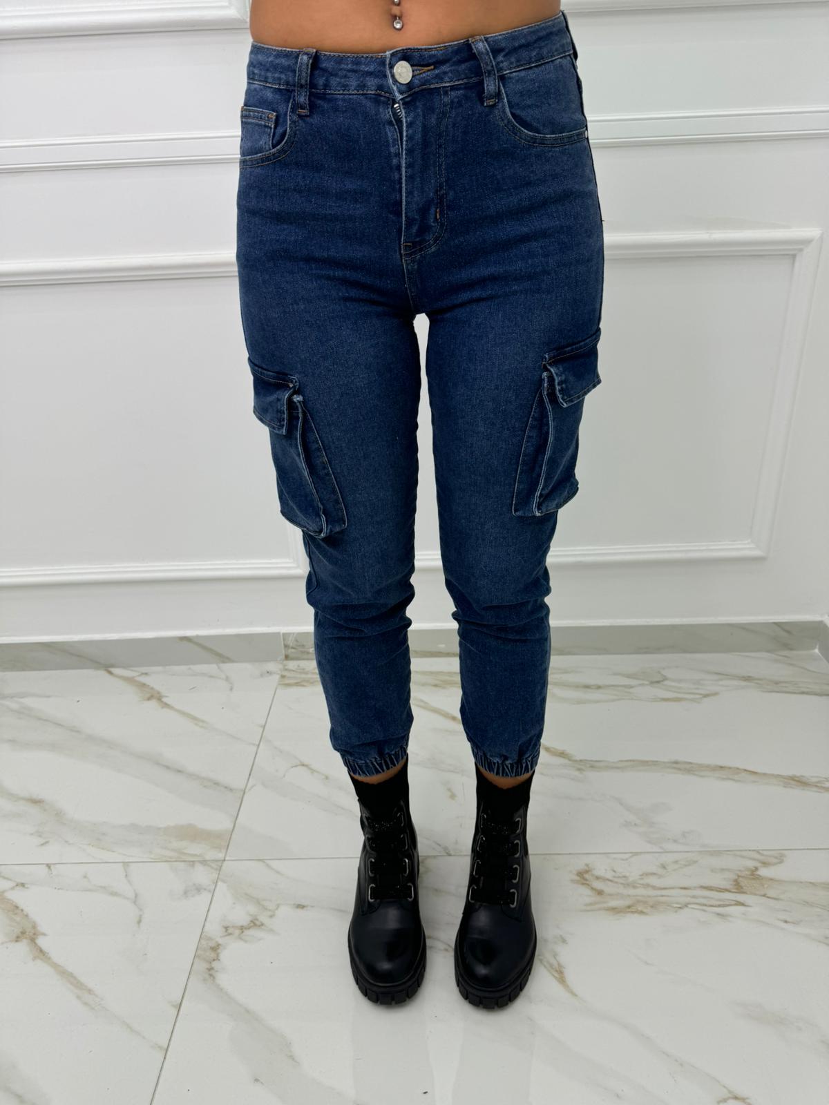 Jeans cargo con elastico alle caviglie
