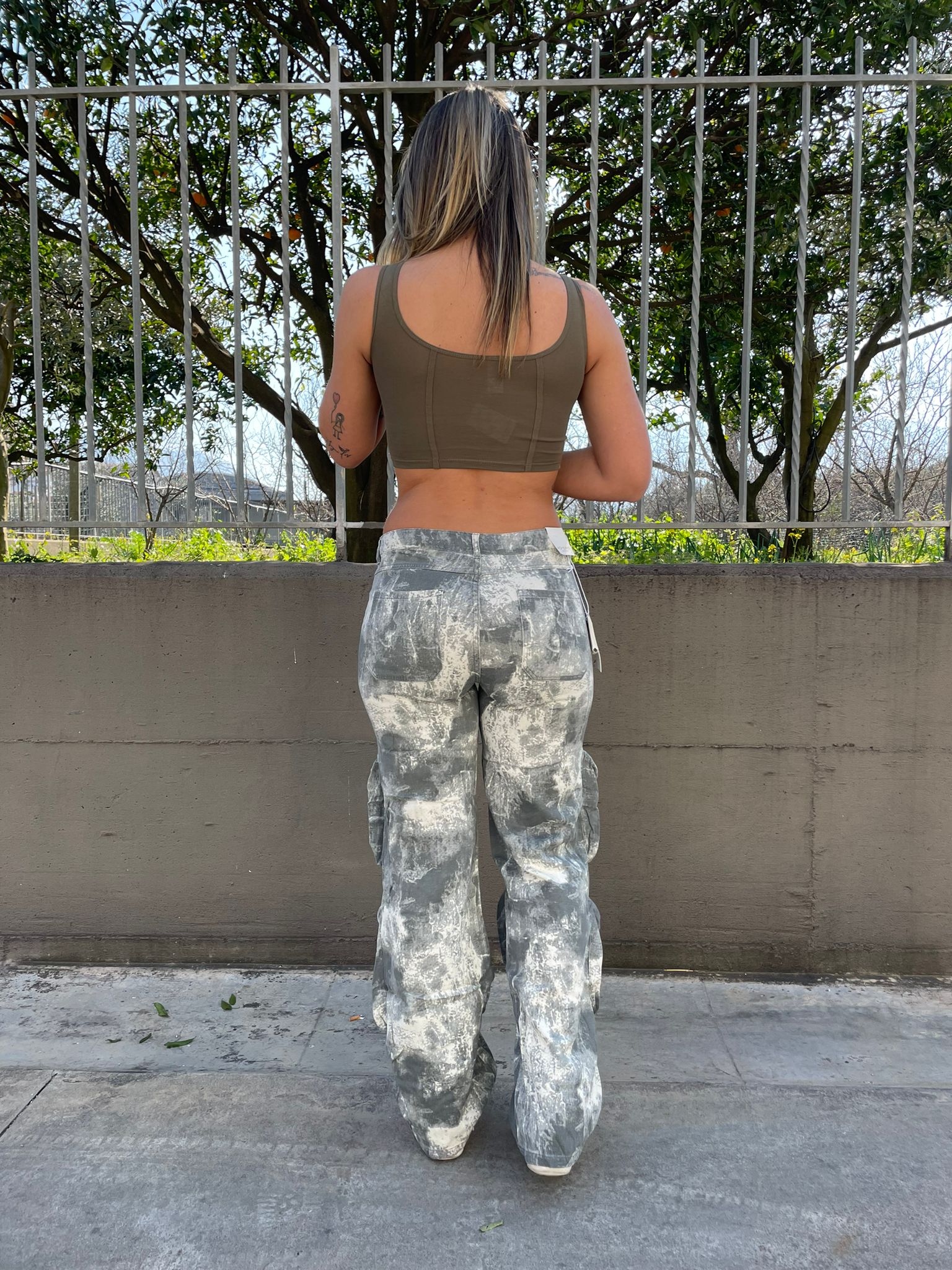 Jeans cargo con gamba larga fantasia militare