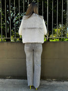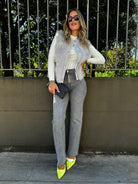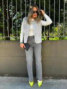 Jeans grigio con brillantini modello wide leg