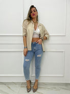 - La modella è una taglia 44, alta 1,79m e indossa la taglia "M"