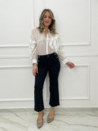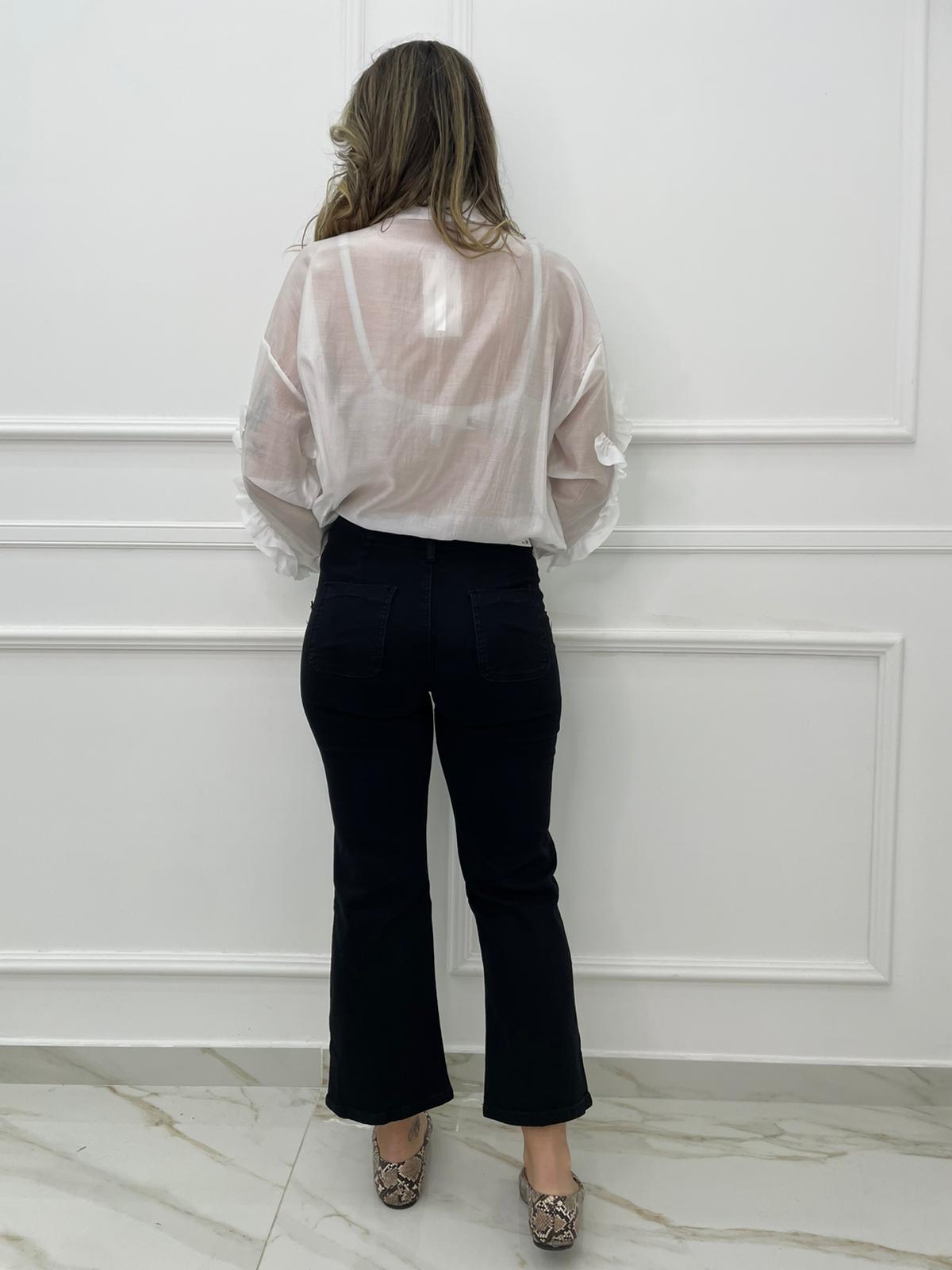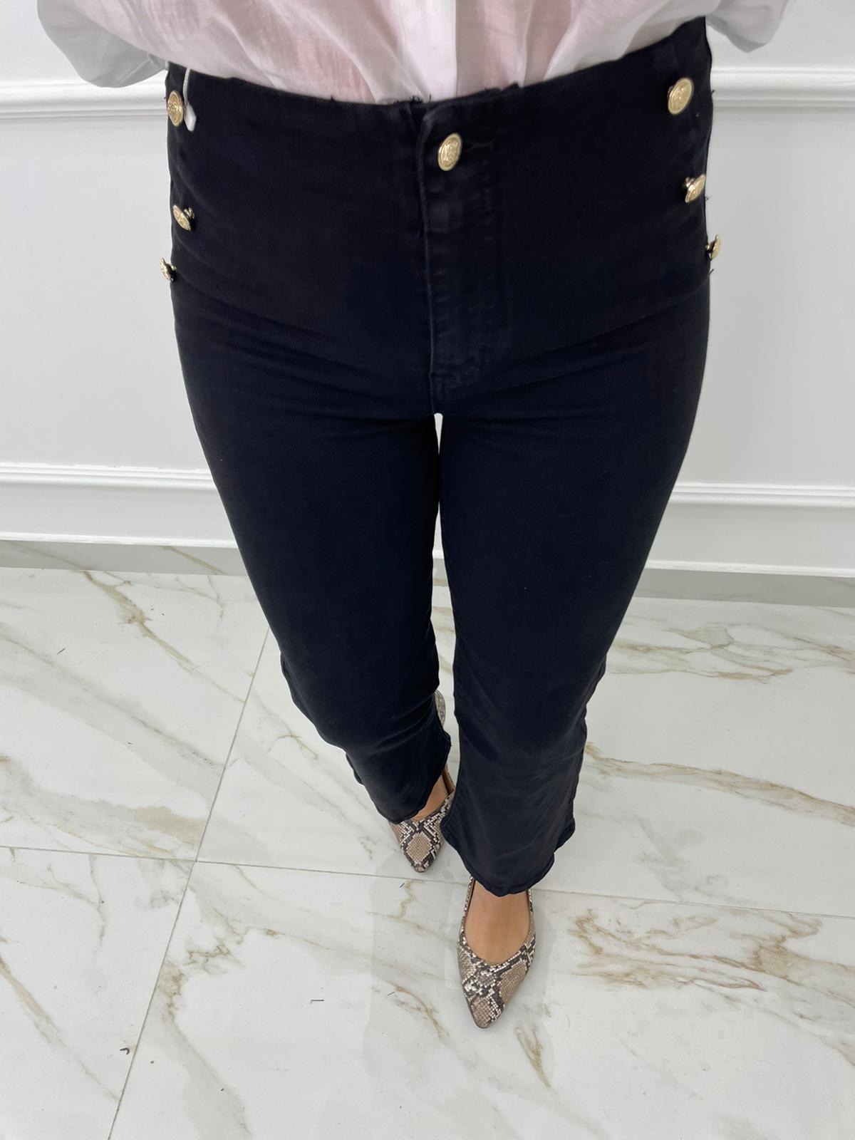 Jeans nero gamba larga con bottoni oro