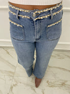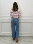 Jeans palazzo con applicazioni in vita e taschini avanti