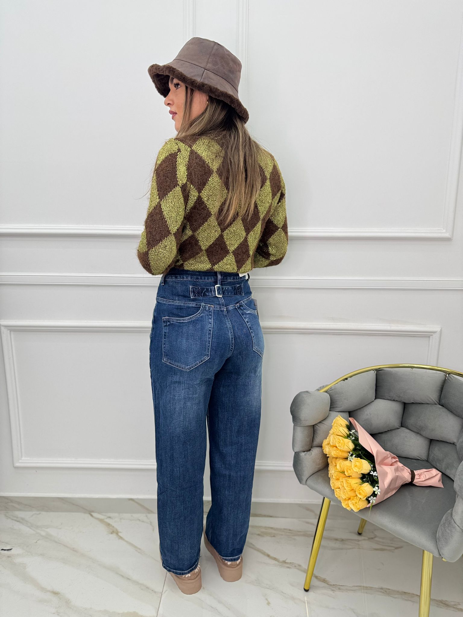 Jeans palazzo con stringa dietro