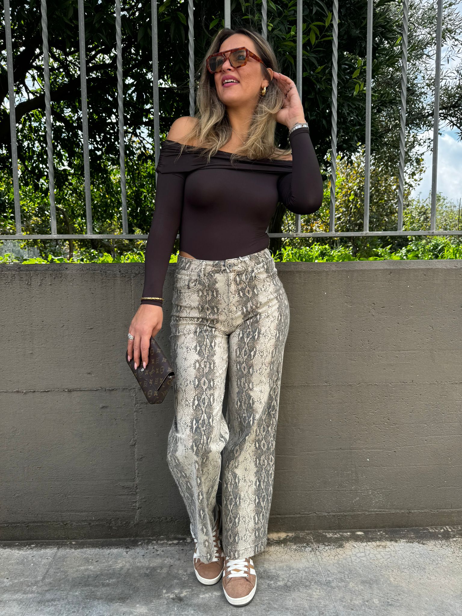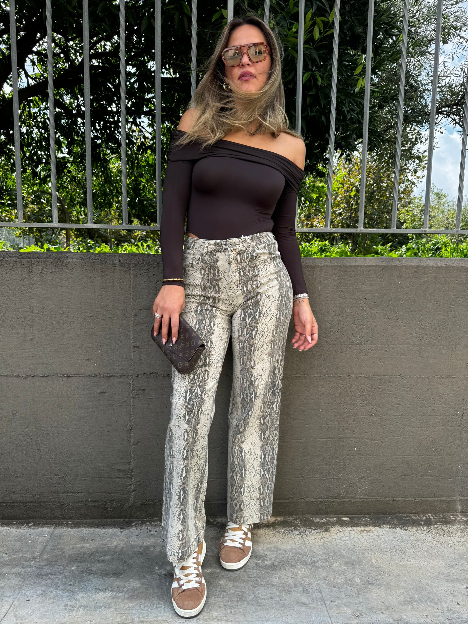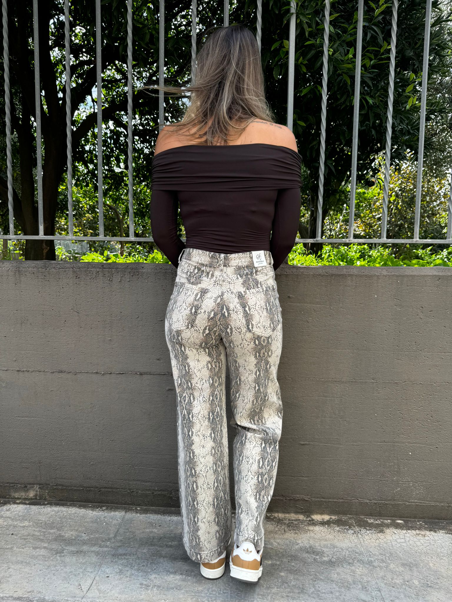 Jeans pitonato modello palazzo