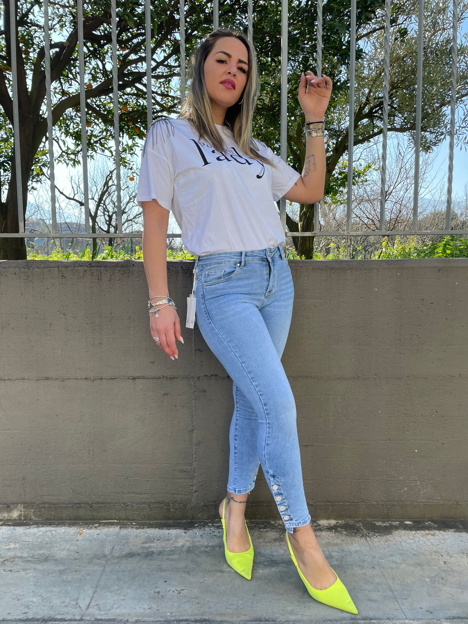 - La modella è una taglia 44, alta 1,79m e indossa la taglia "M"