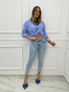 Jeans skinny lavaggio chiaro sfrangiato sotto