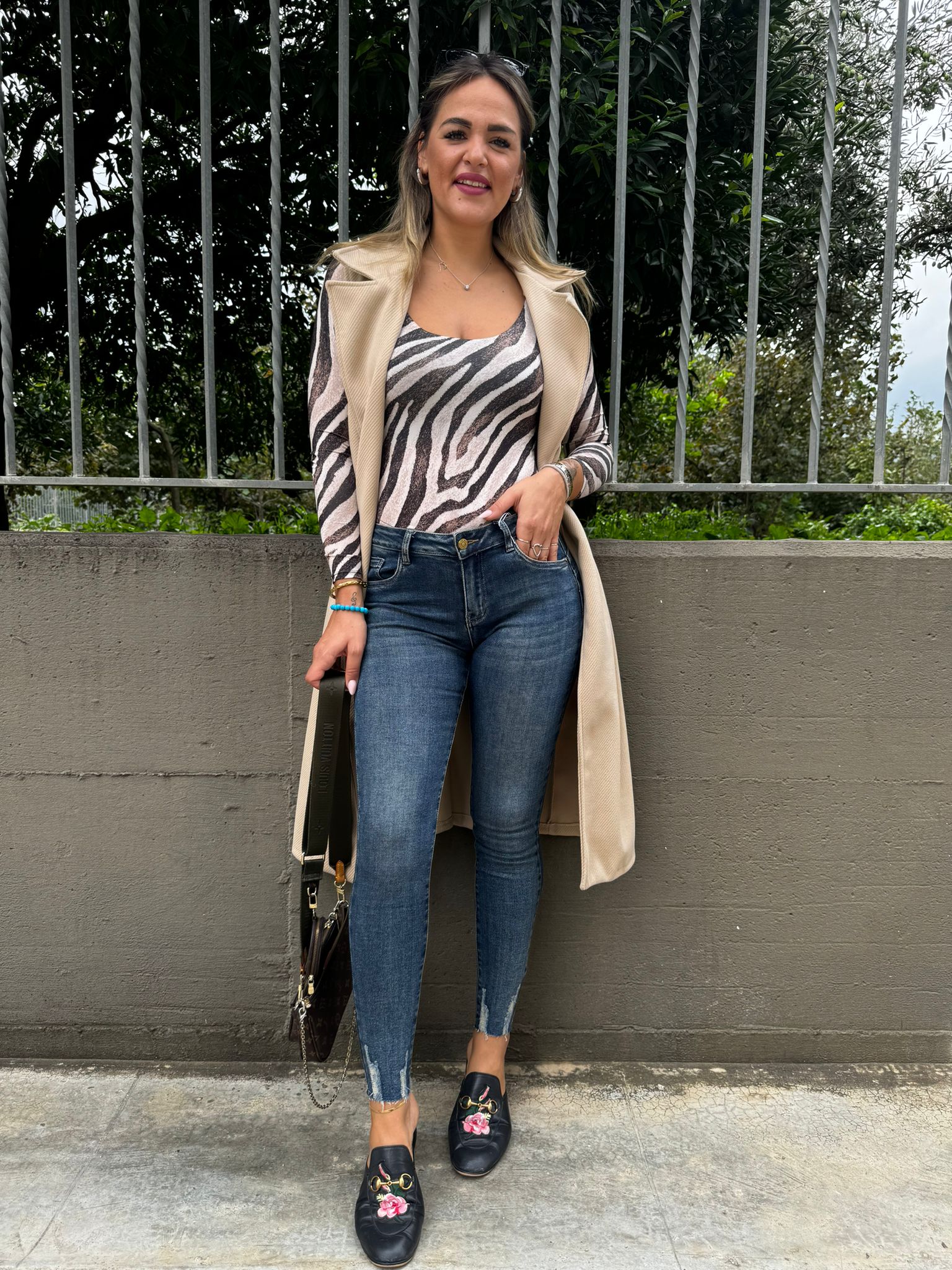 - La modella è una taglia 44, alta 1,79m e indossa la taglia "L"