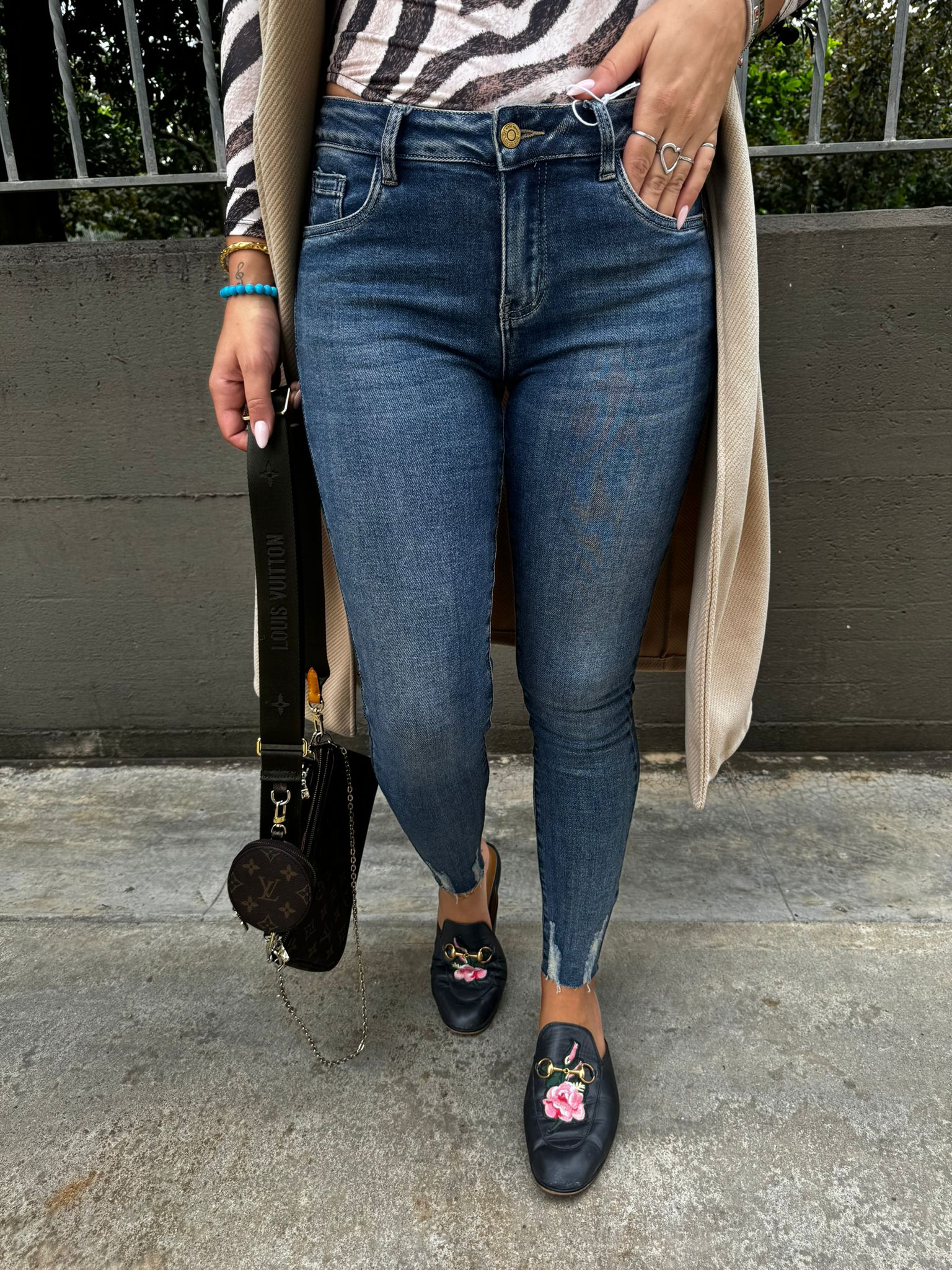 Jeans skinny lavaggio vintage con strappi alle caviglie