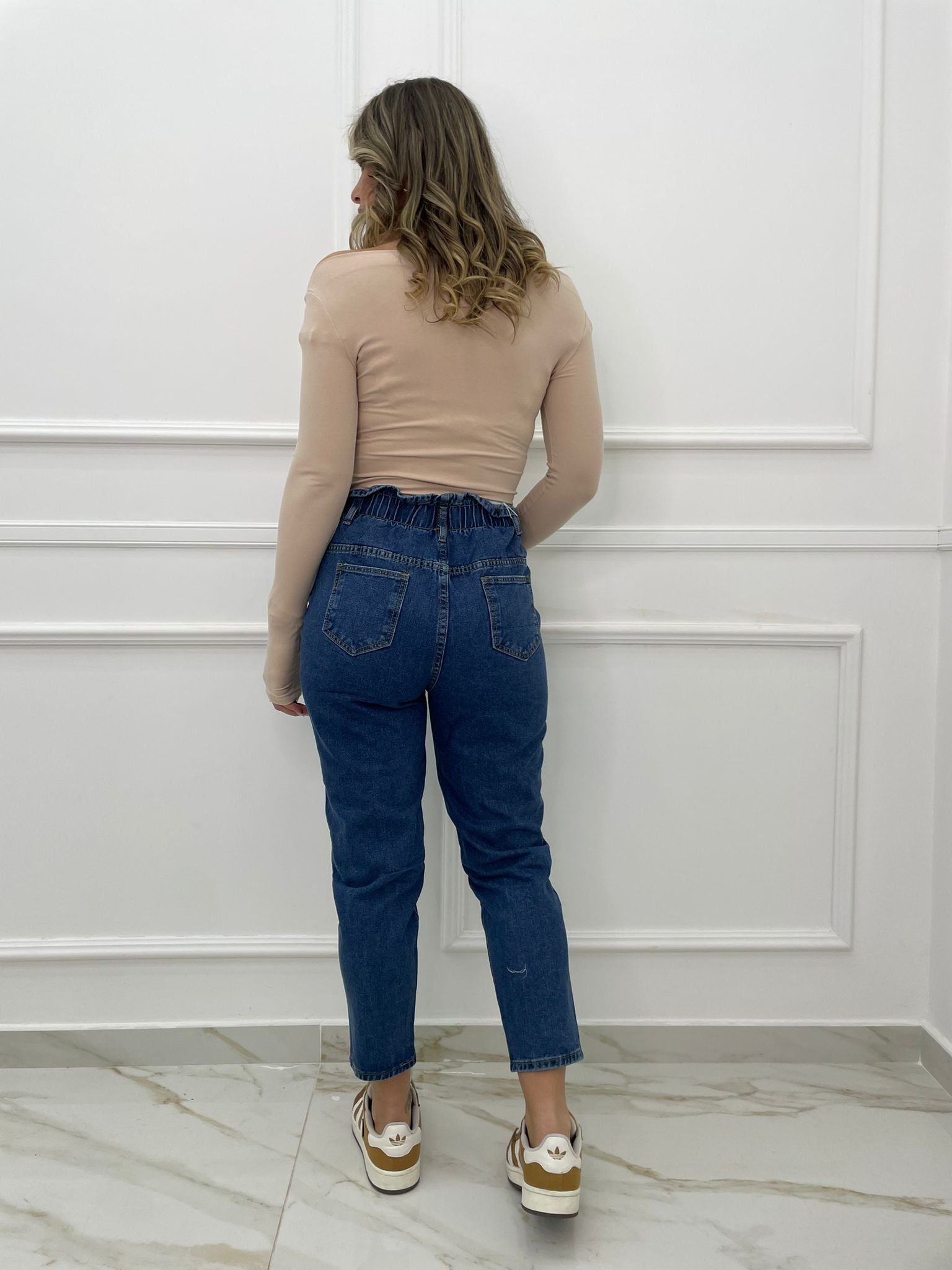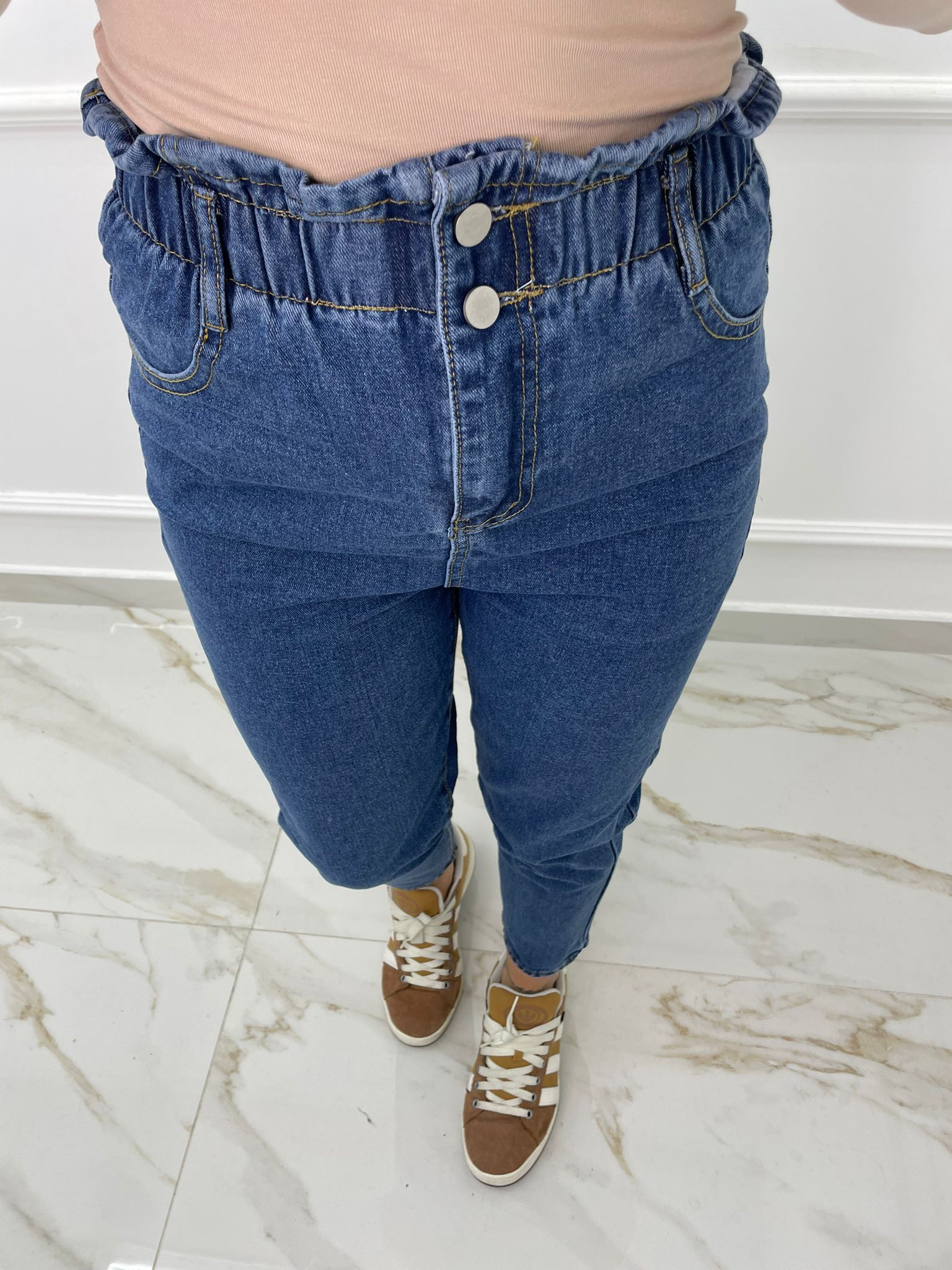 Jeans vita alta con elastico in vita