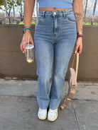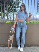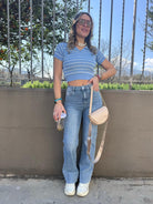 Jeans wide leg con finto piegone