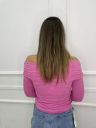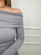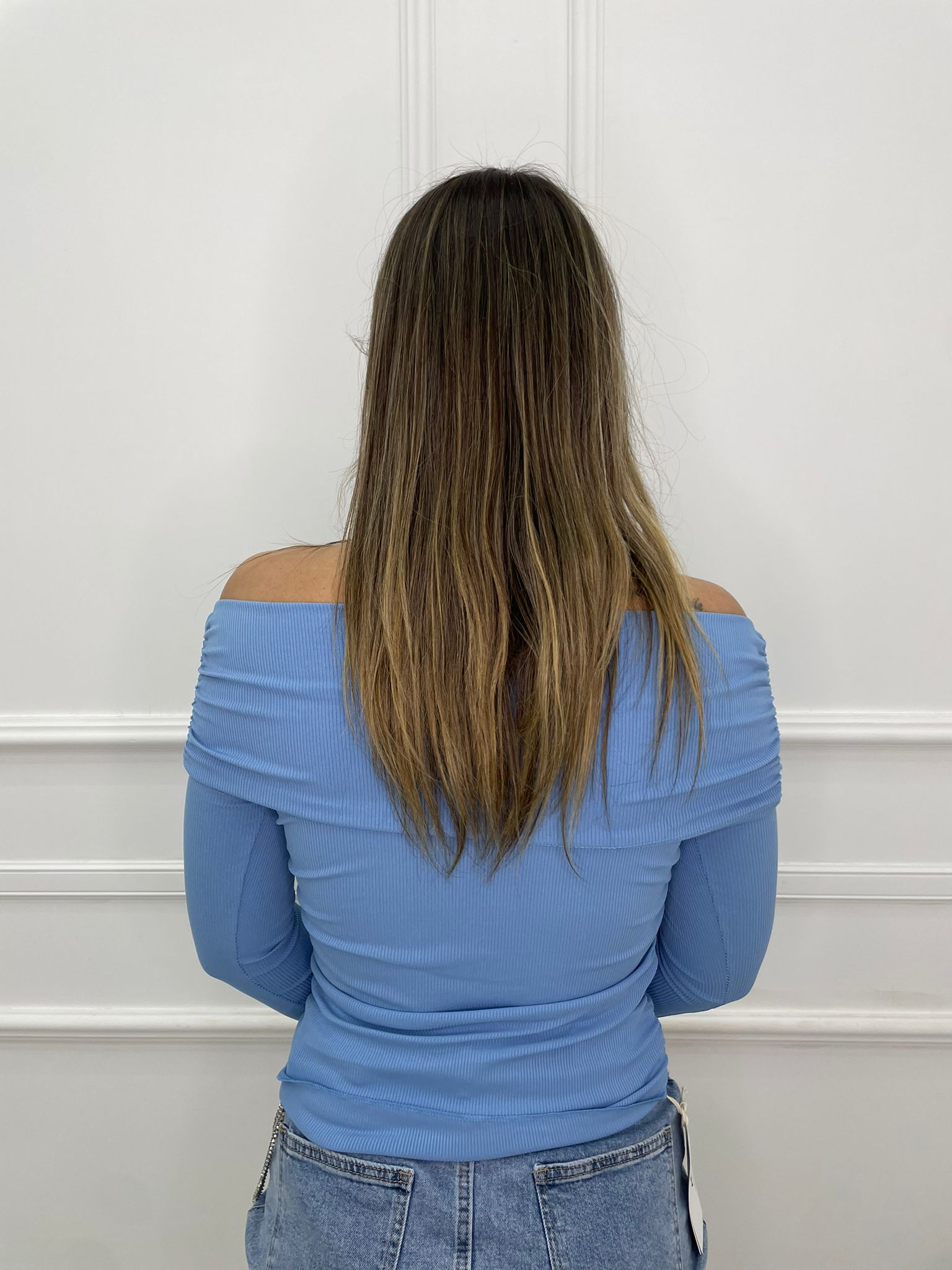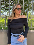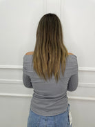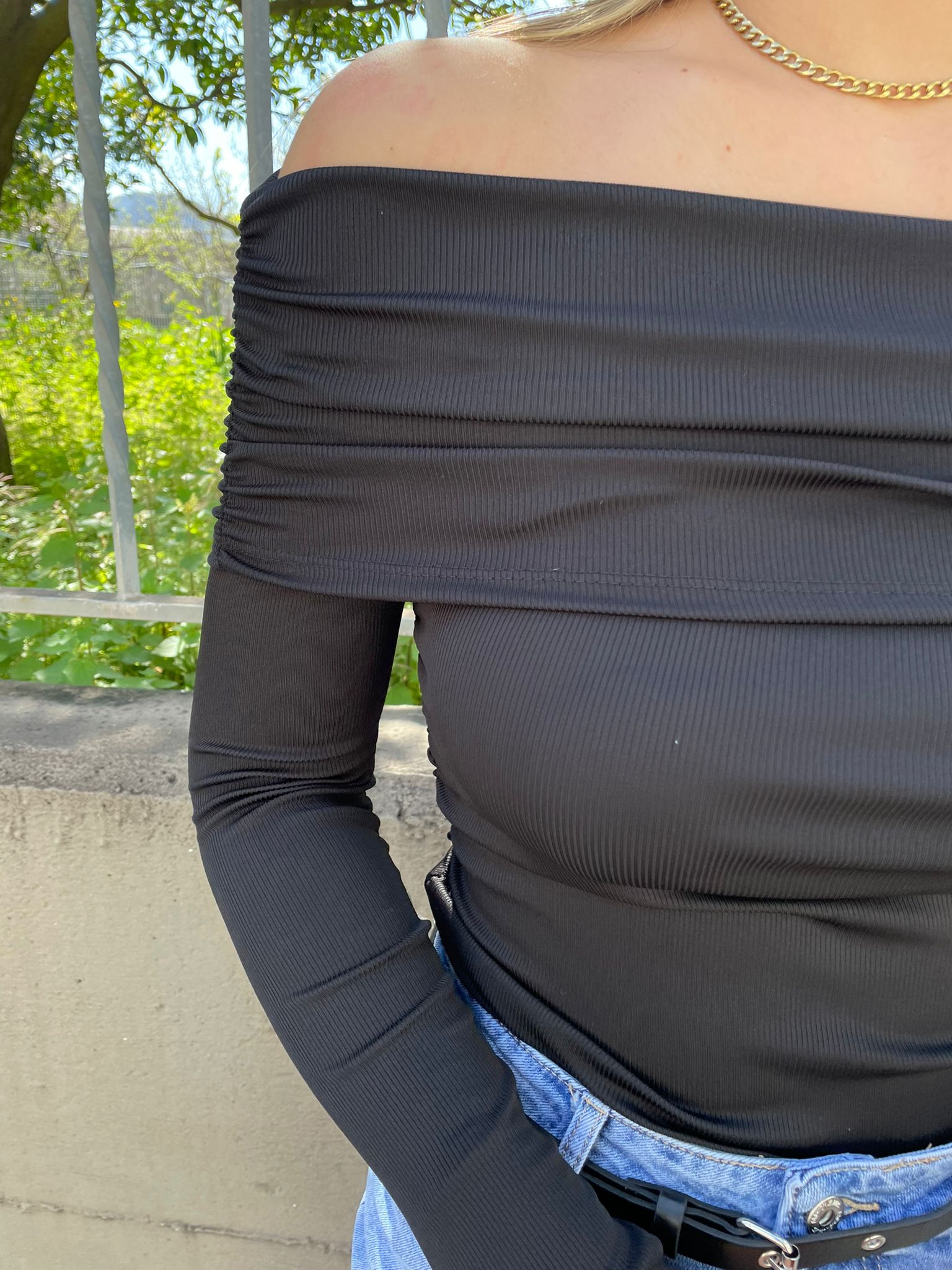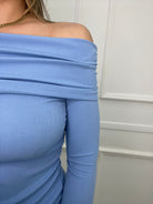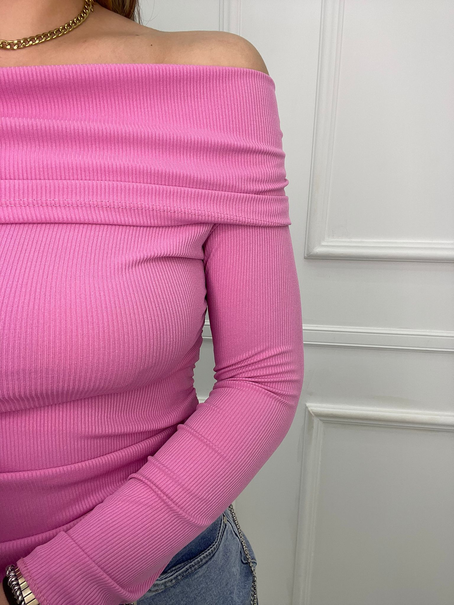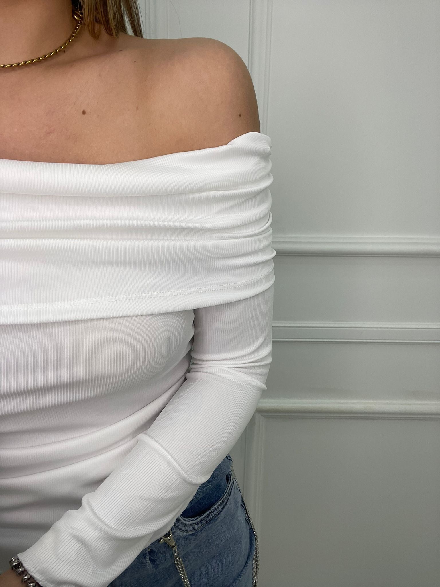 Maglia a costine con scollo a barca e drappeggio