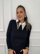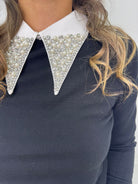 Maglia con colletto bianco e swarovski