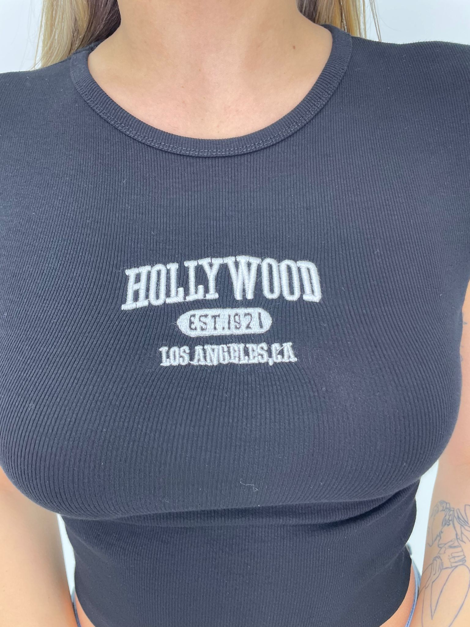 Maglia crop a costine con stampa