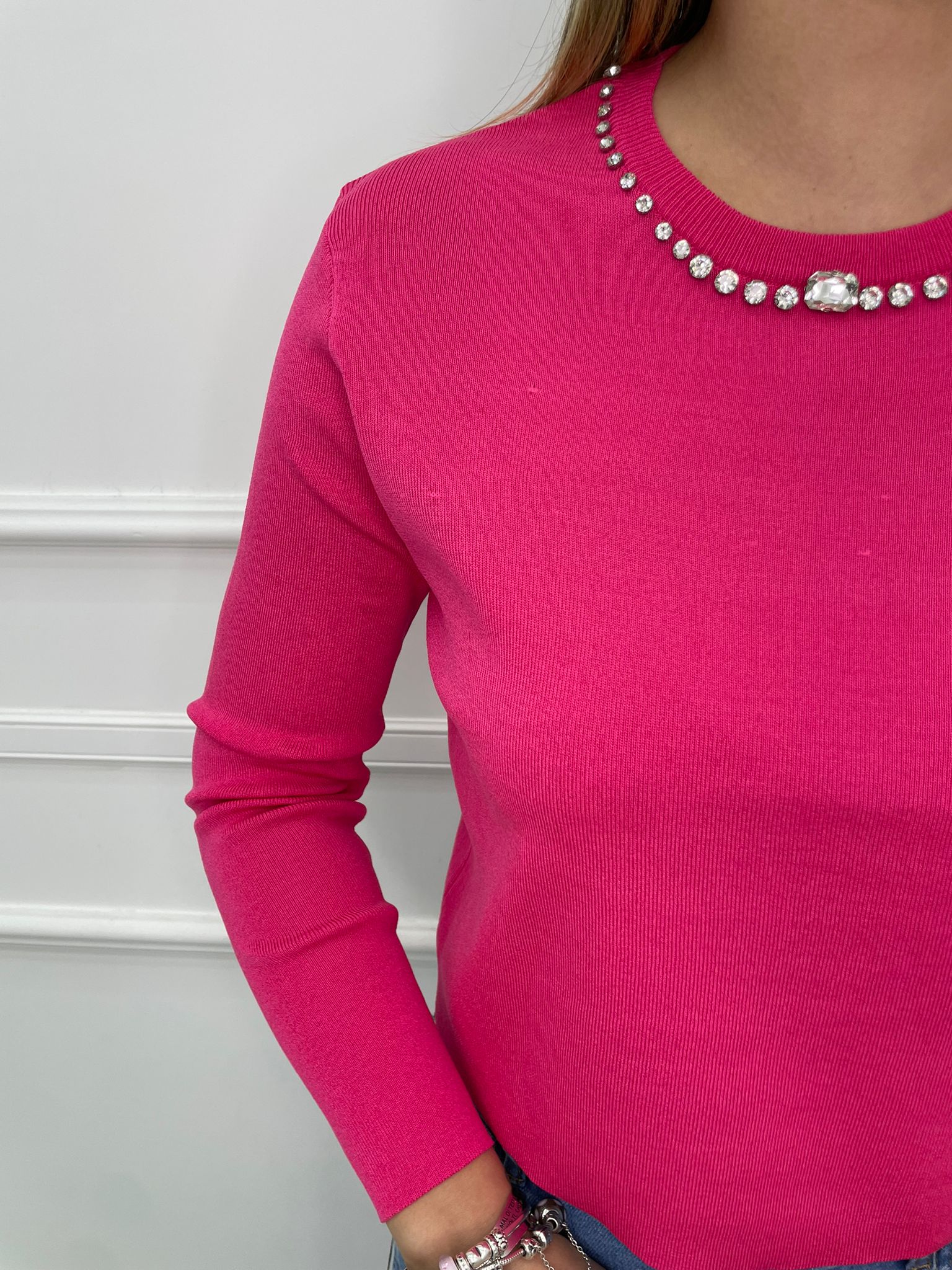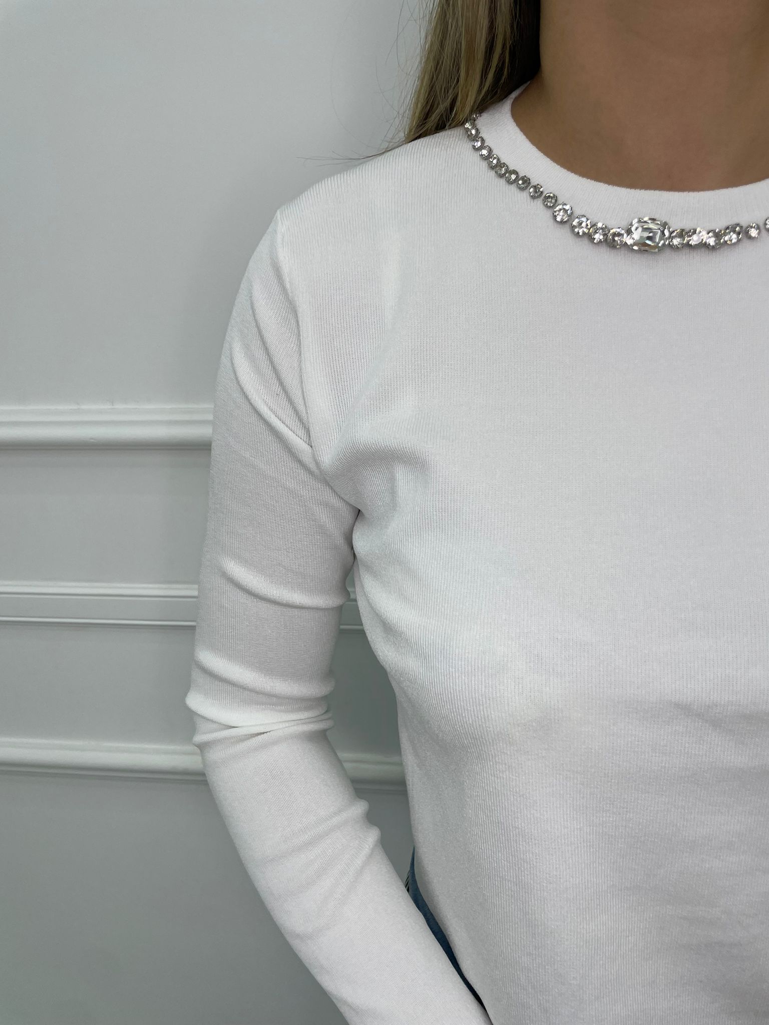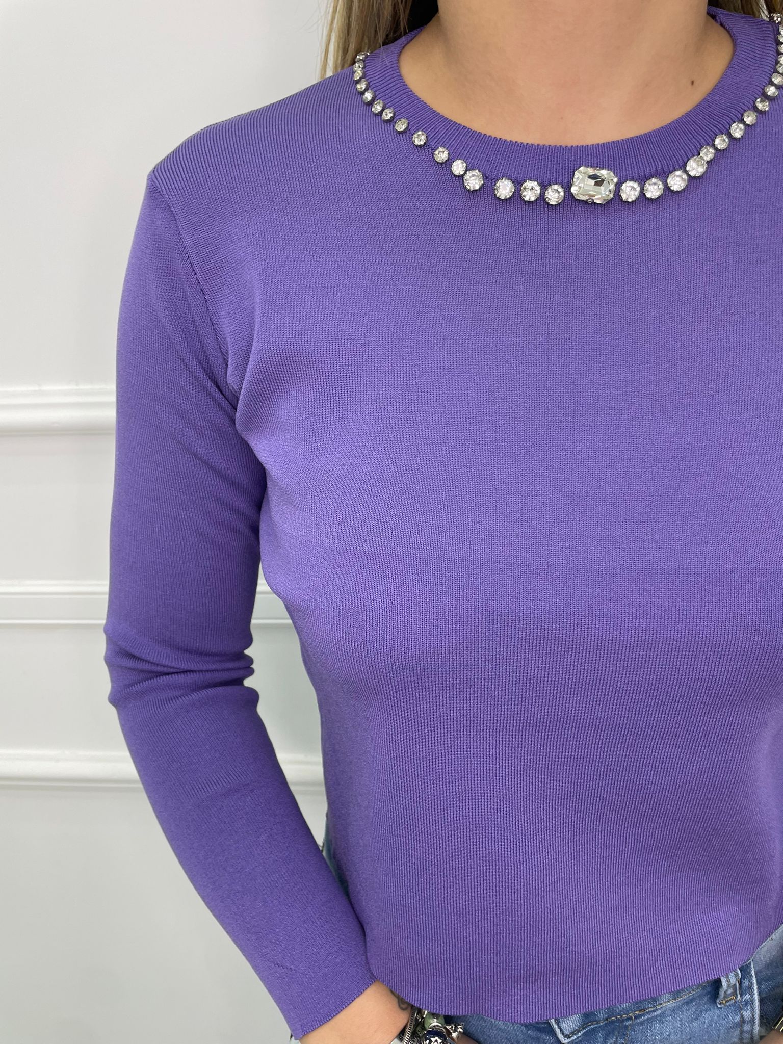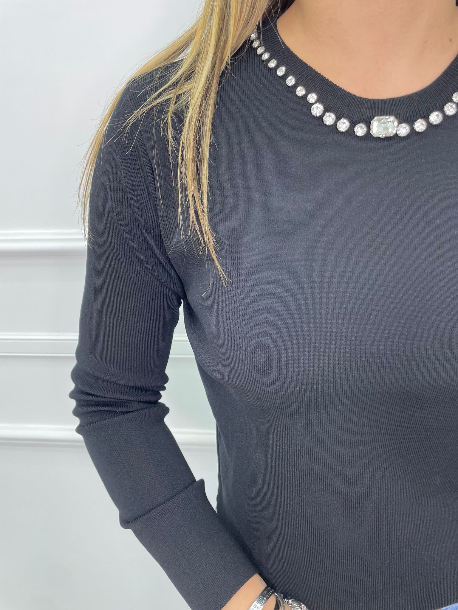 Maglia in filo con giro collo swarovski