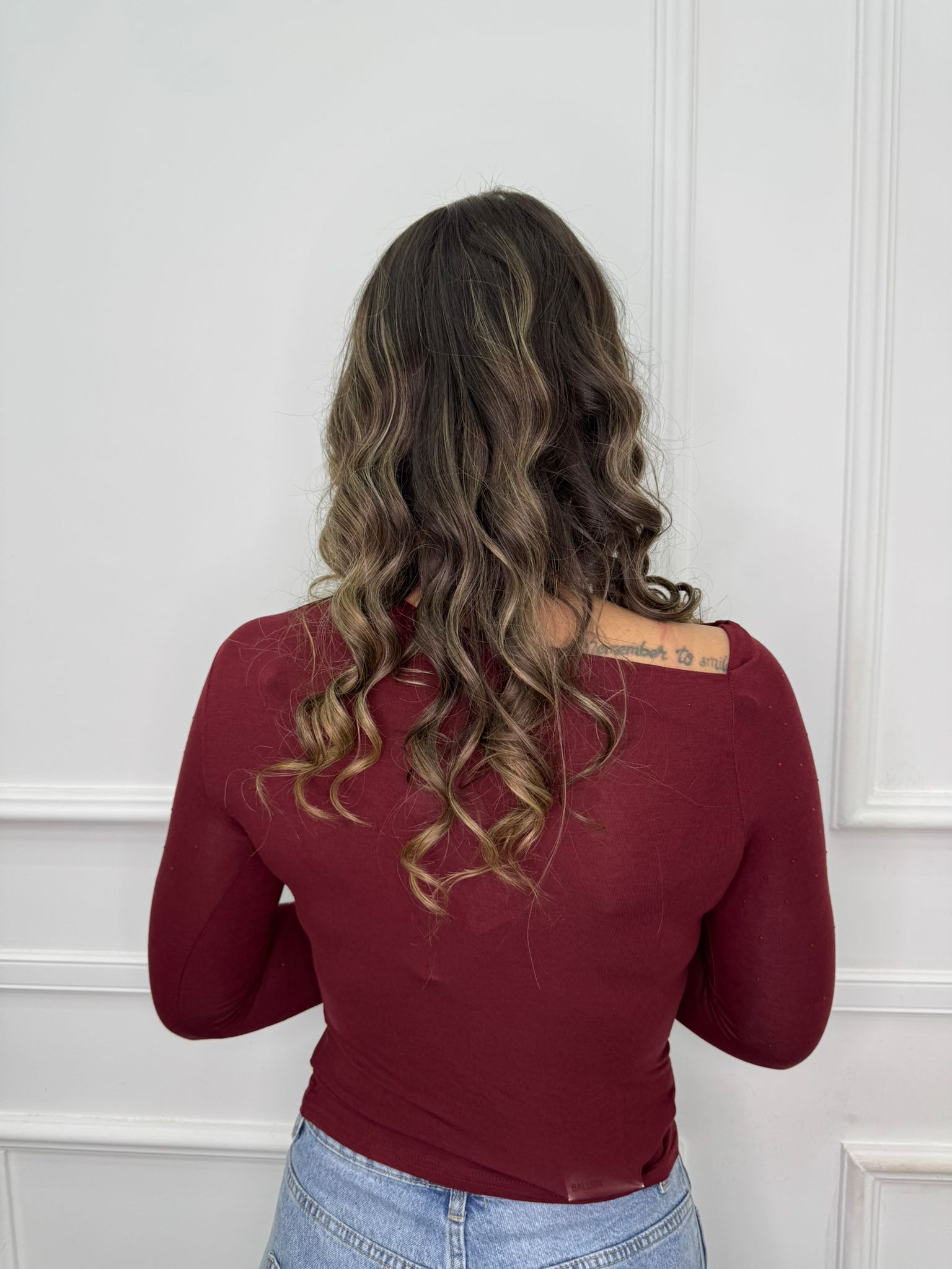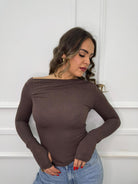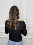 Maglia in simil cashmere con scollo a barchetta e swarovski