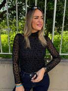 Maglia velata con inserti in velluto