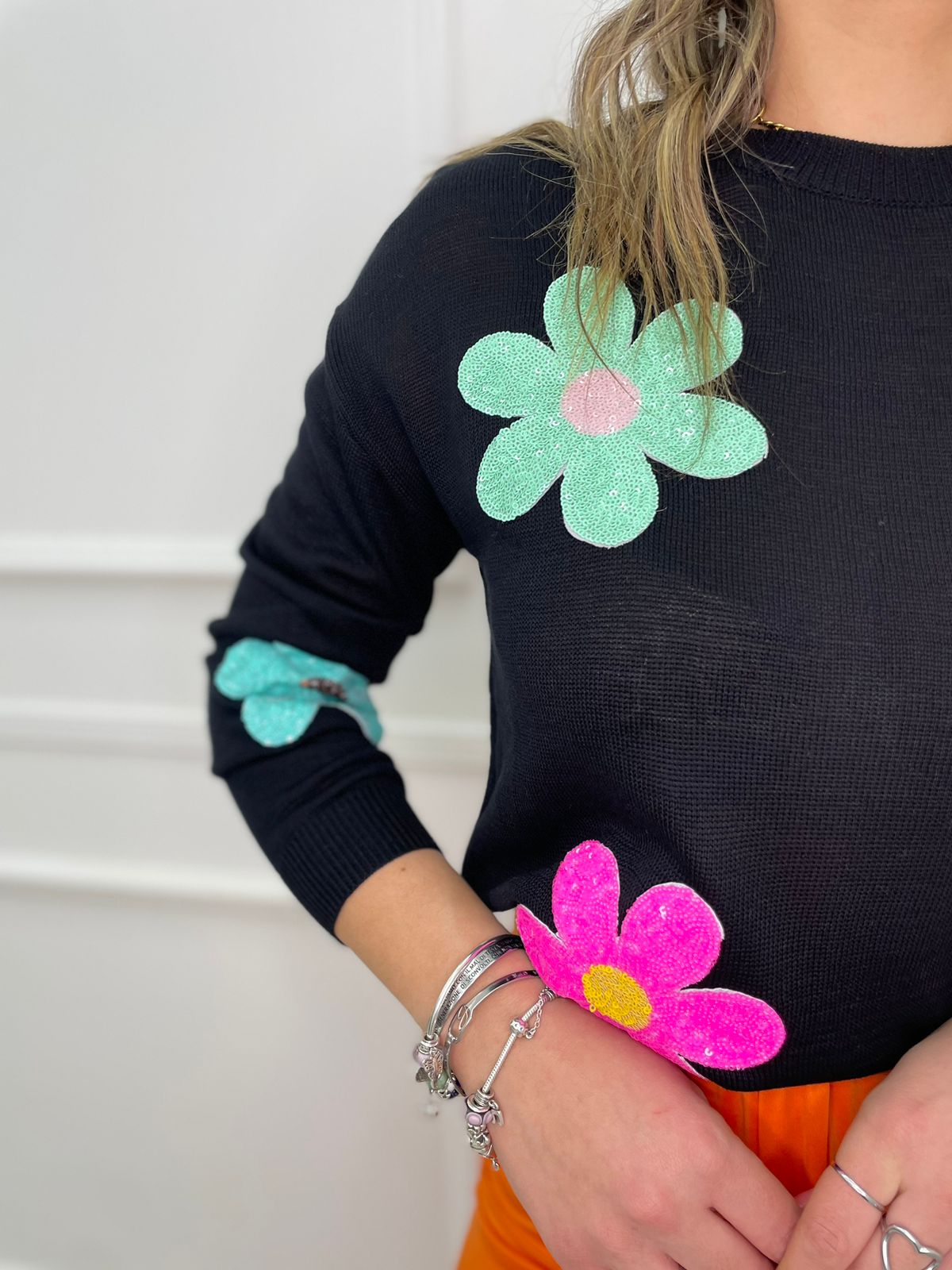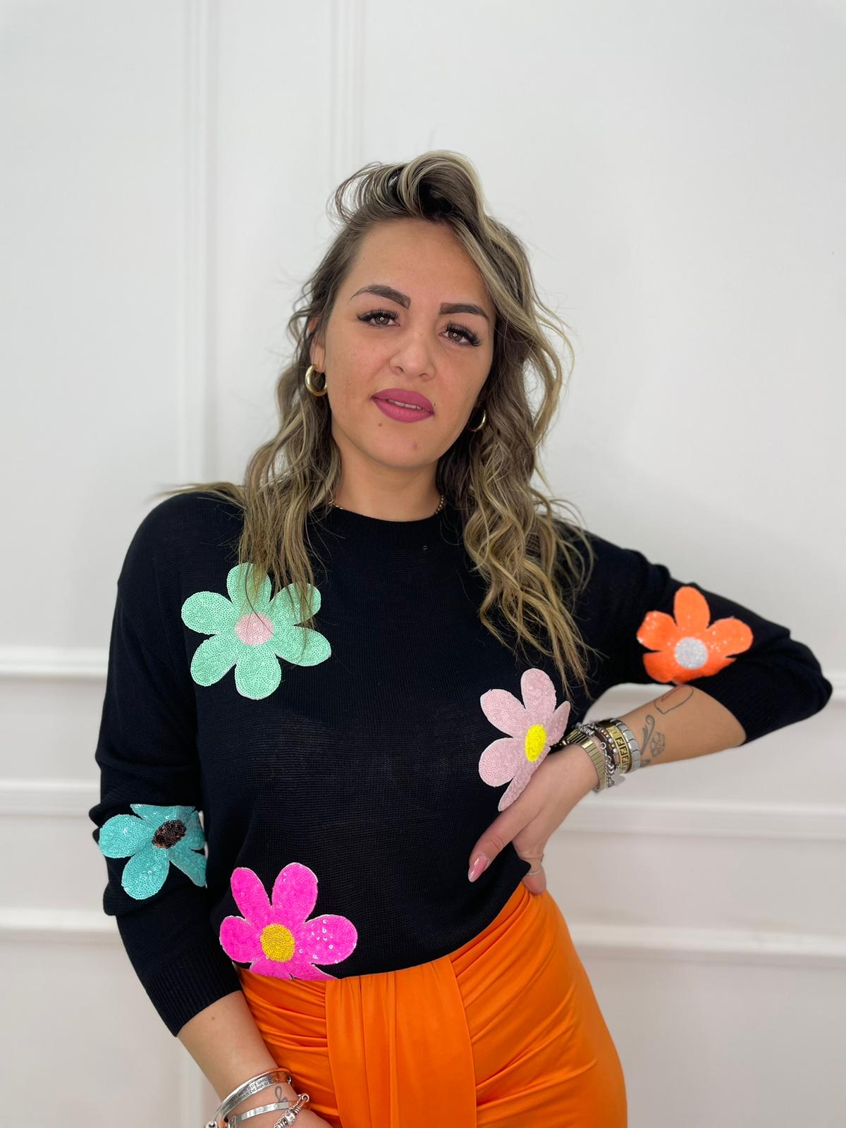 Maglioncino con fiori in paillettes