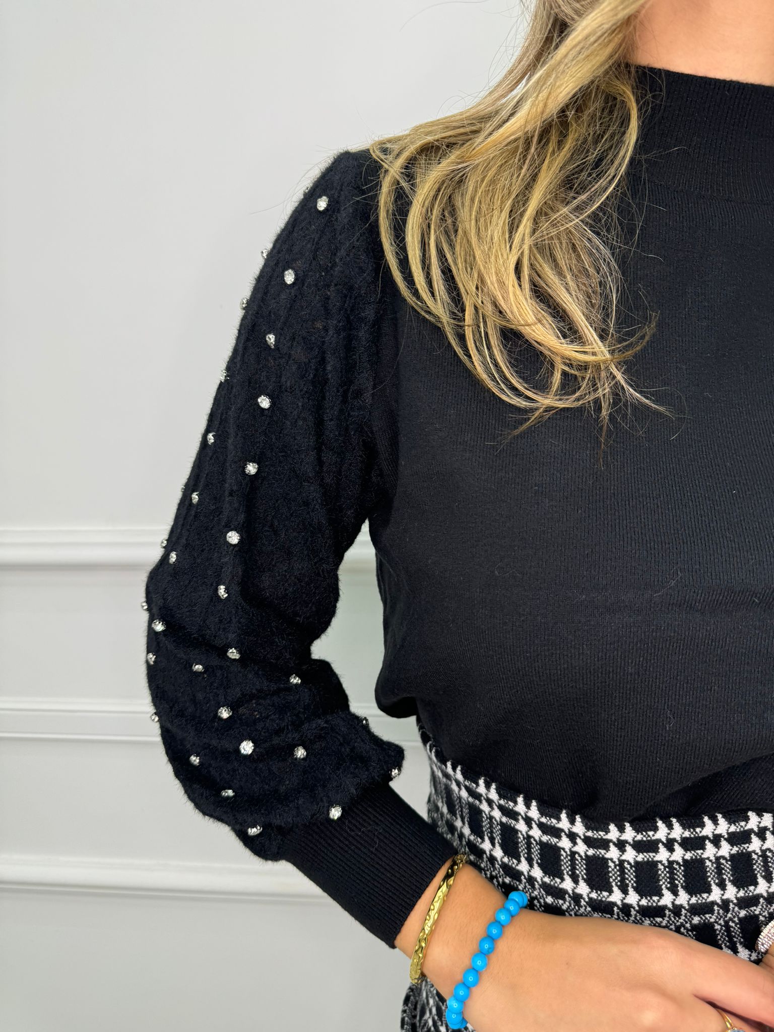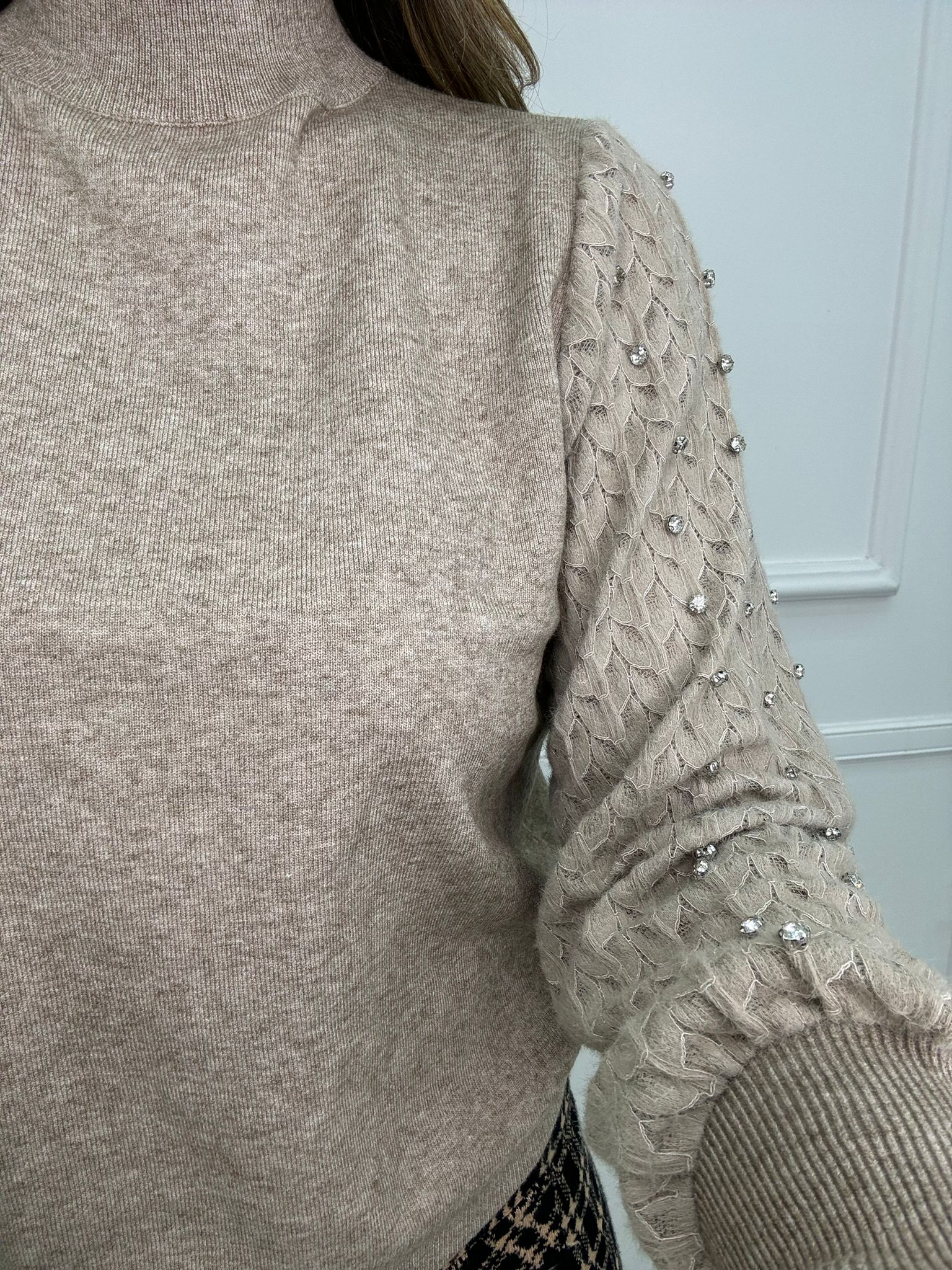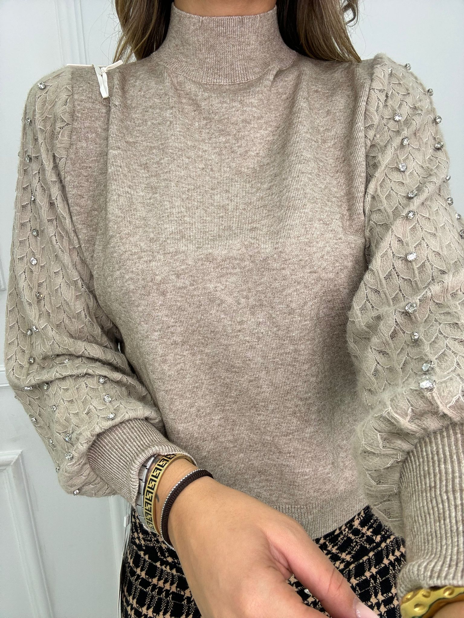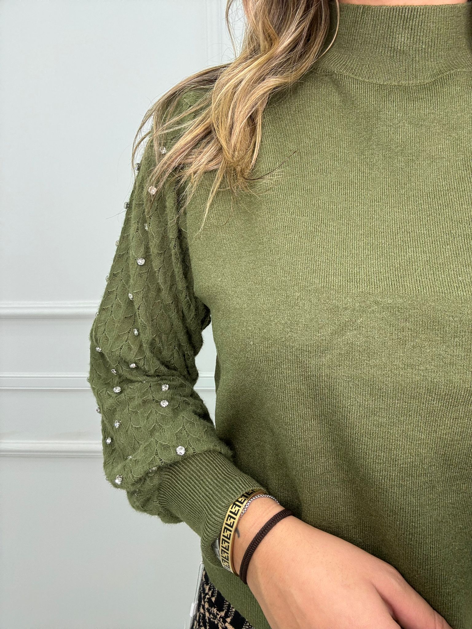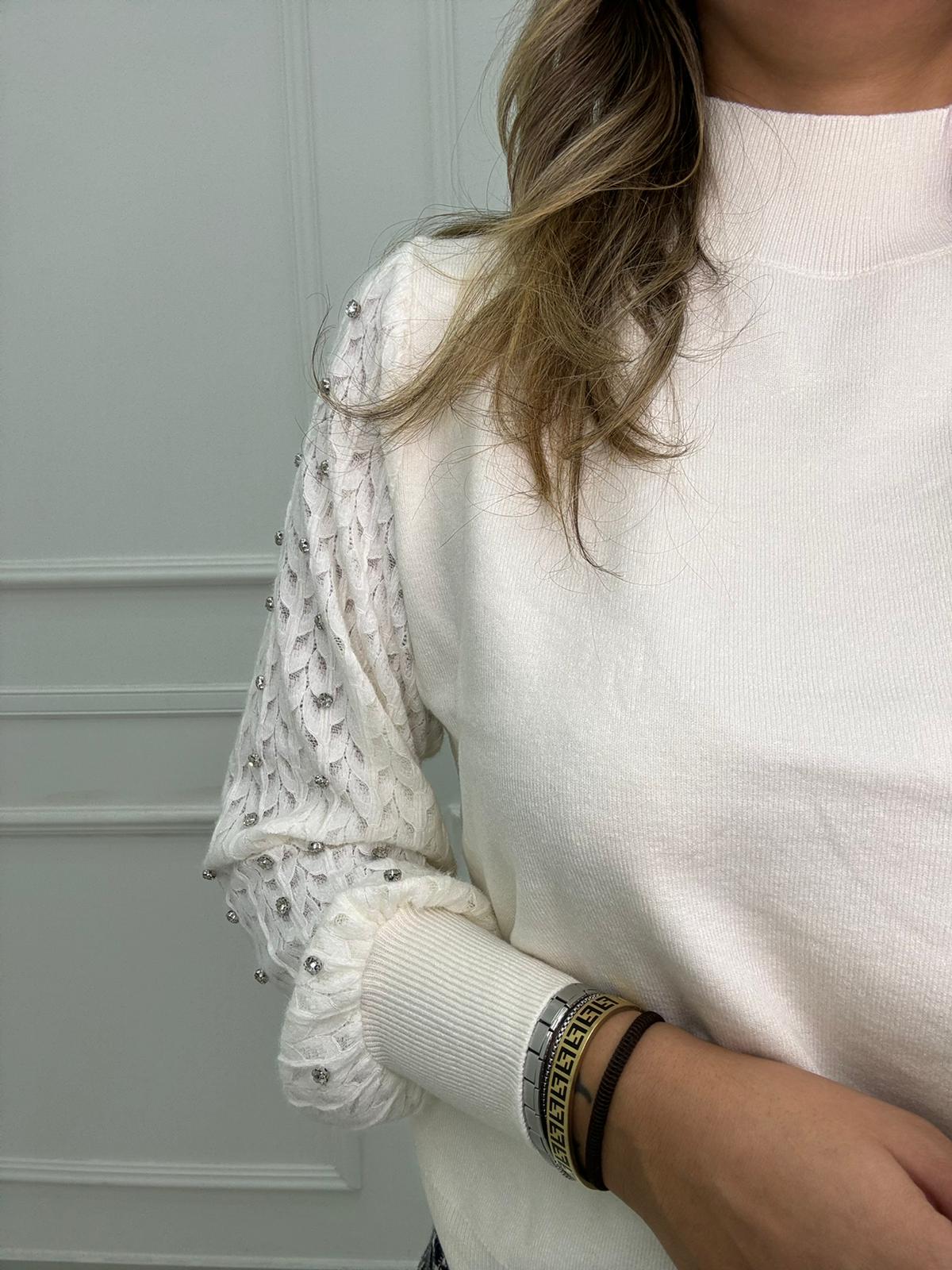 Maglioncino con maniche traforate e swarovski