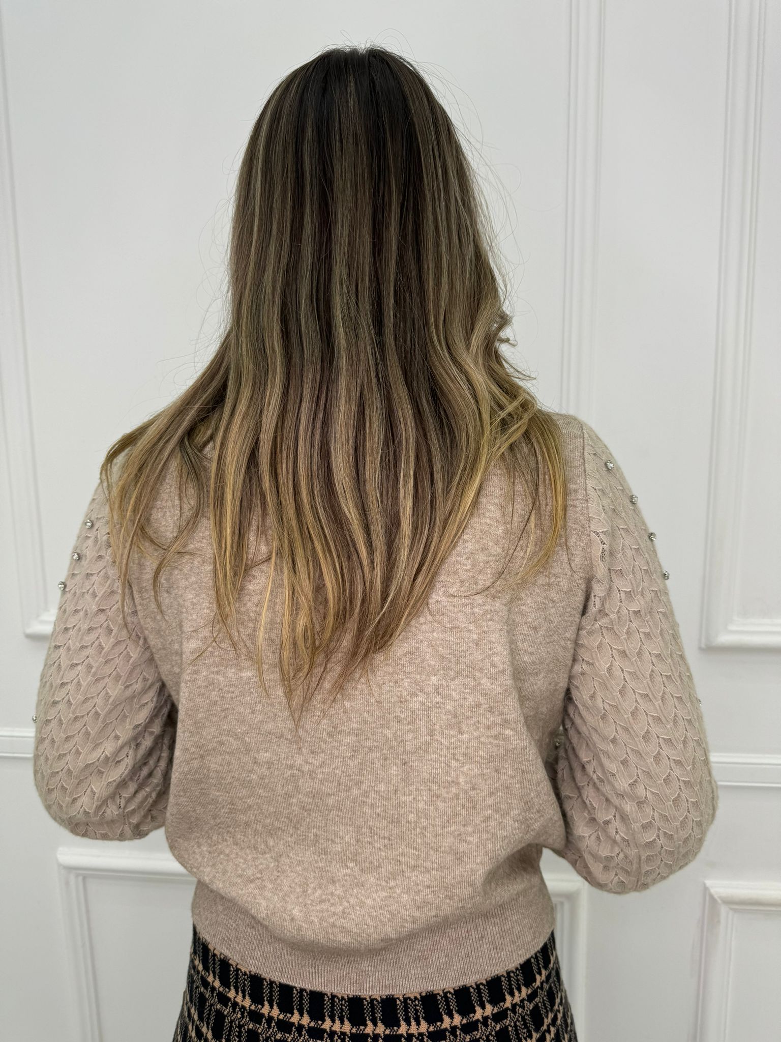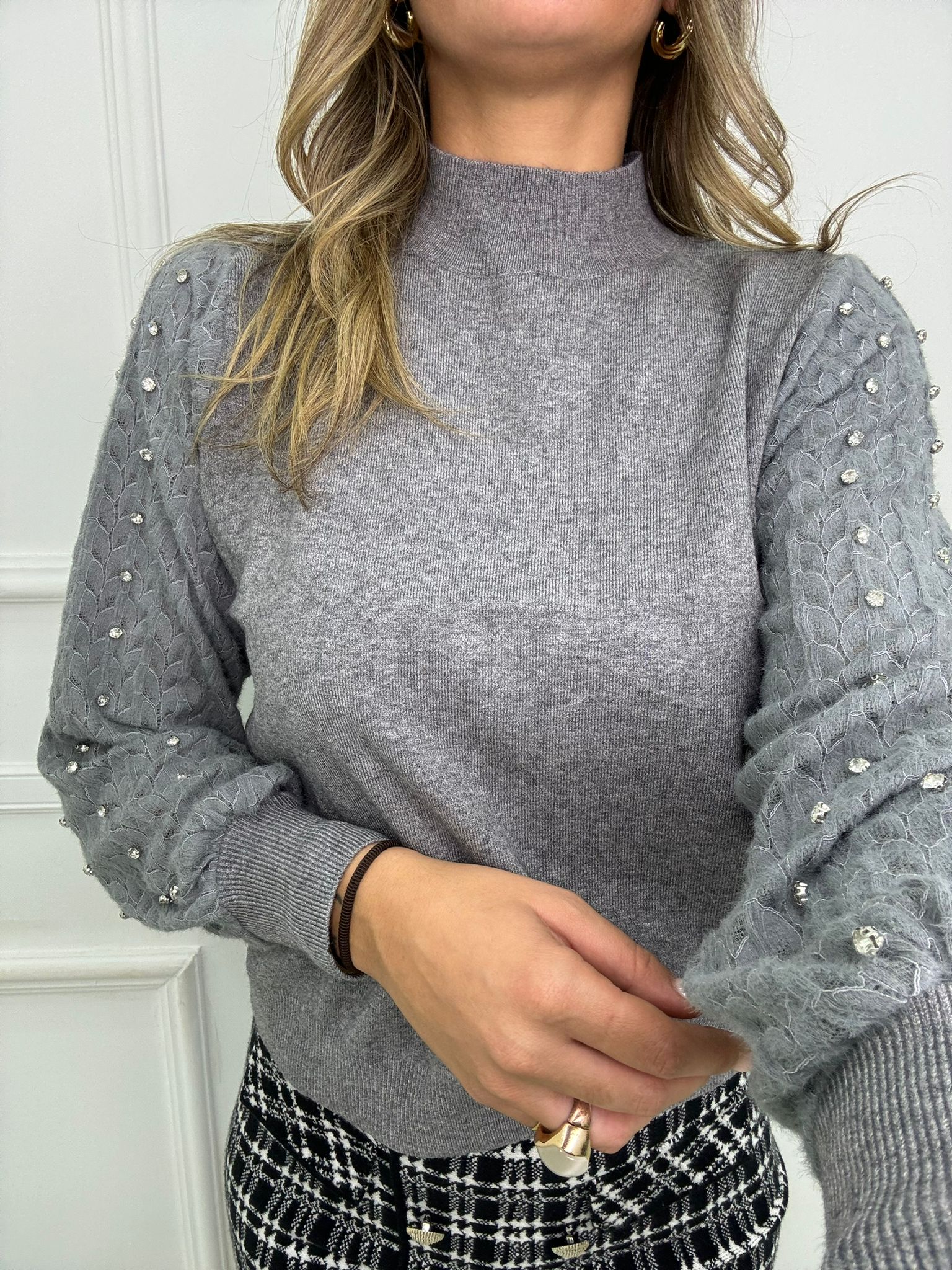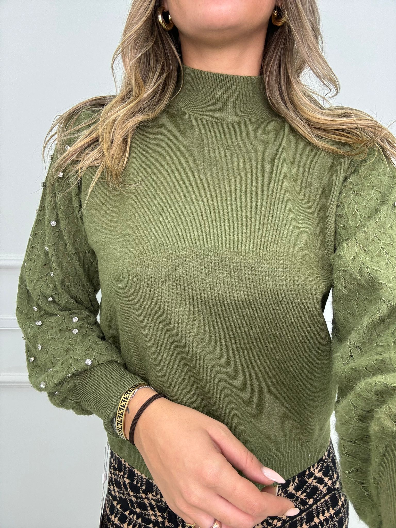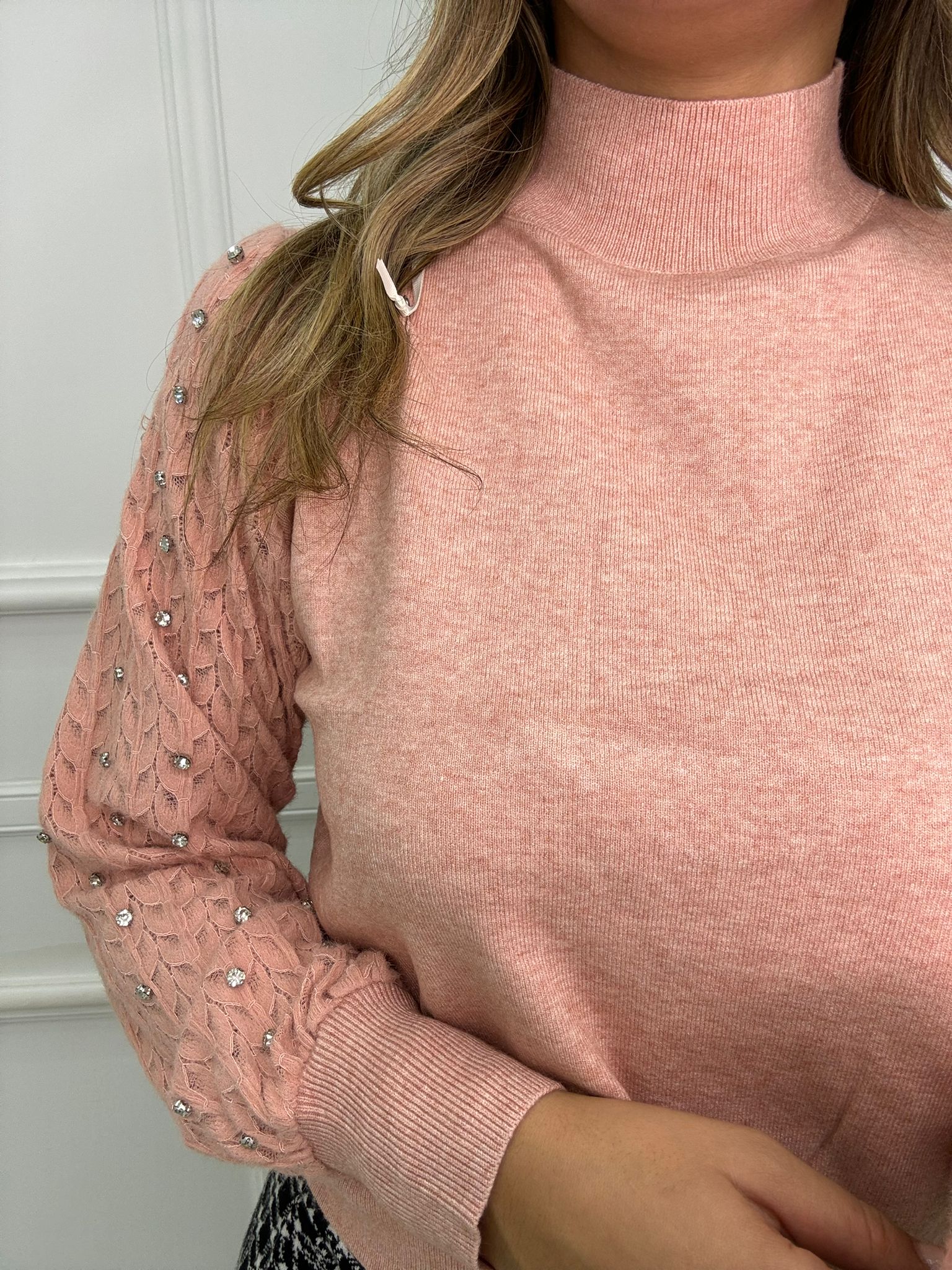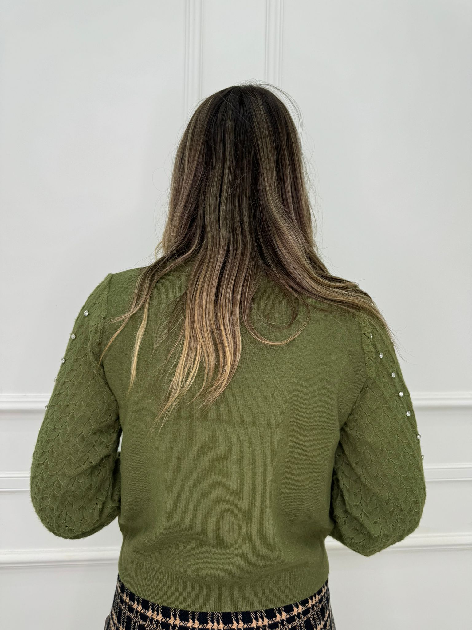 Maglioncino con maniche traforate e swarovski