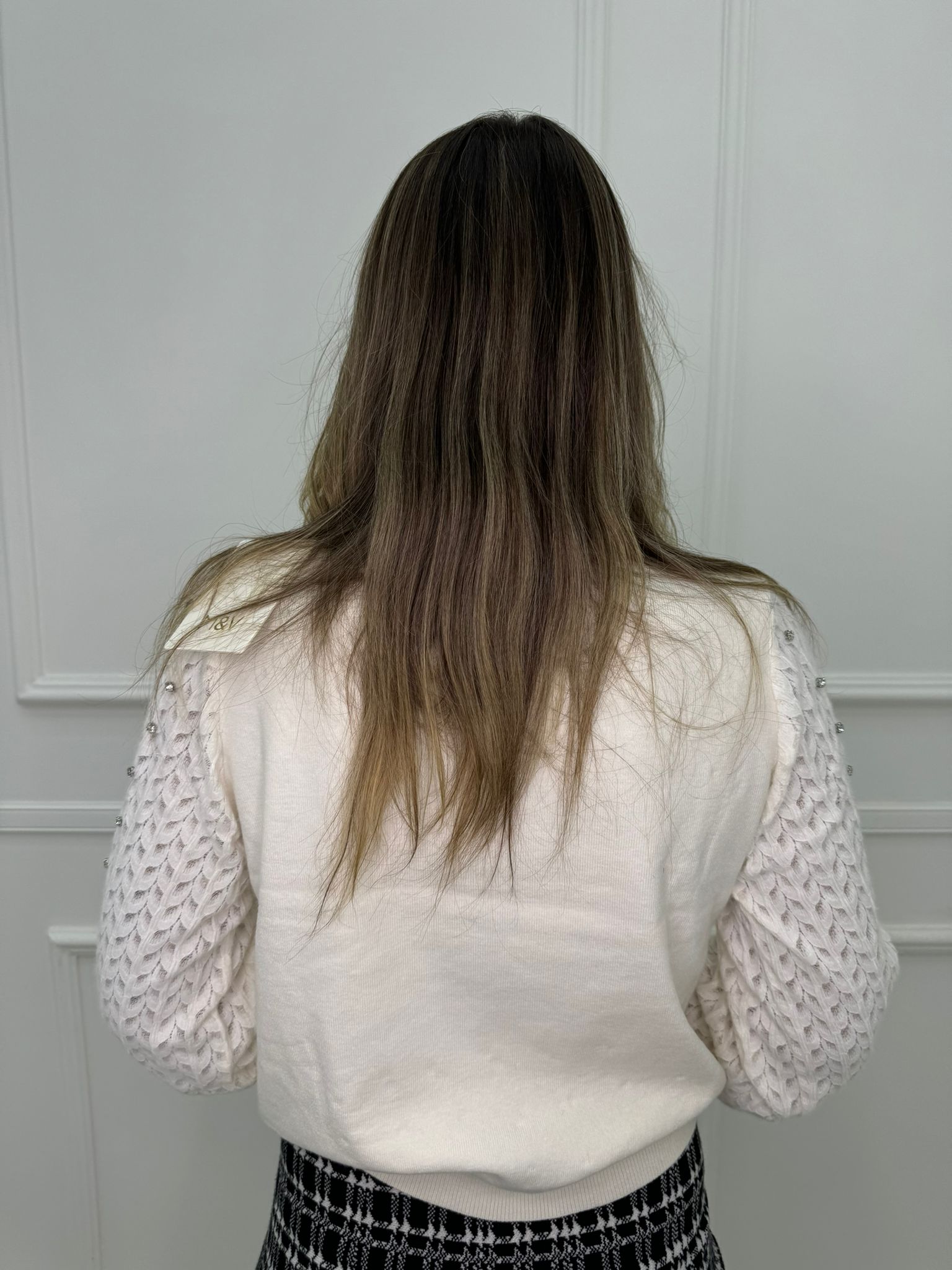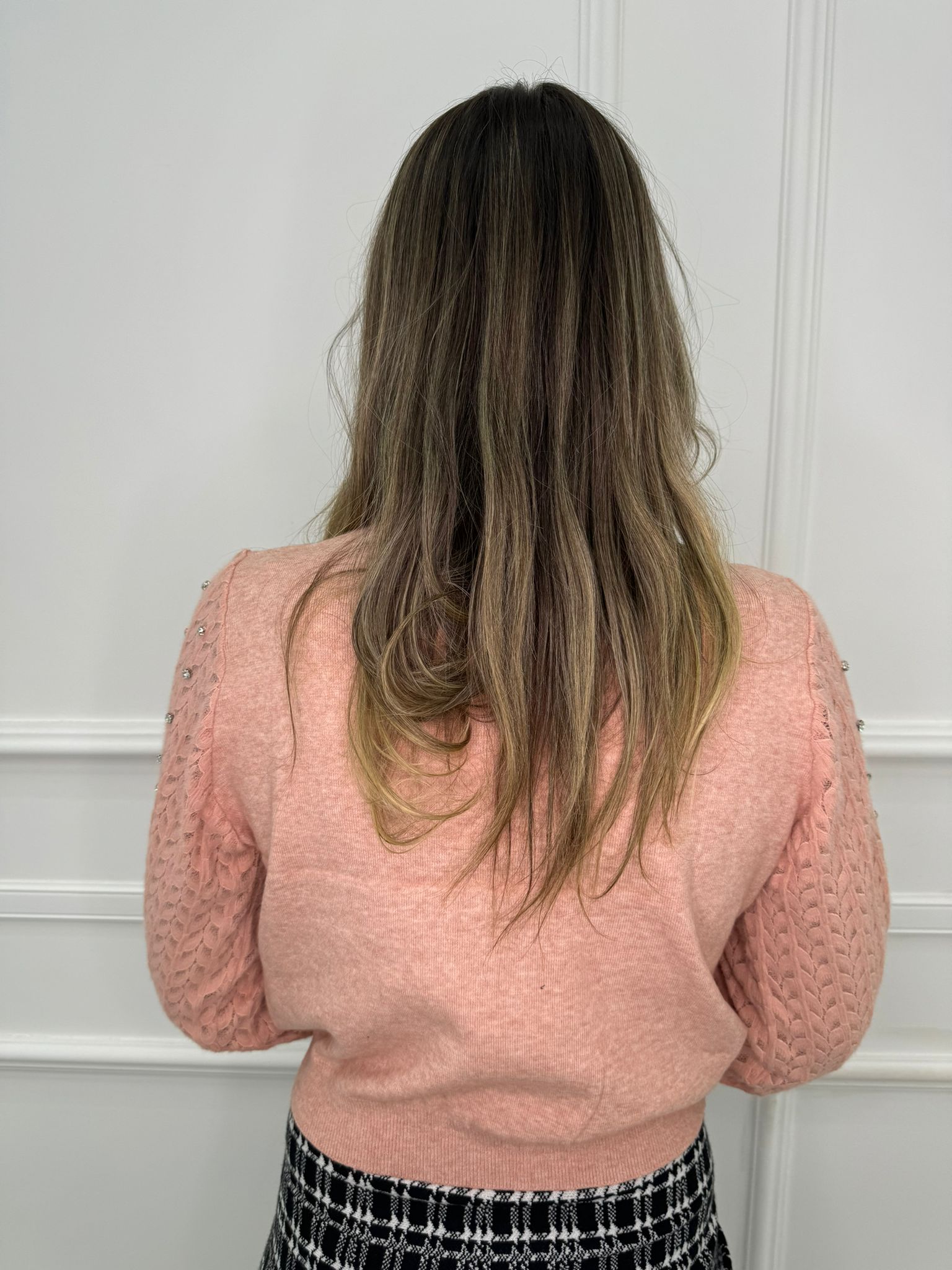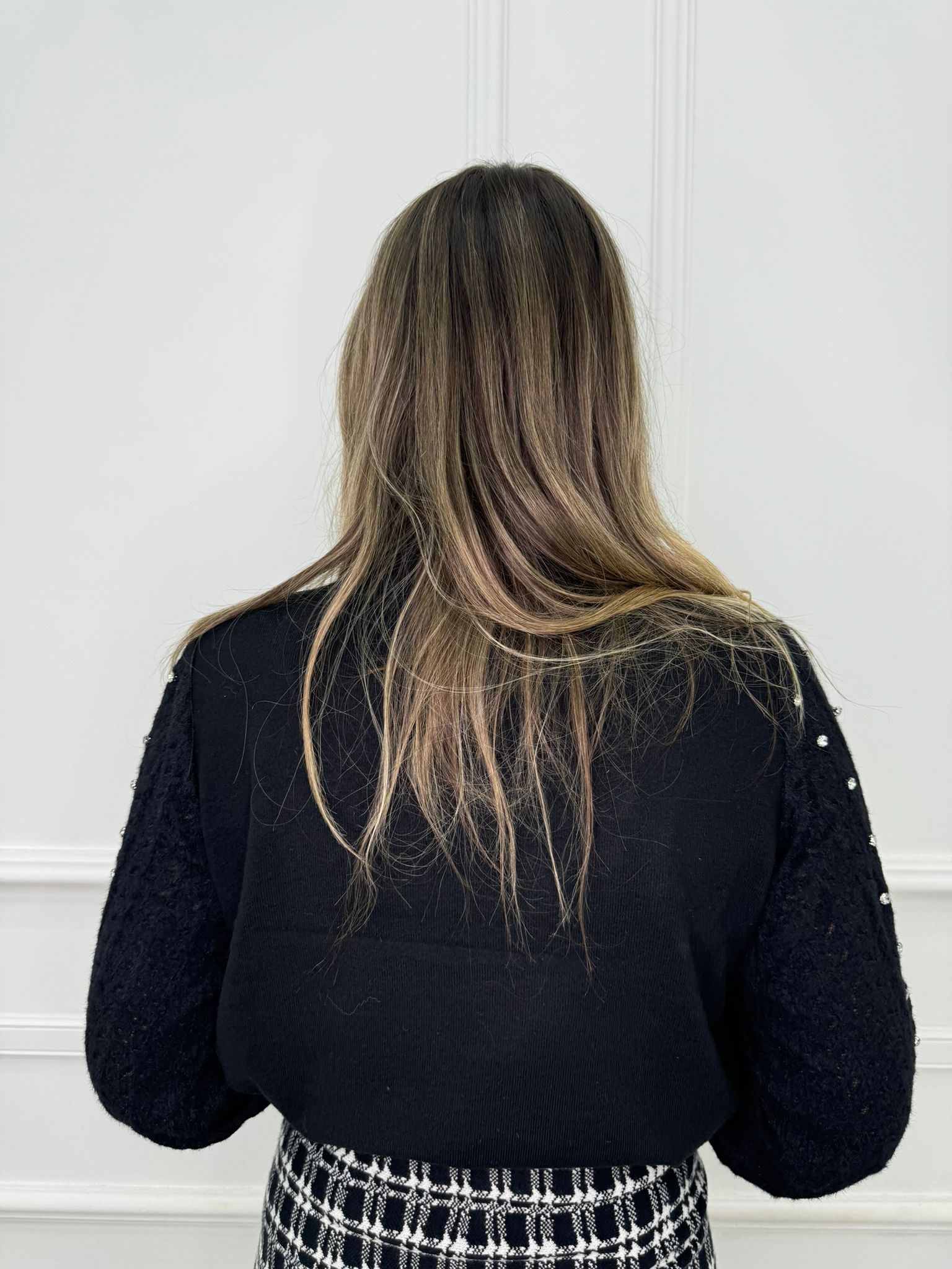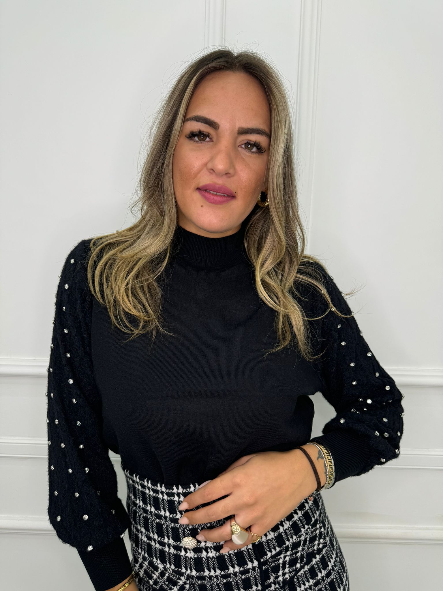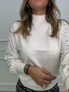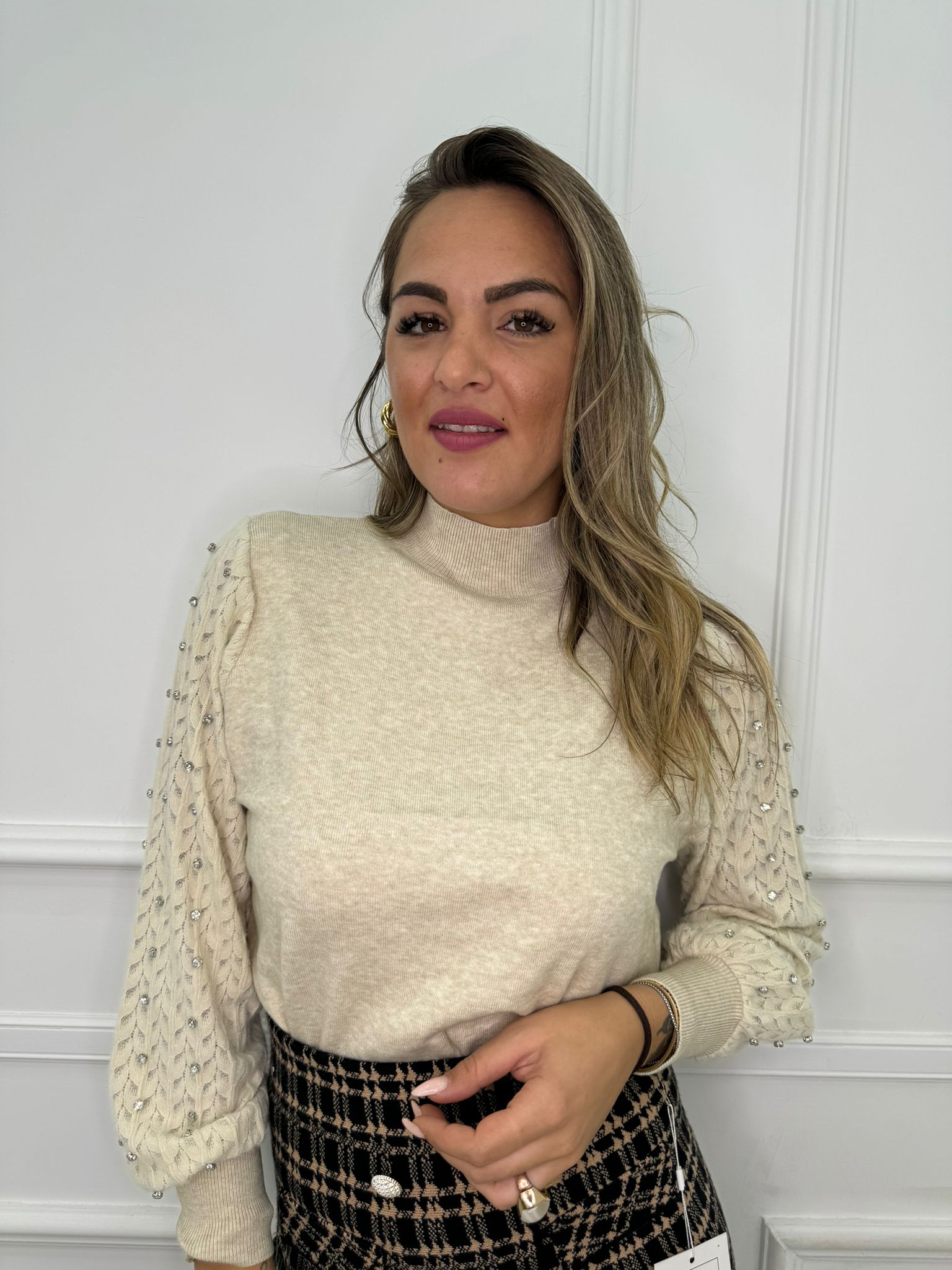 Maglioncino con maniche traforate e swarovski