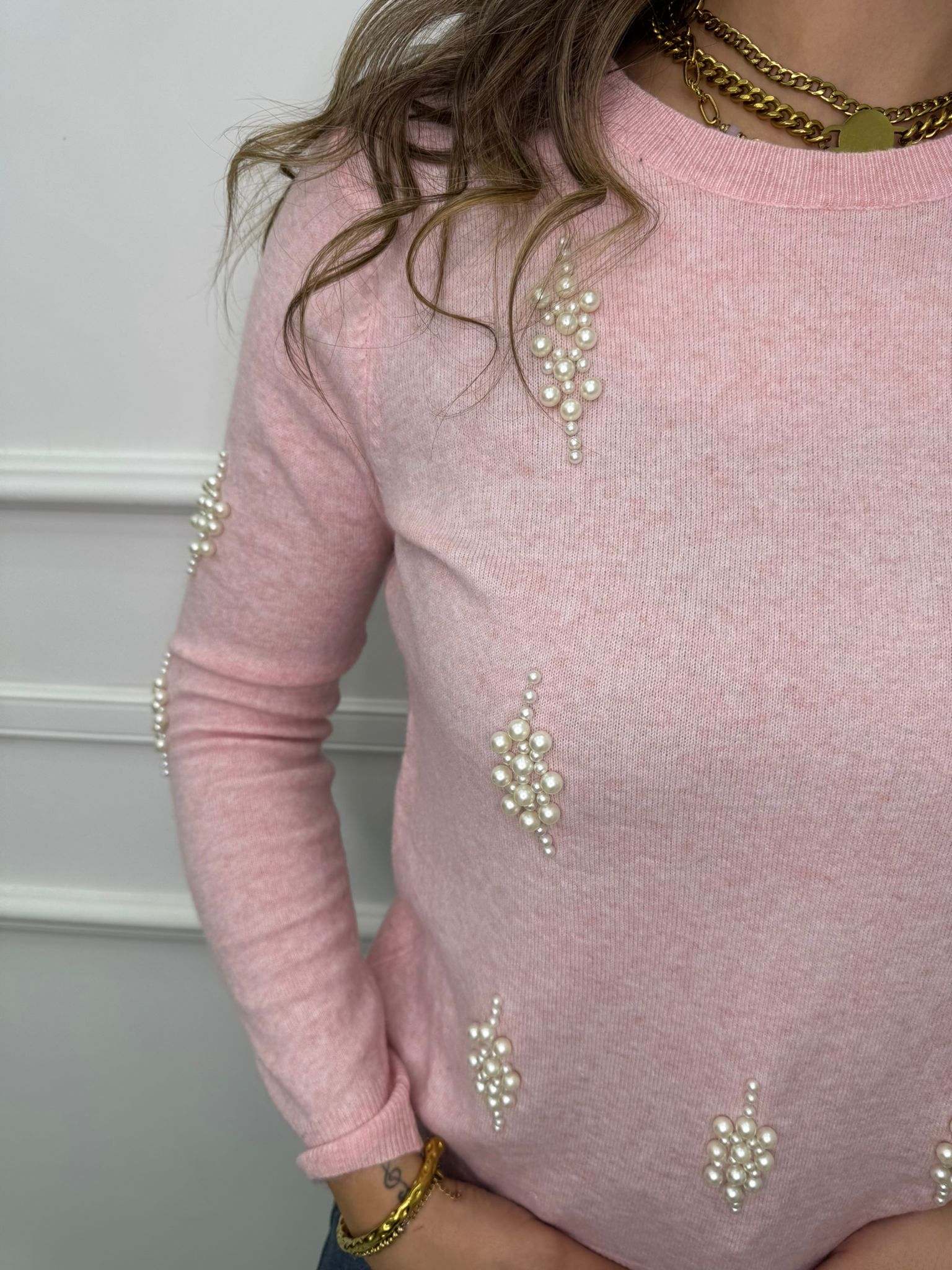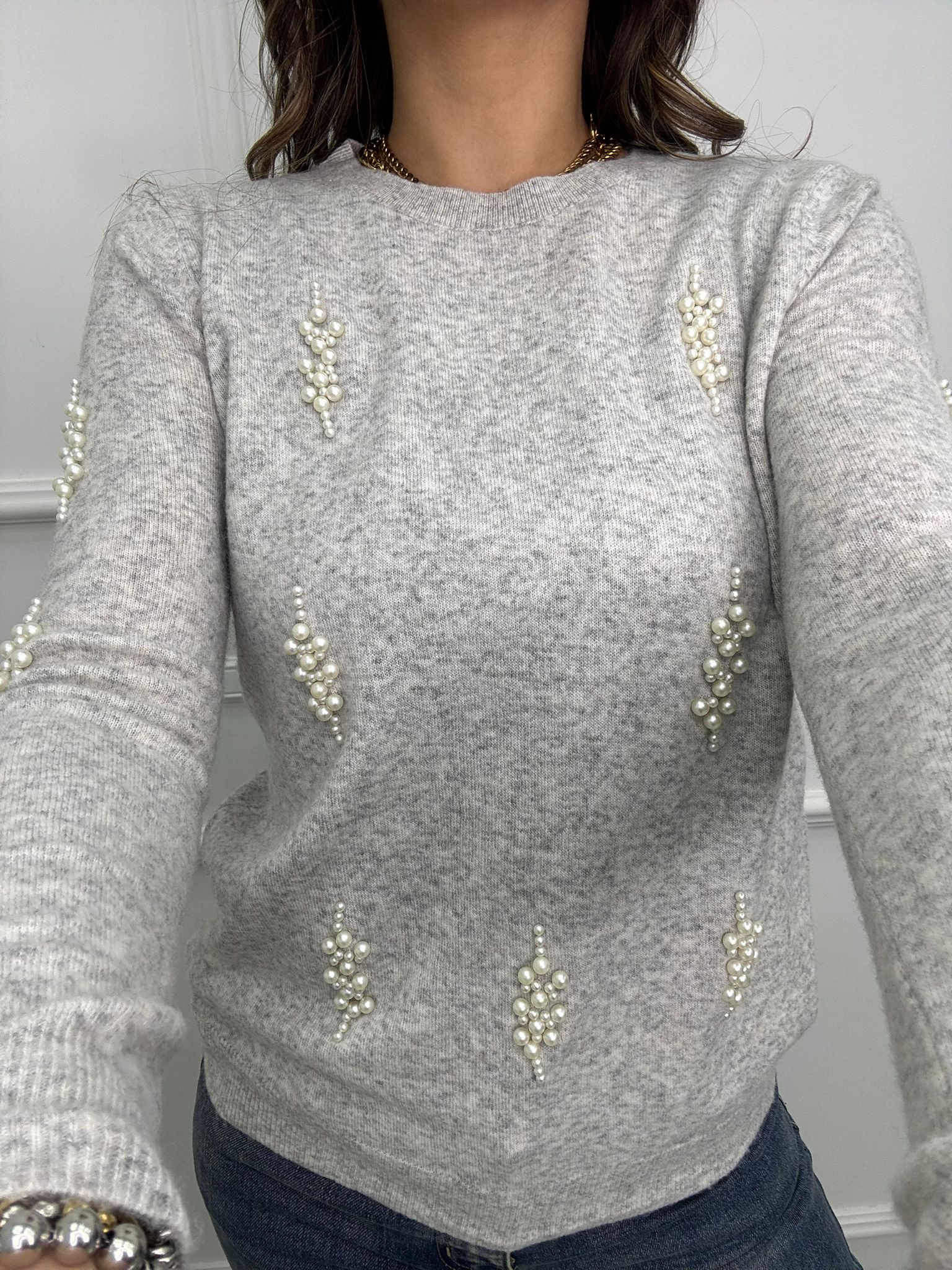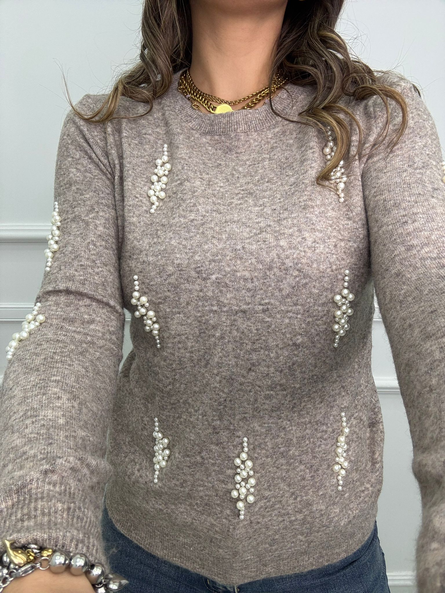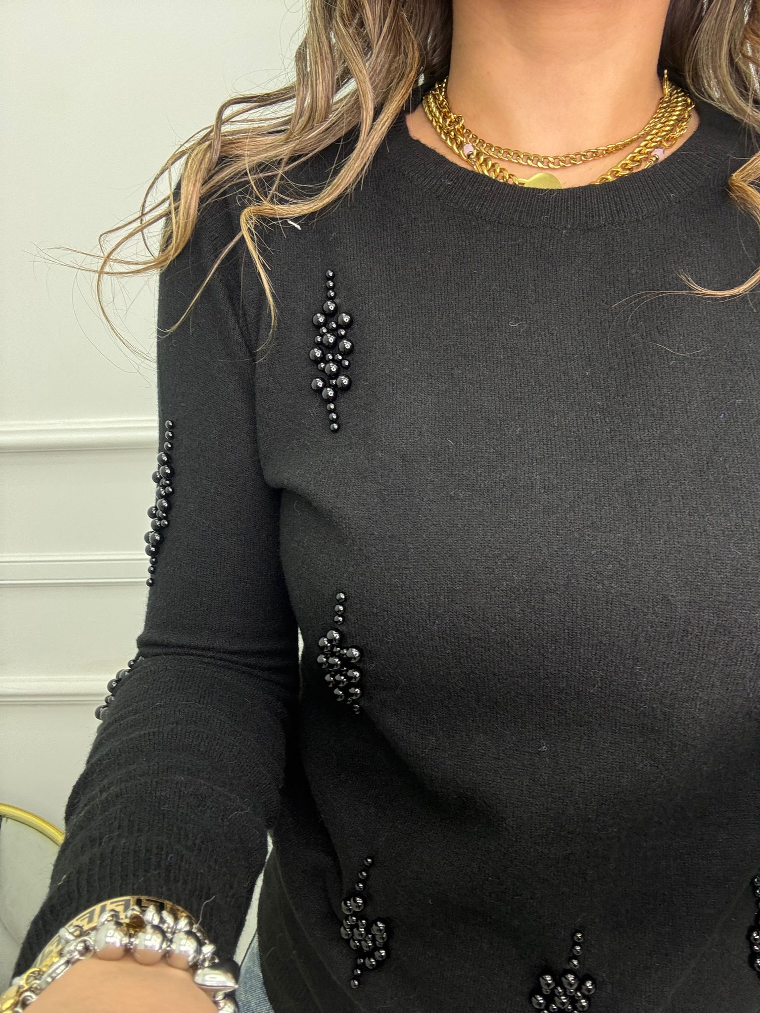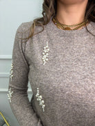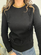 Maglioncino giro collo con perline
