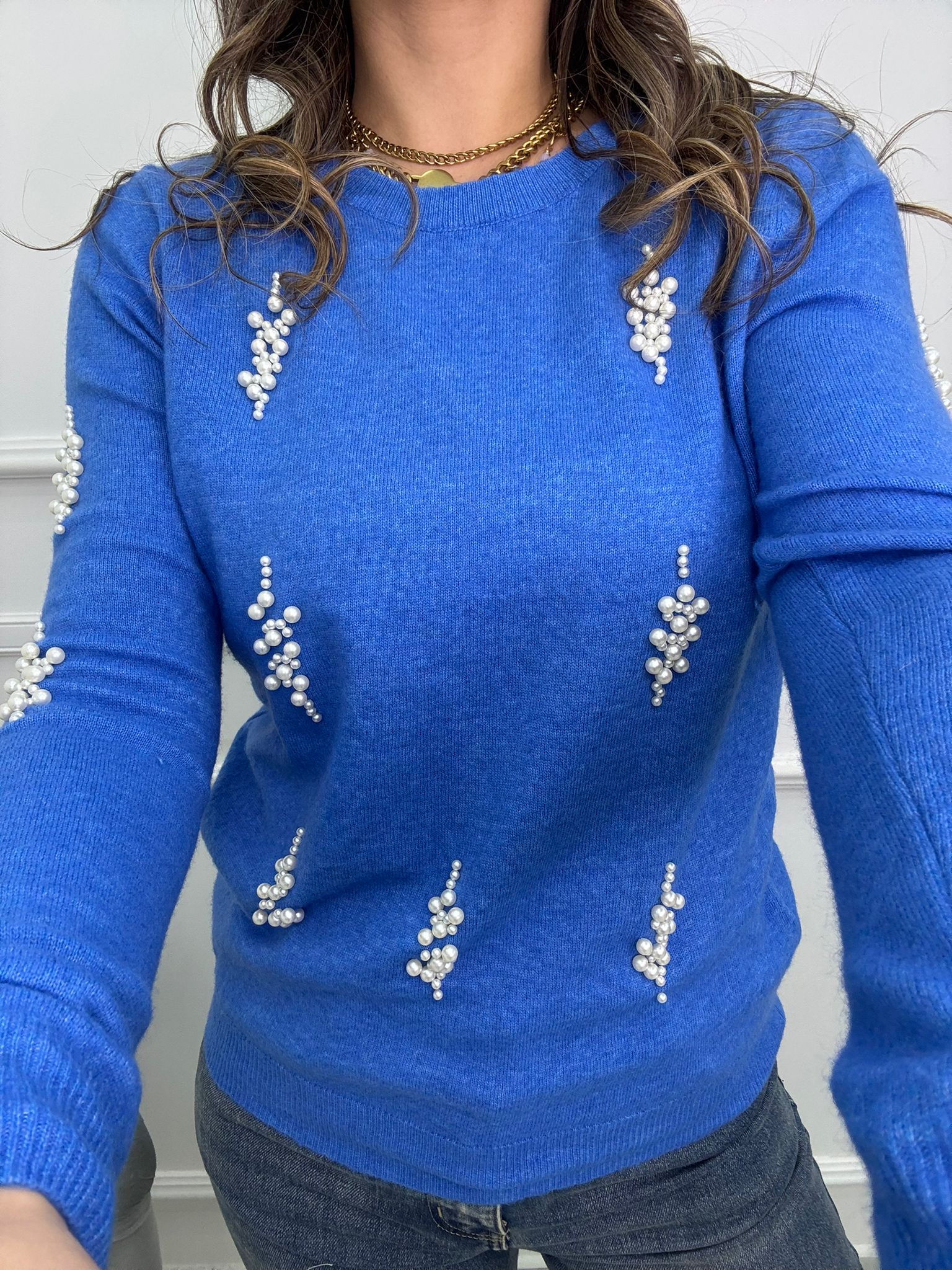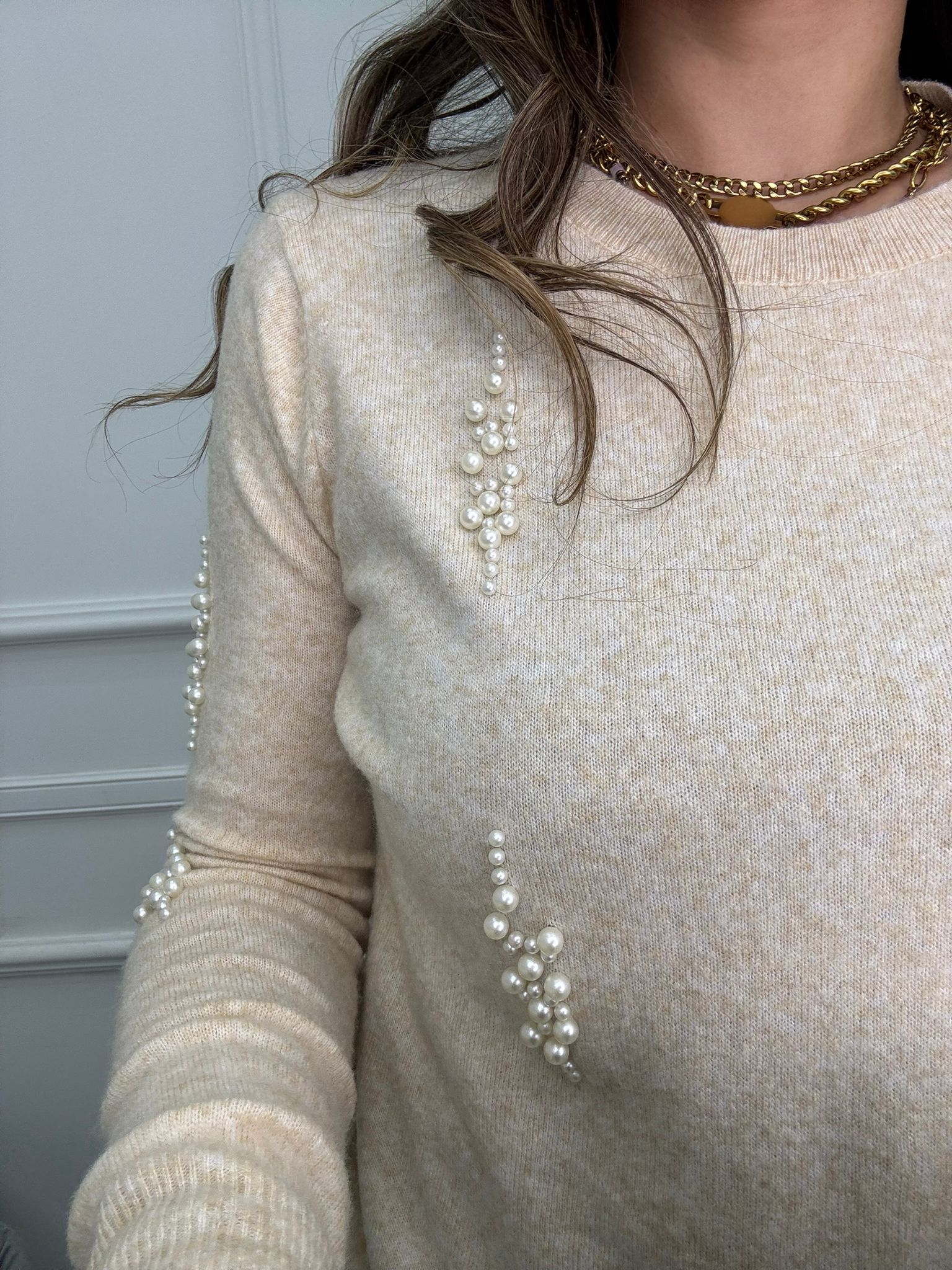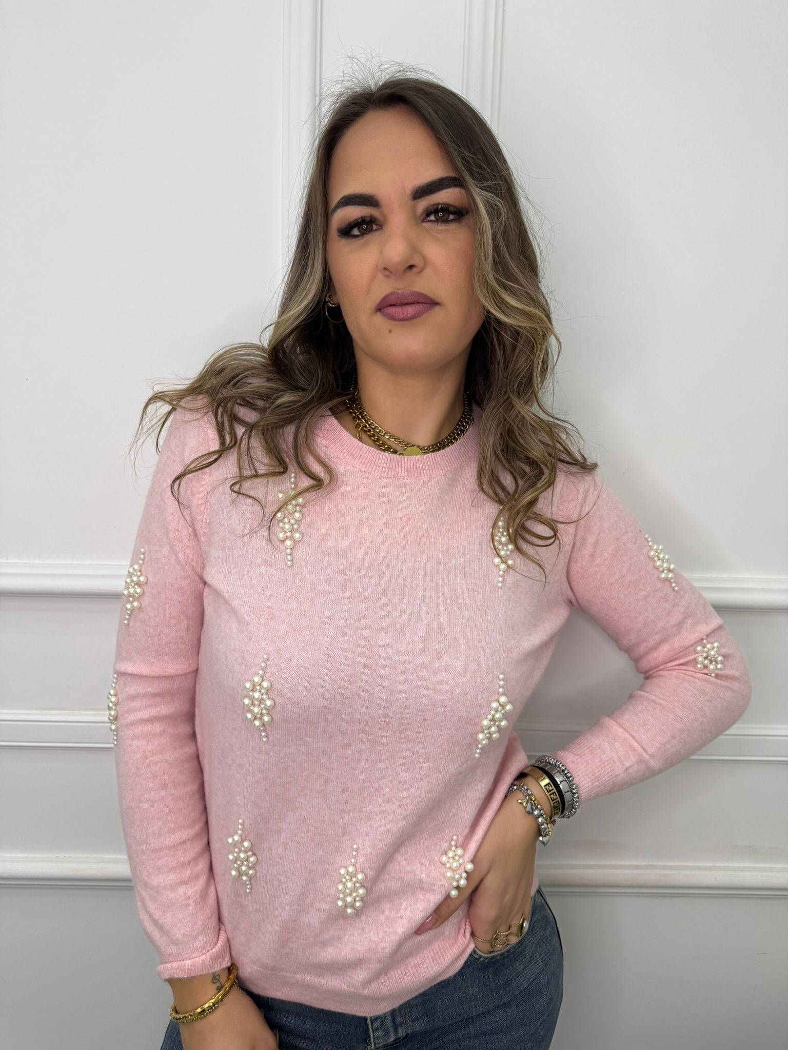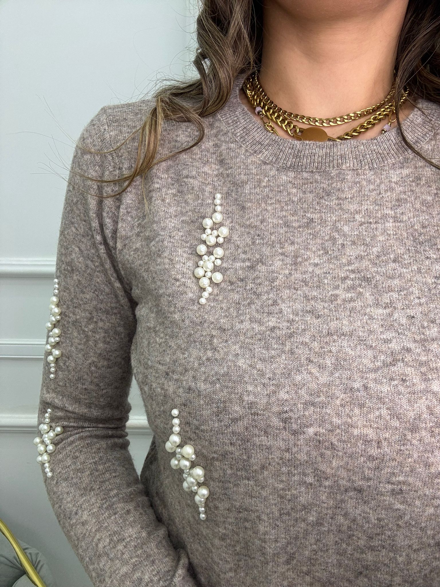 Maglioncino giro collo con perline
