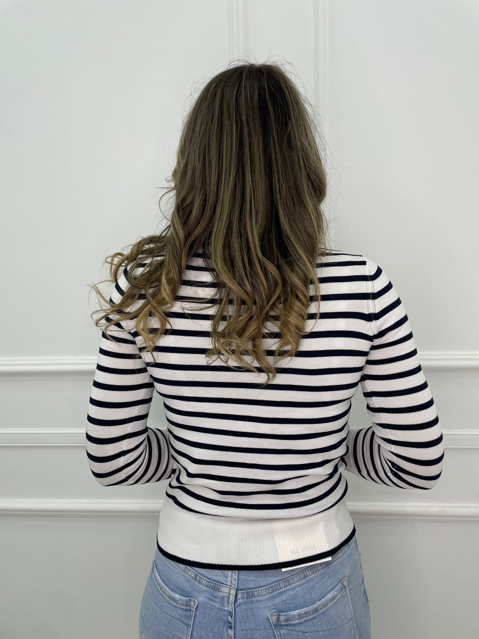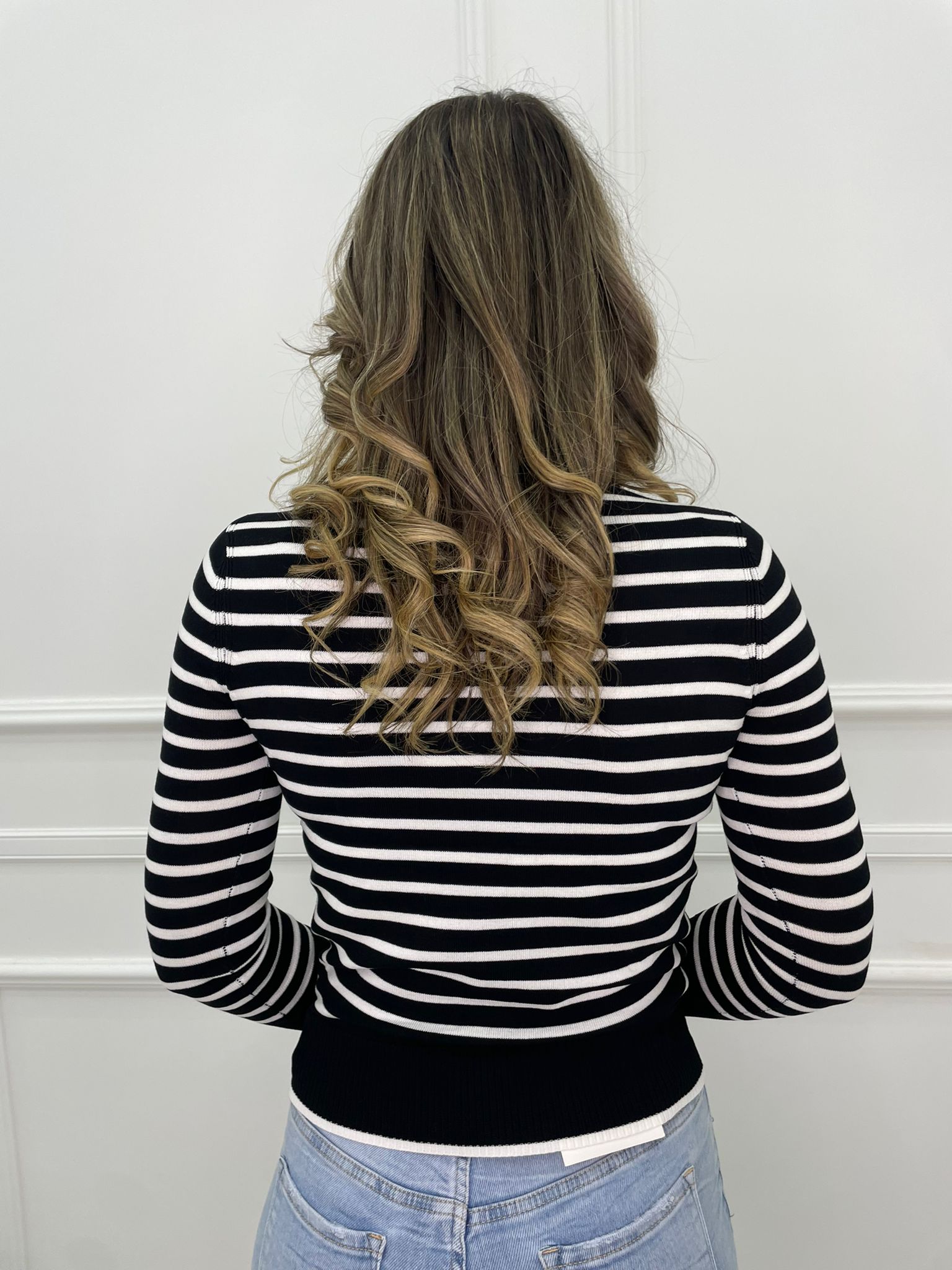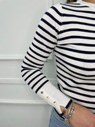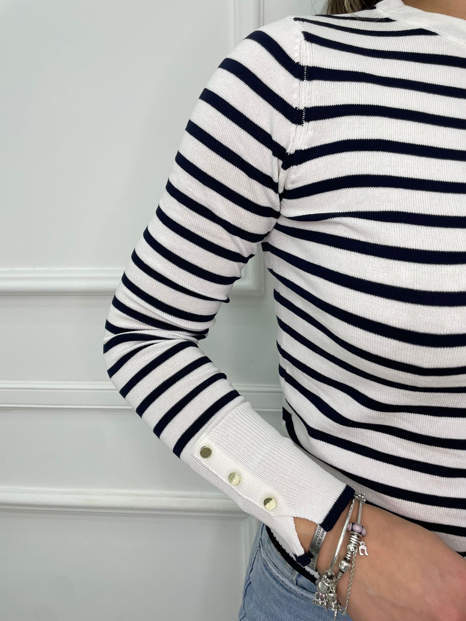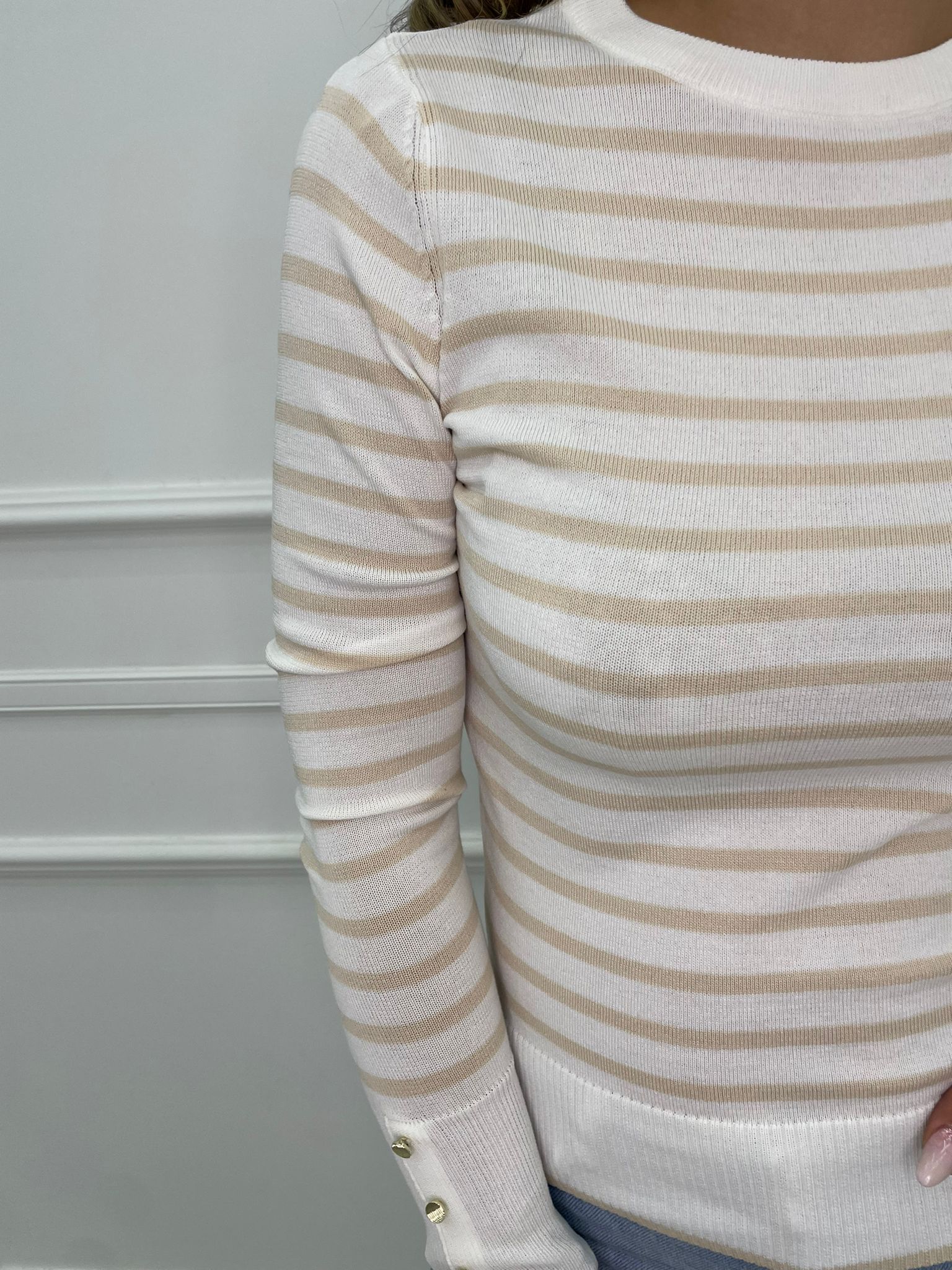 Maglioncino in filo a righe con finti bottoni alle maniche