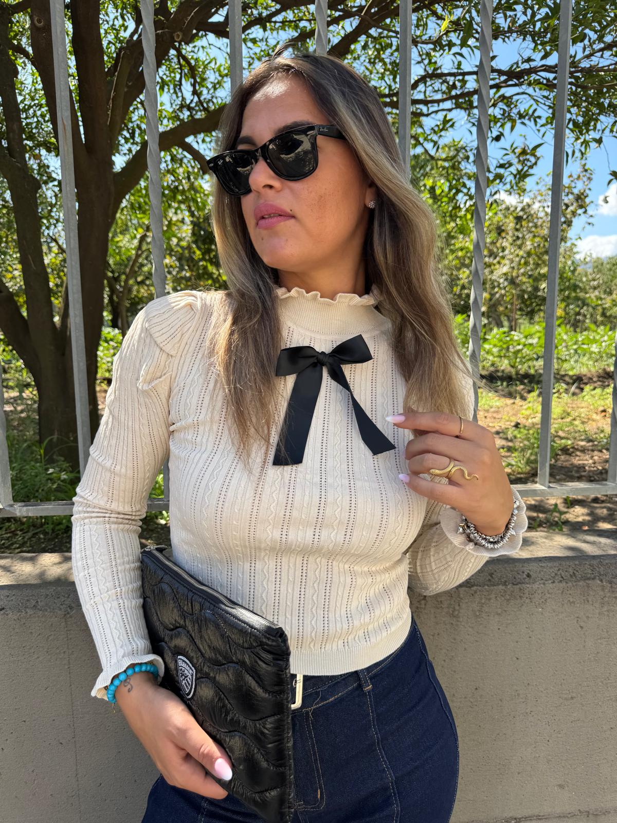 Maglioncino in filo con fiocco