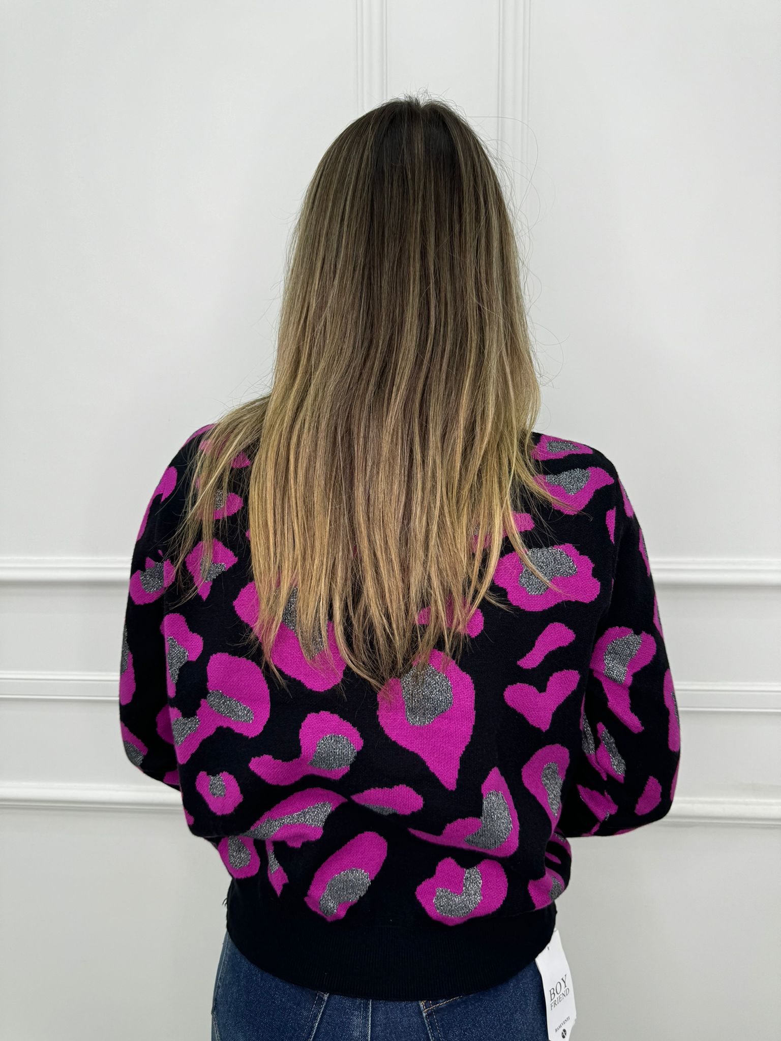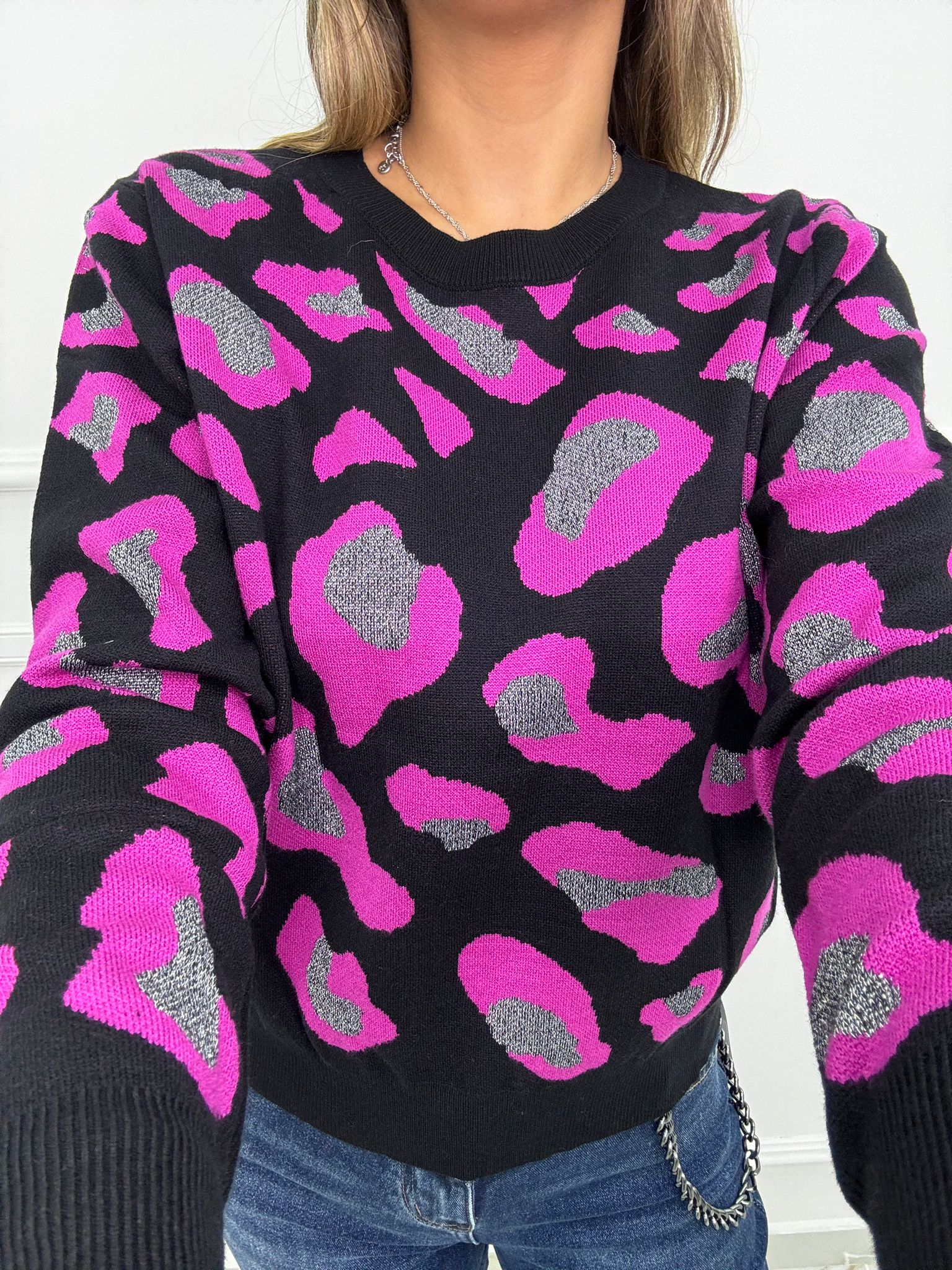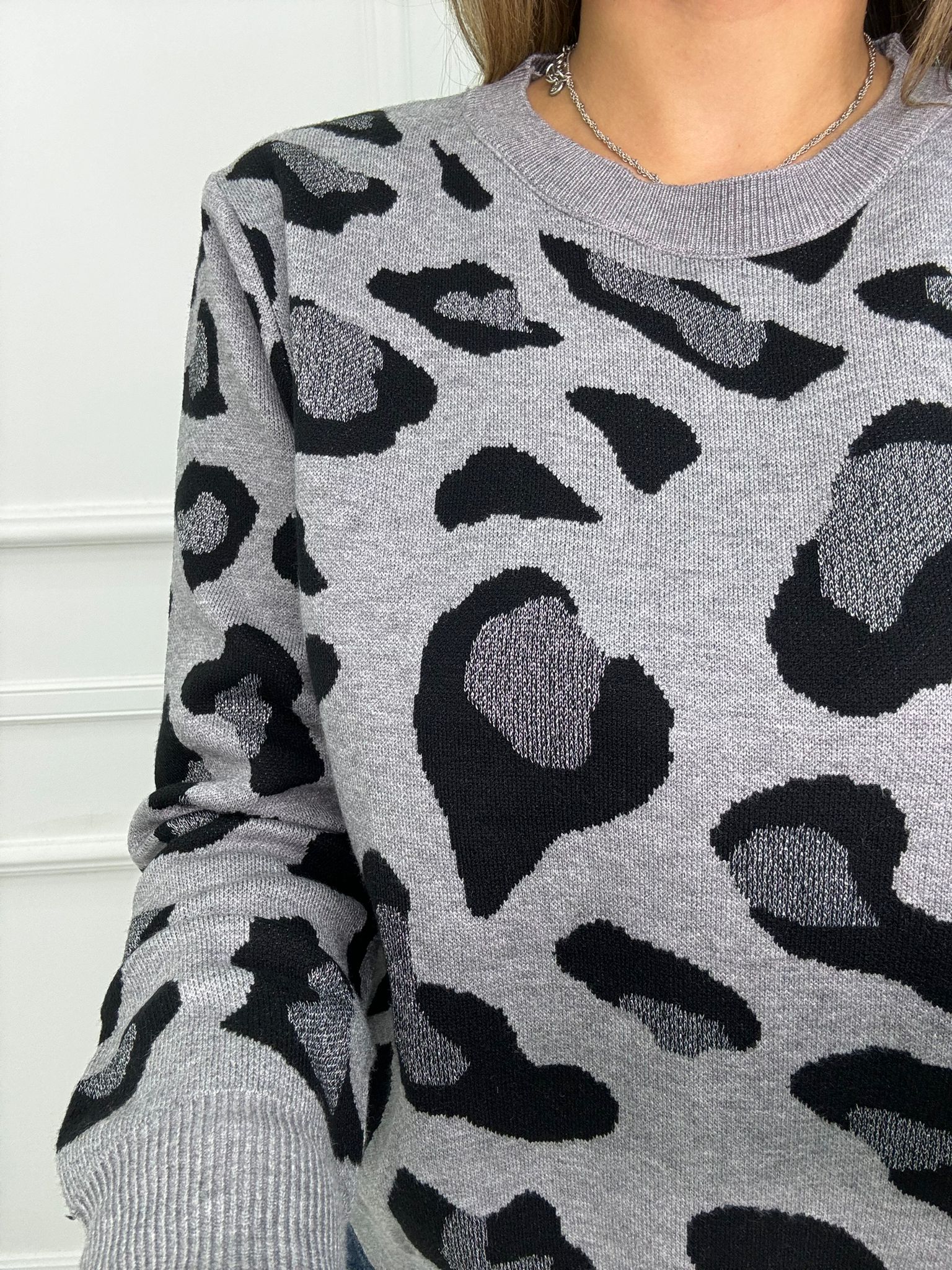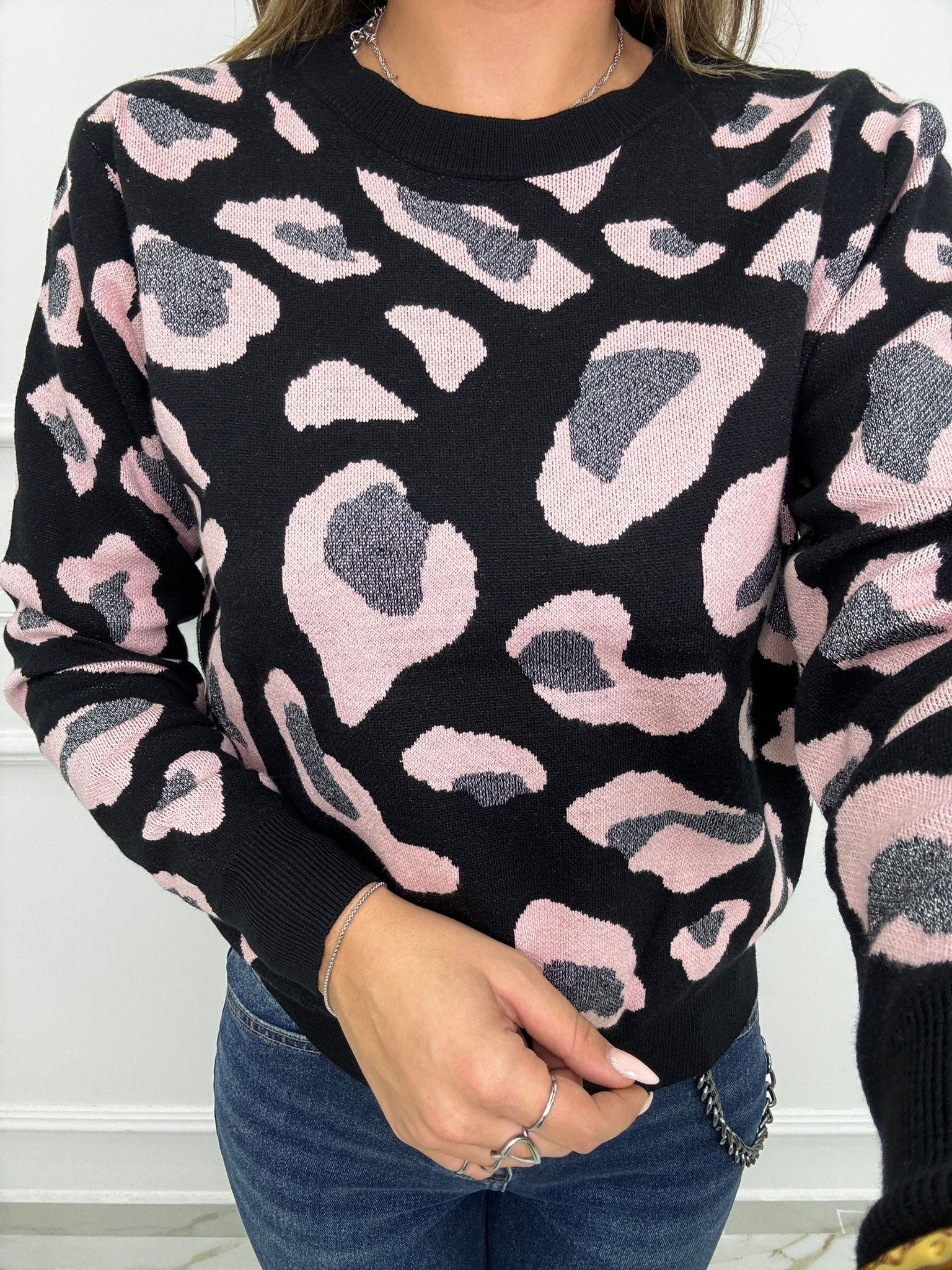 Maglione animalier con inserti glitter