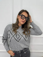 Maglione con rombi ricamati