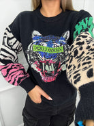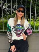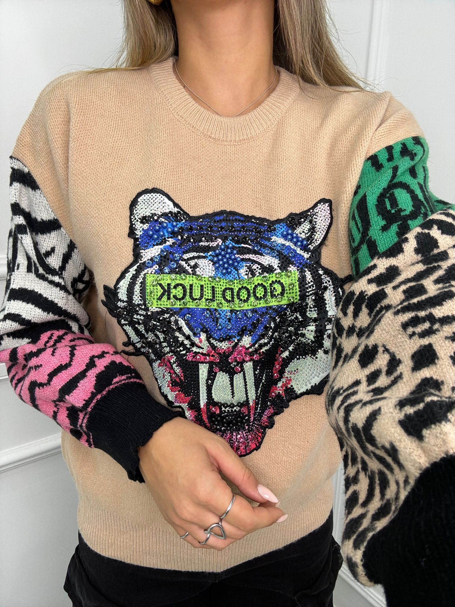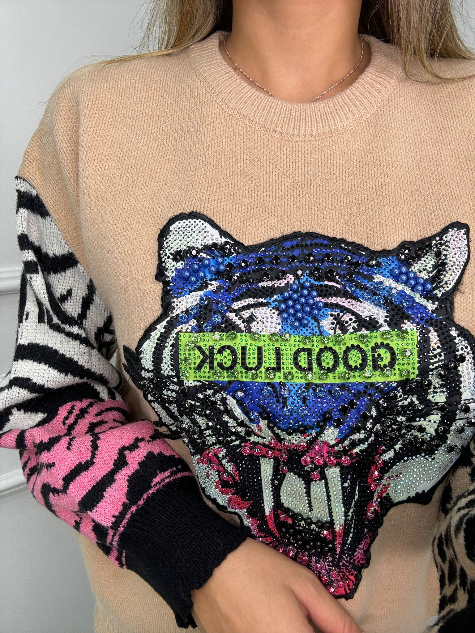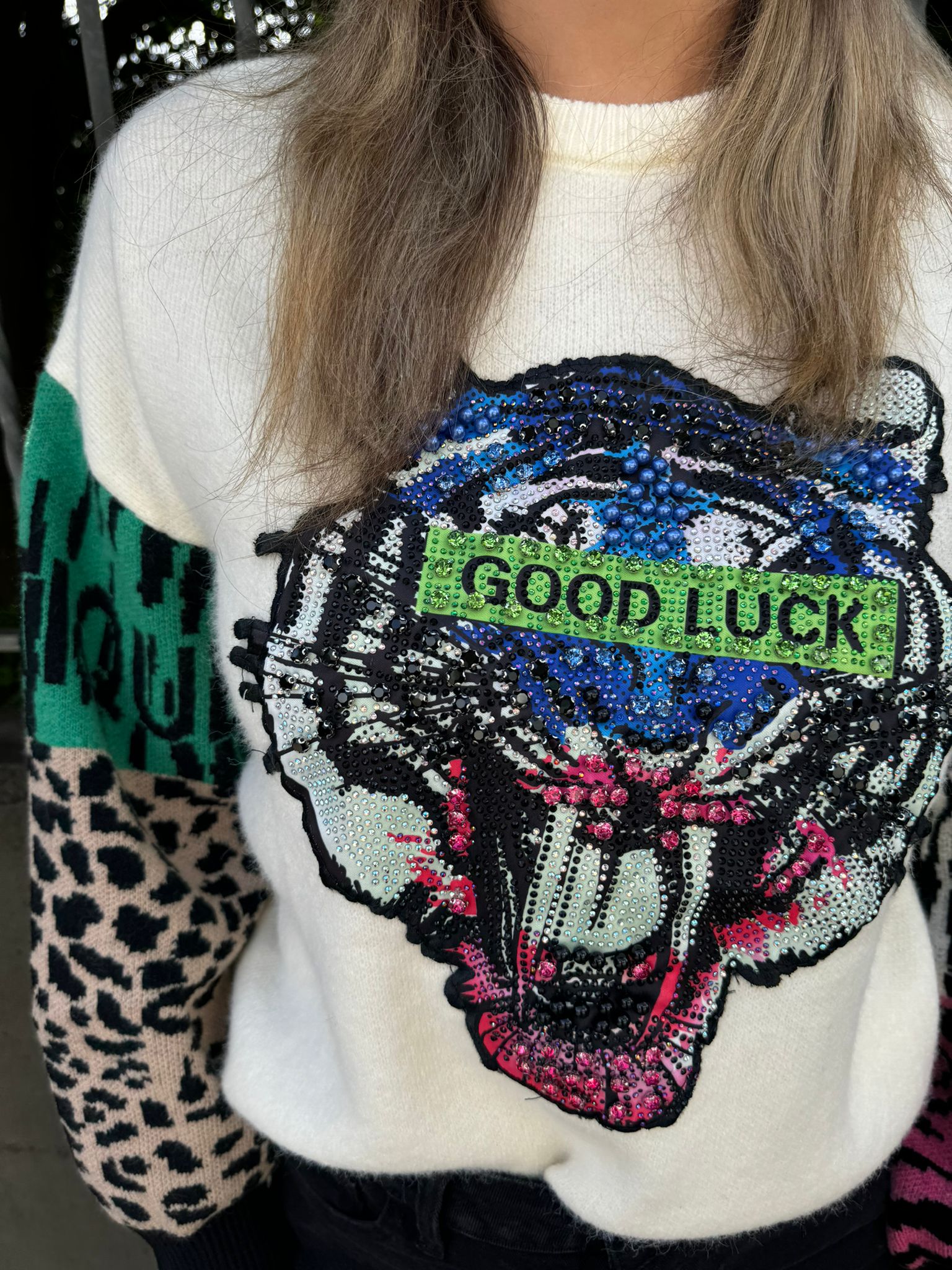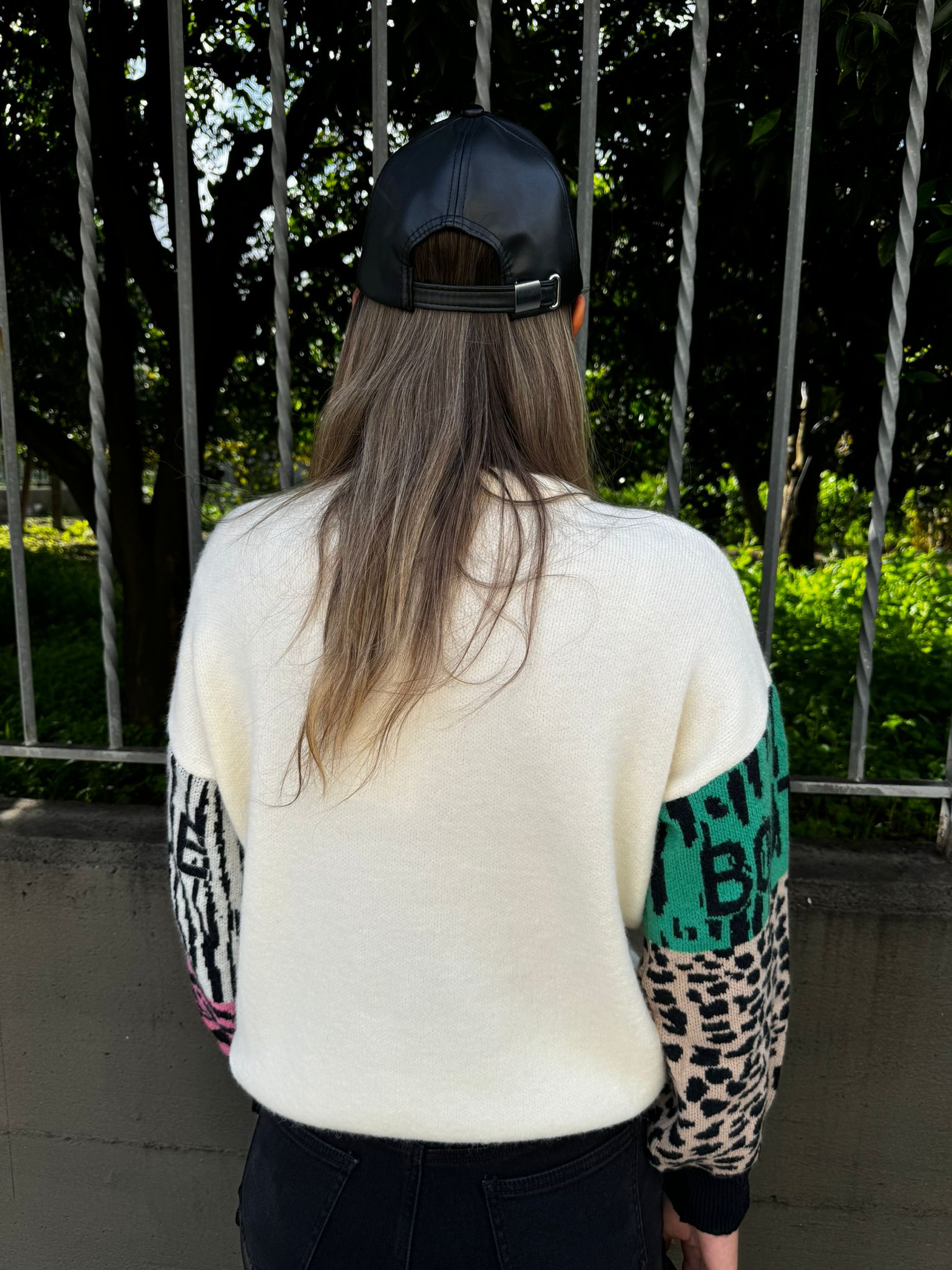 Maglione con stampa avanti e maniche particolari