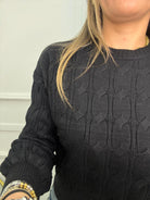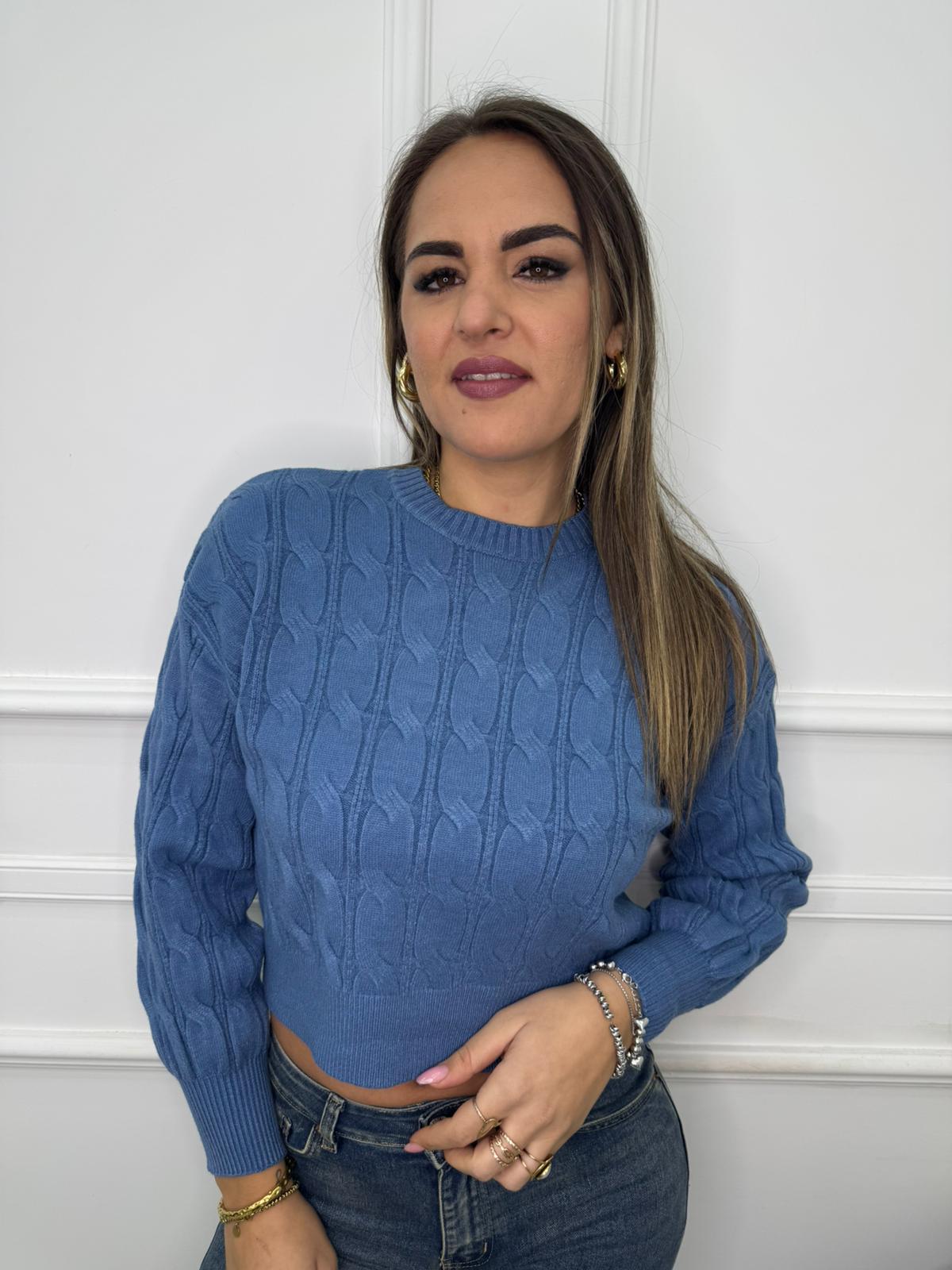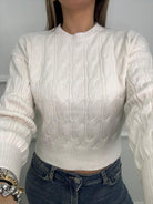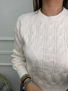 Maglione giro collo trama treccia