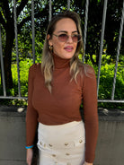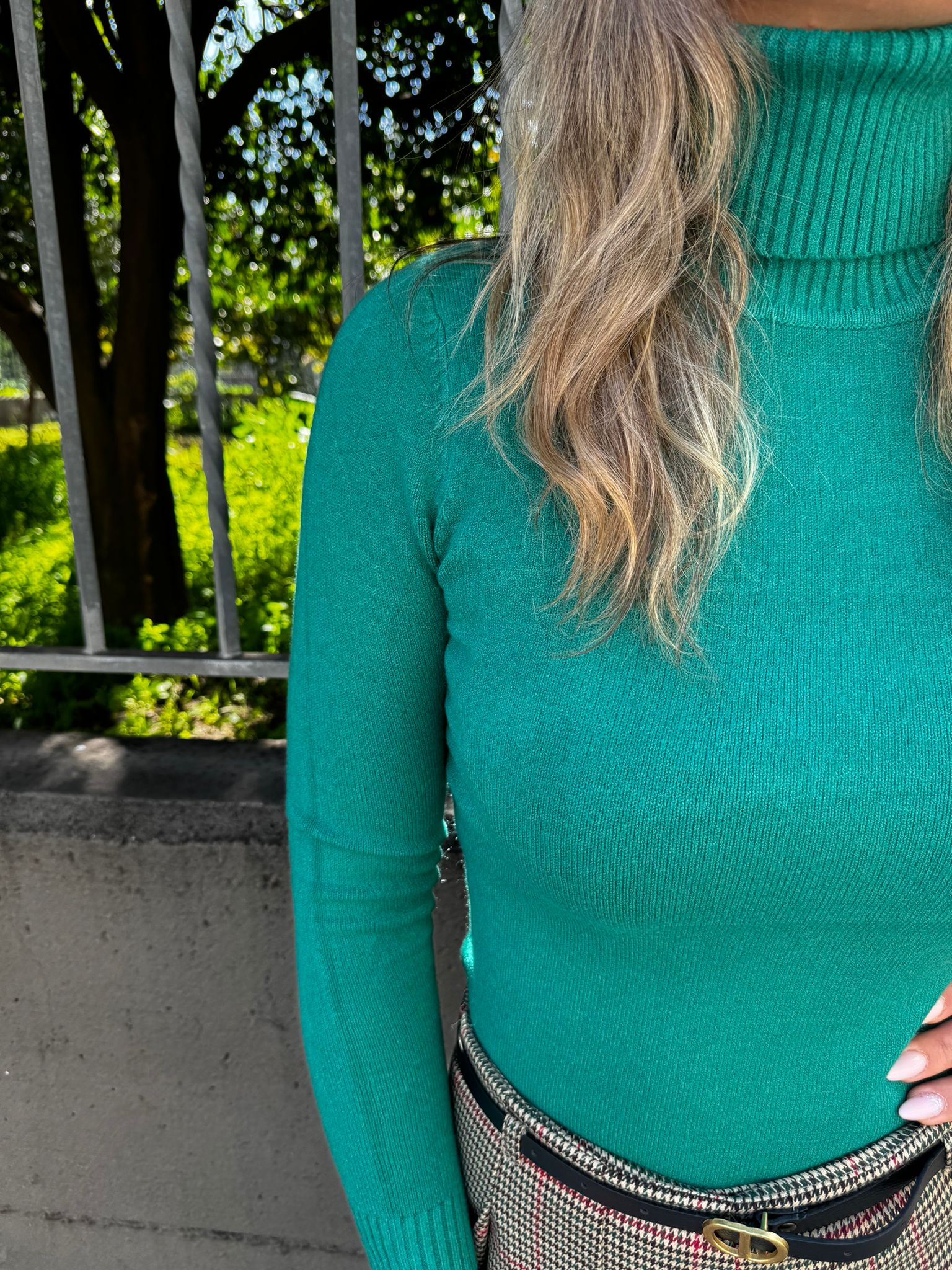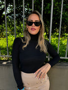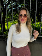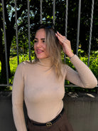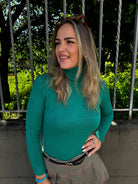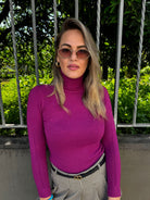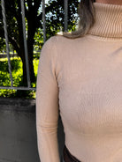 Maglione tinta unita con collo alto a costine