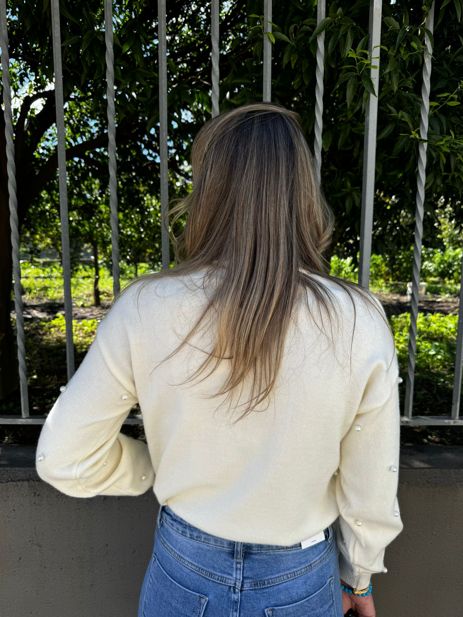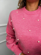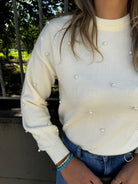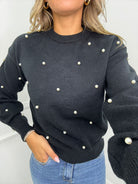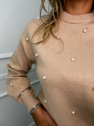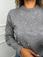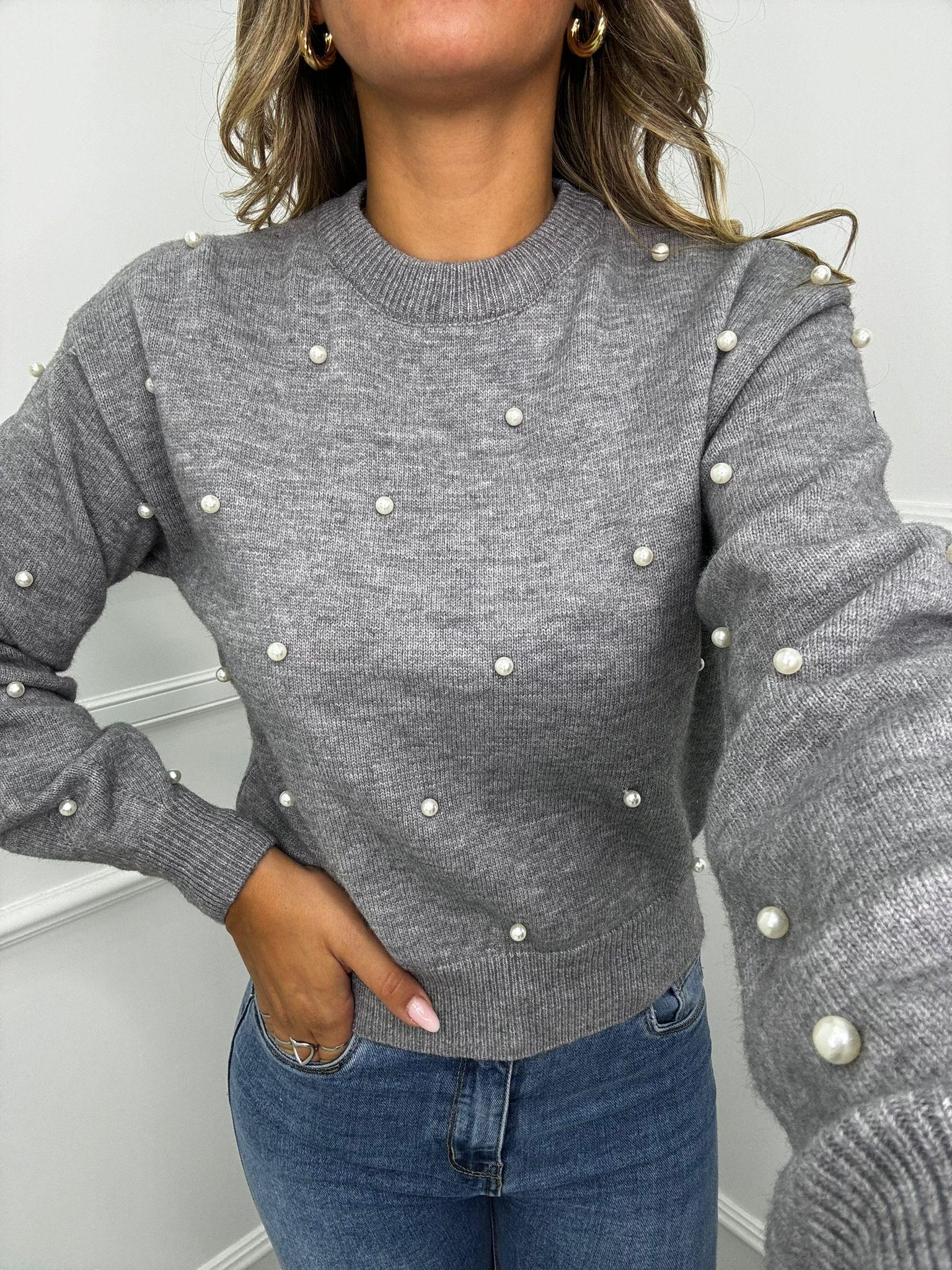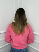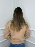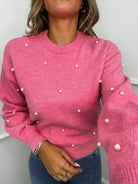 Maglione tinta unita con perle e maniche a sbuffo