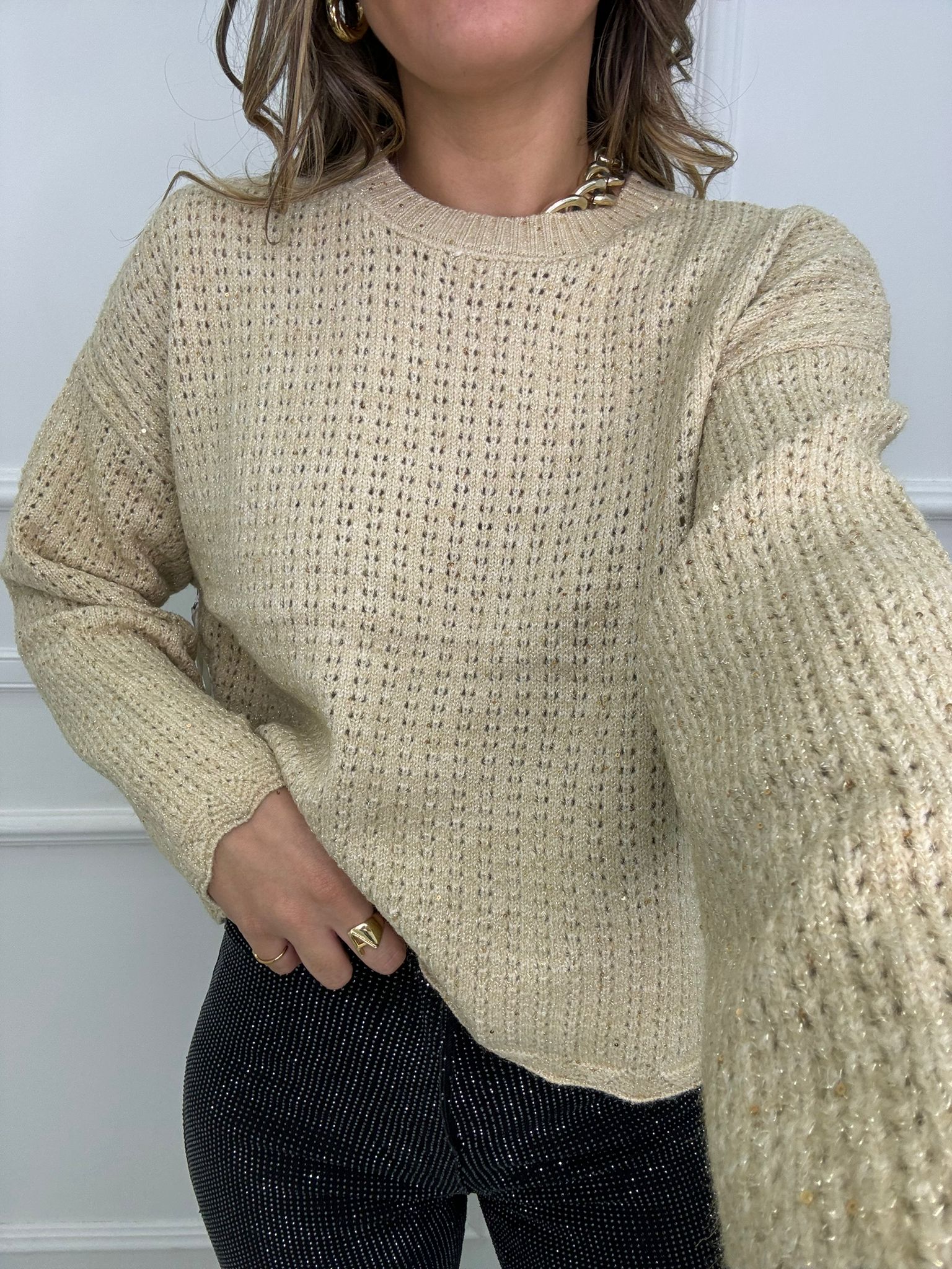 Maglione traforato effetto laminato