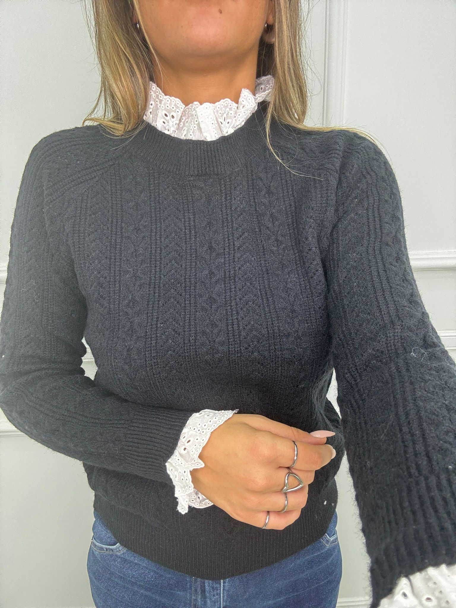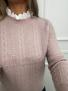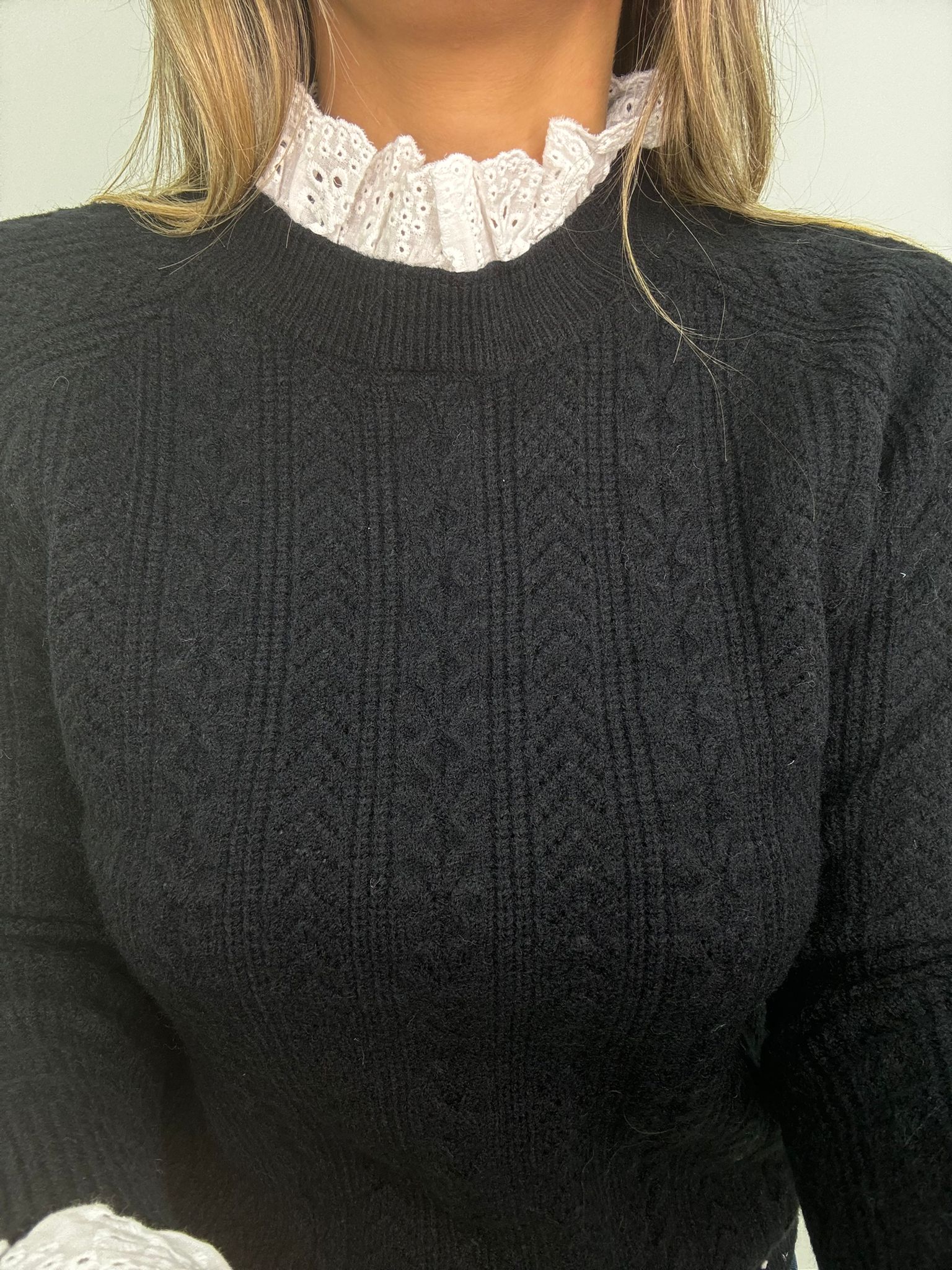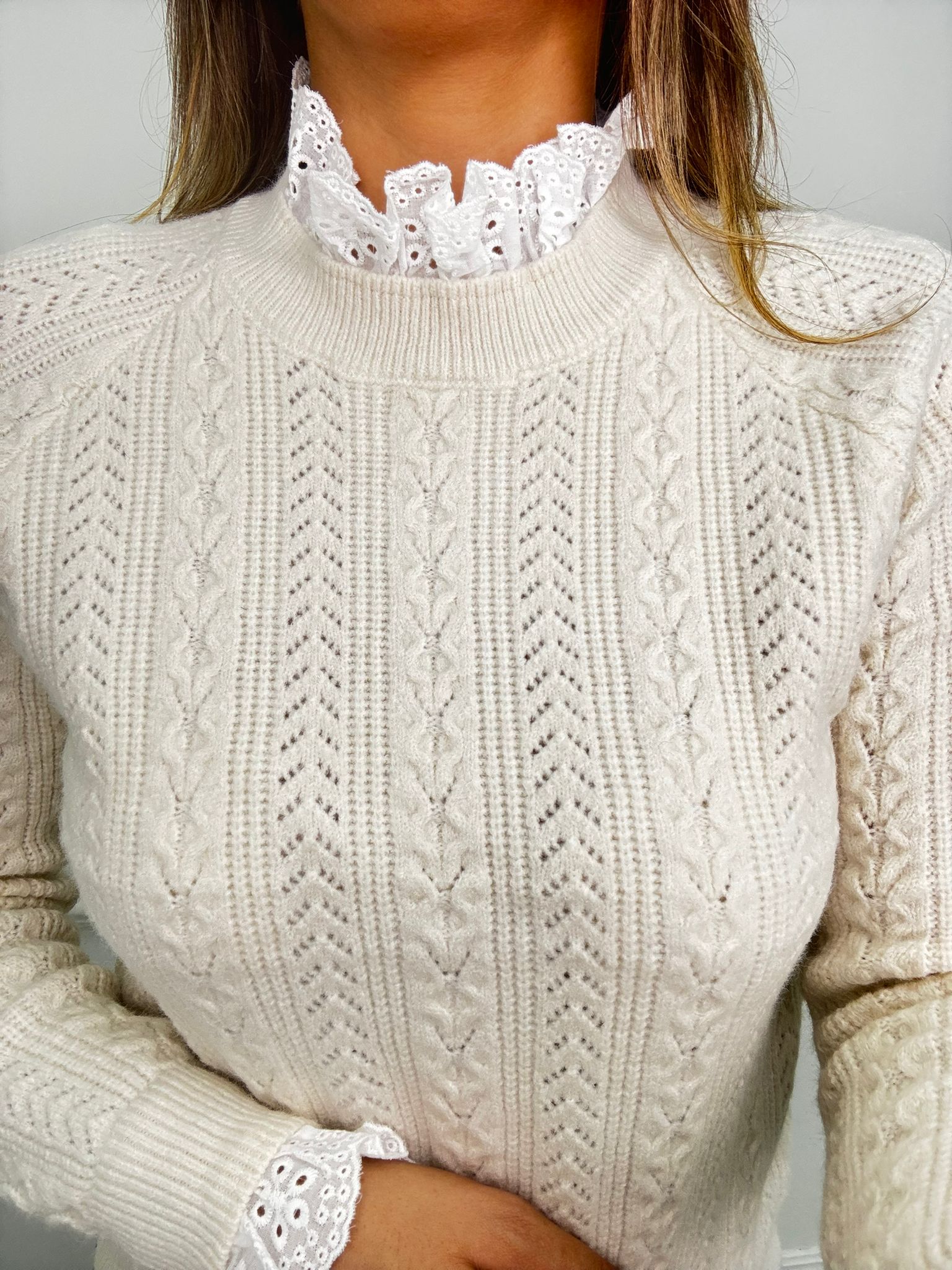 Maglione trama treccia con collo in merletto