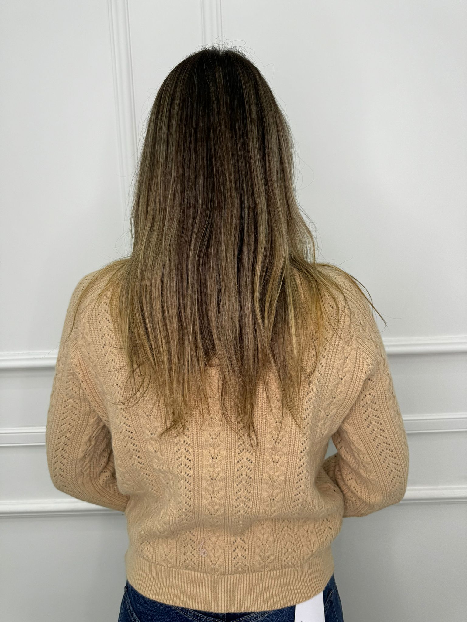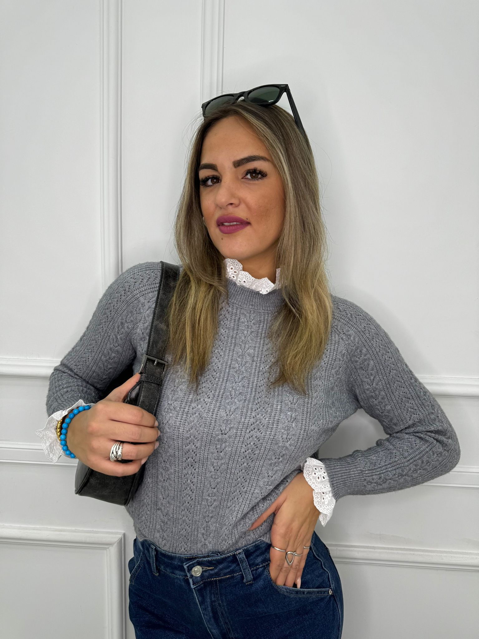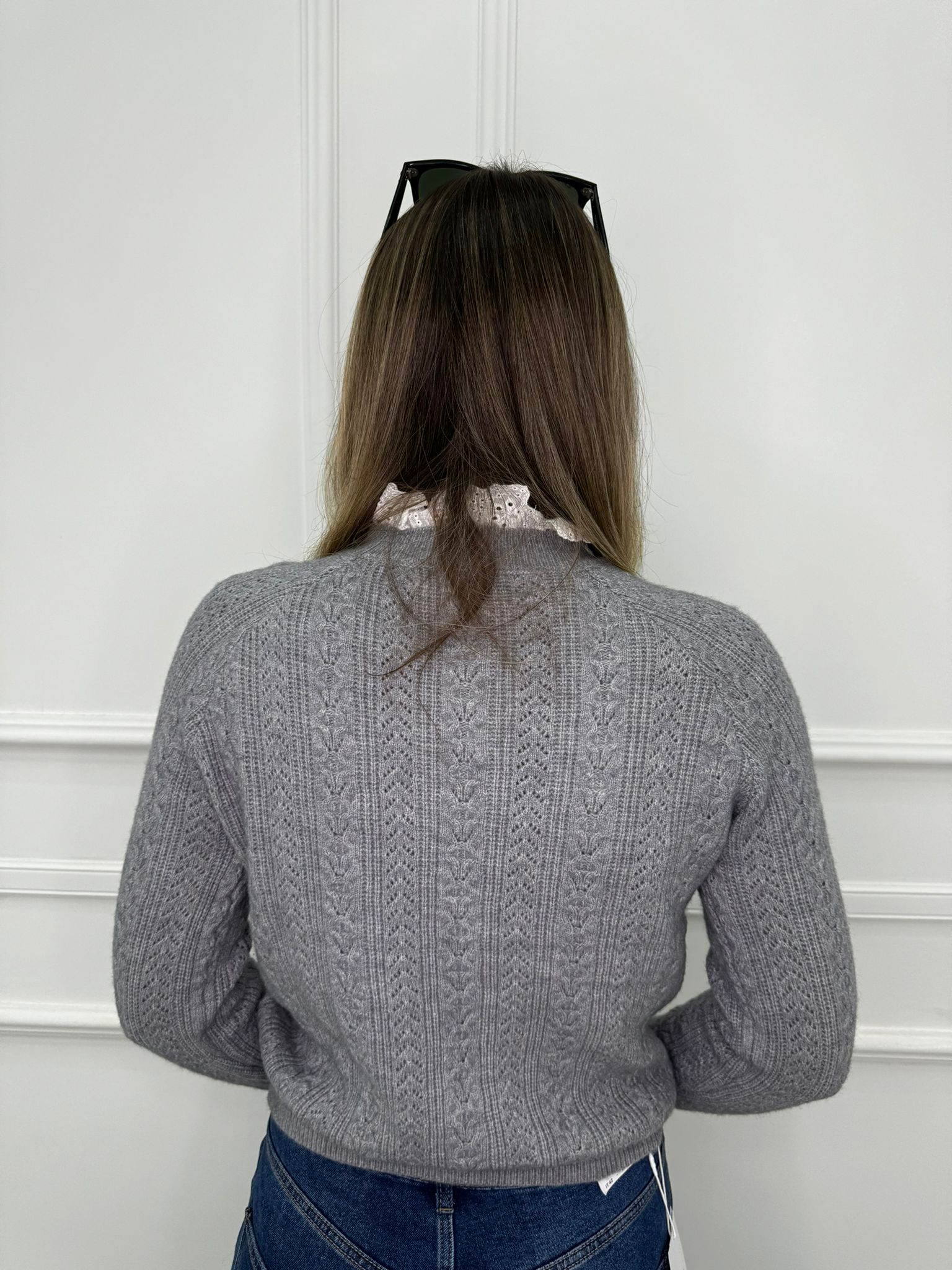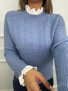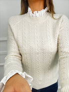 Maglione trama treccia con collo in merletto