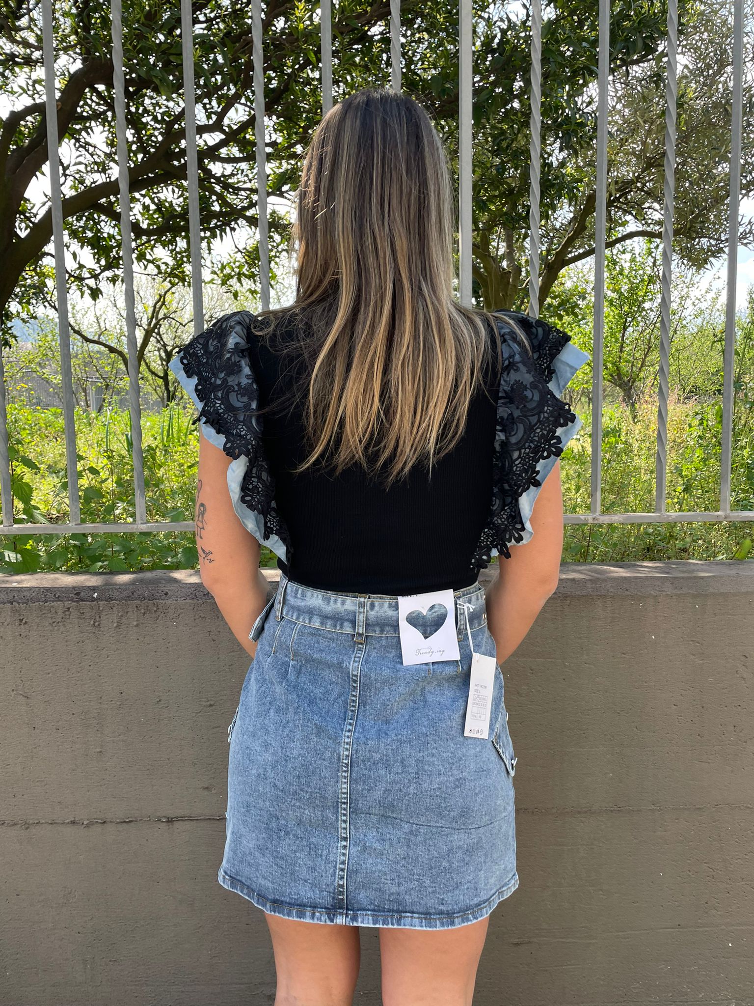 - La modella è una taglia 44, alta 1,79m e indossa la taglia "M"