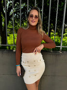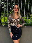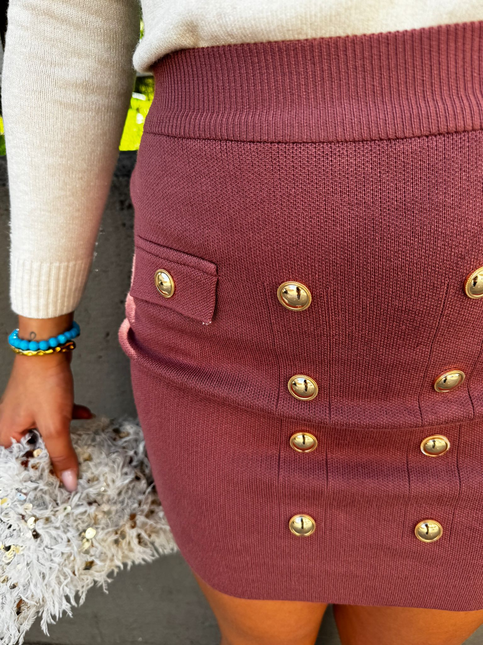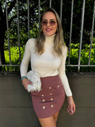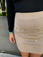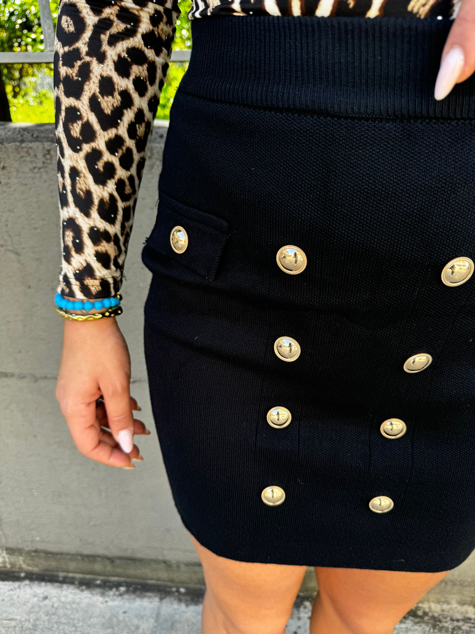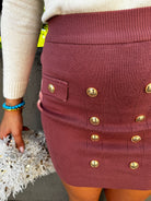 Mini gonna tinta unita con finti bottoni oro
