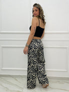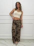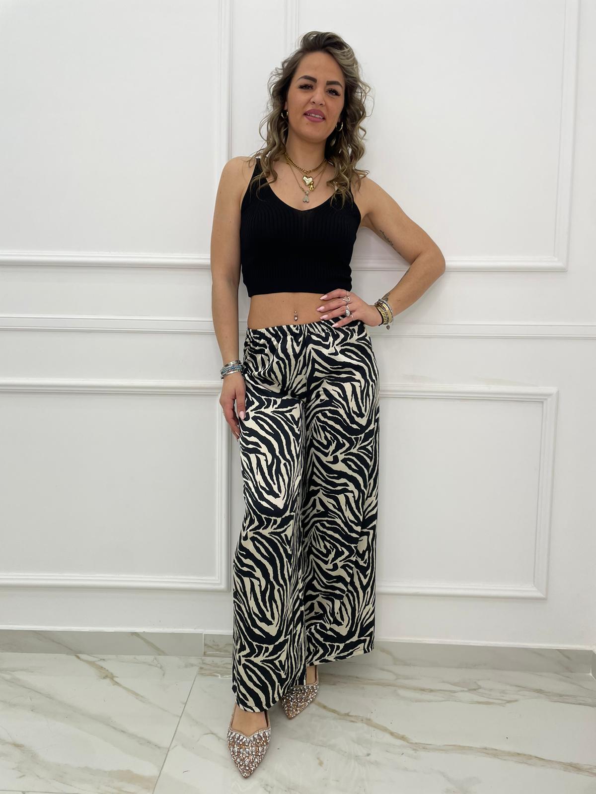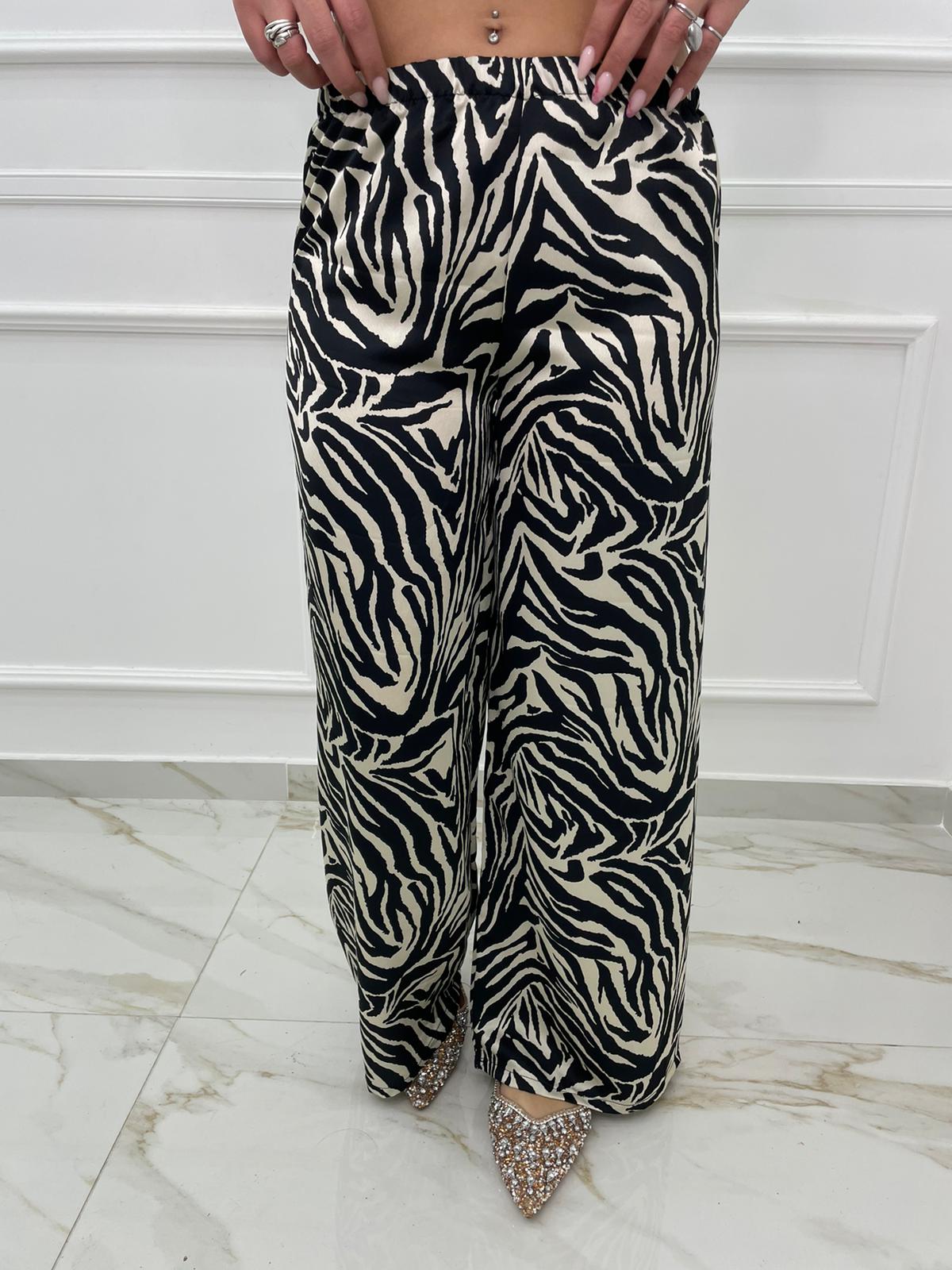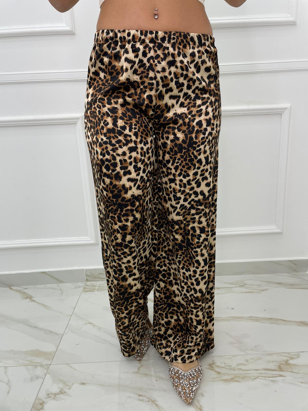 Pantalone animalier effetto seta modello palazzo