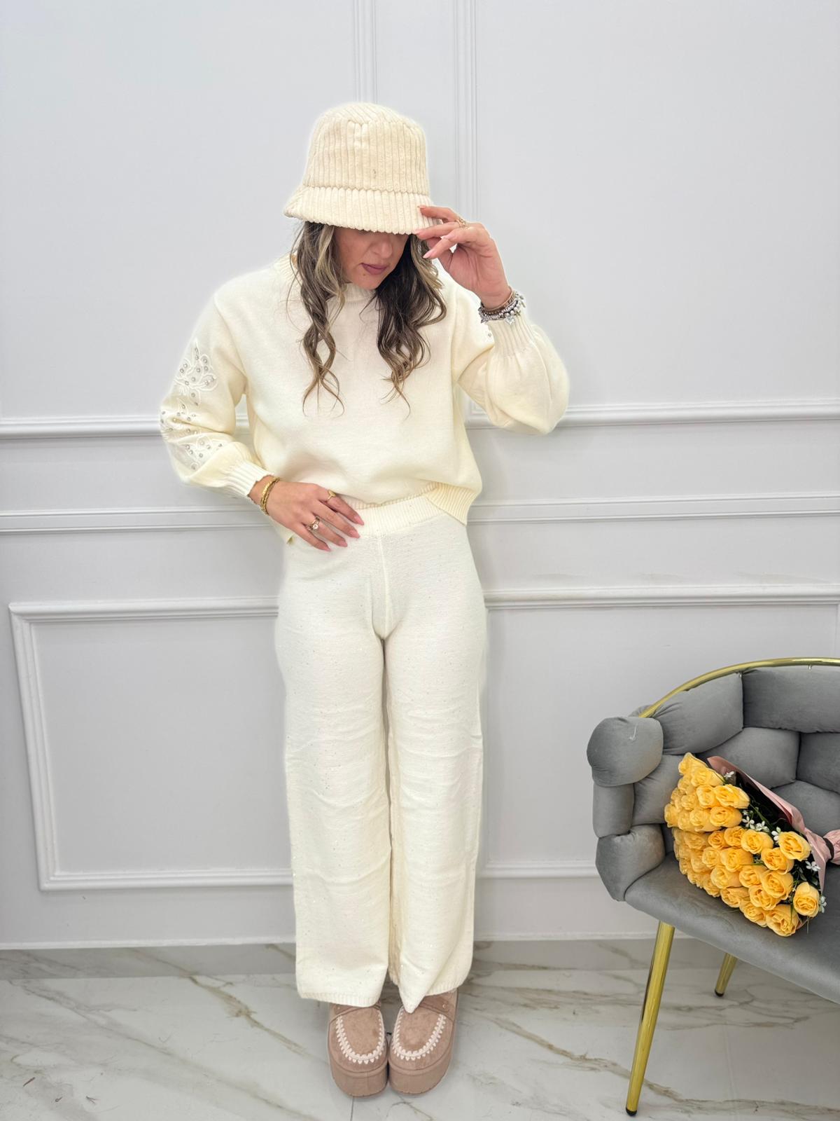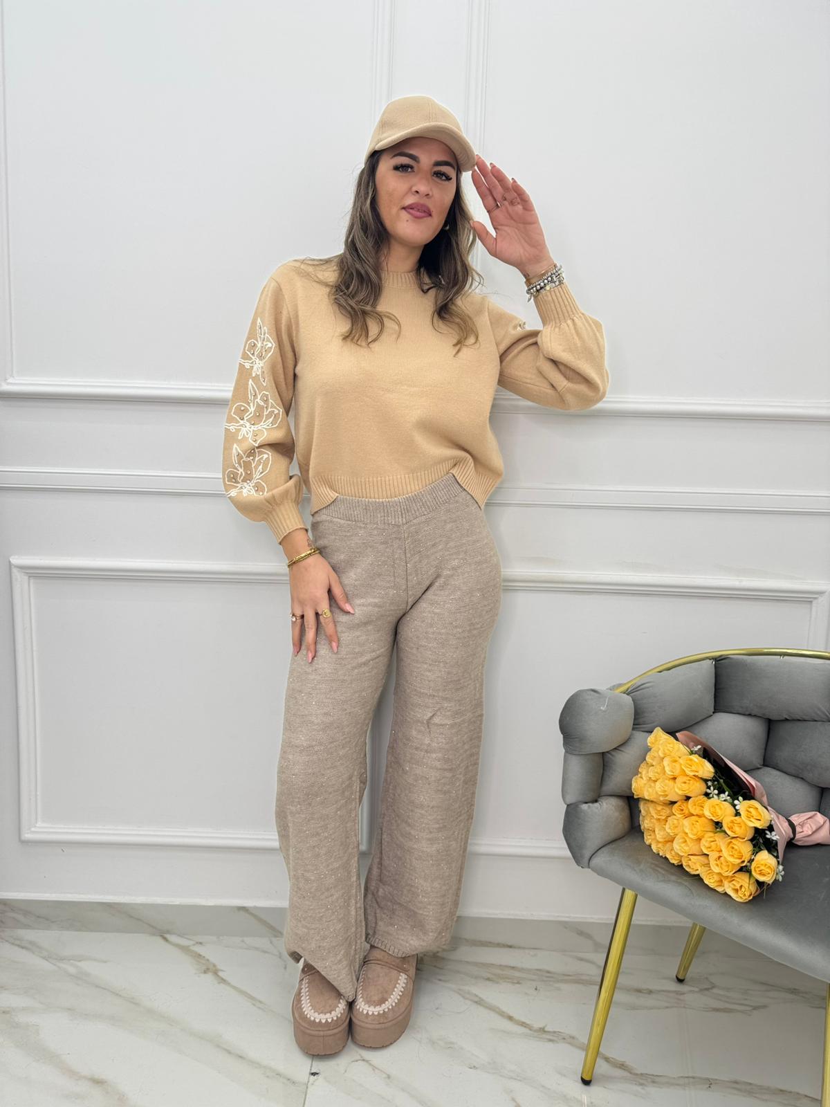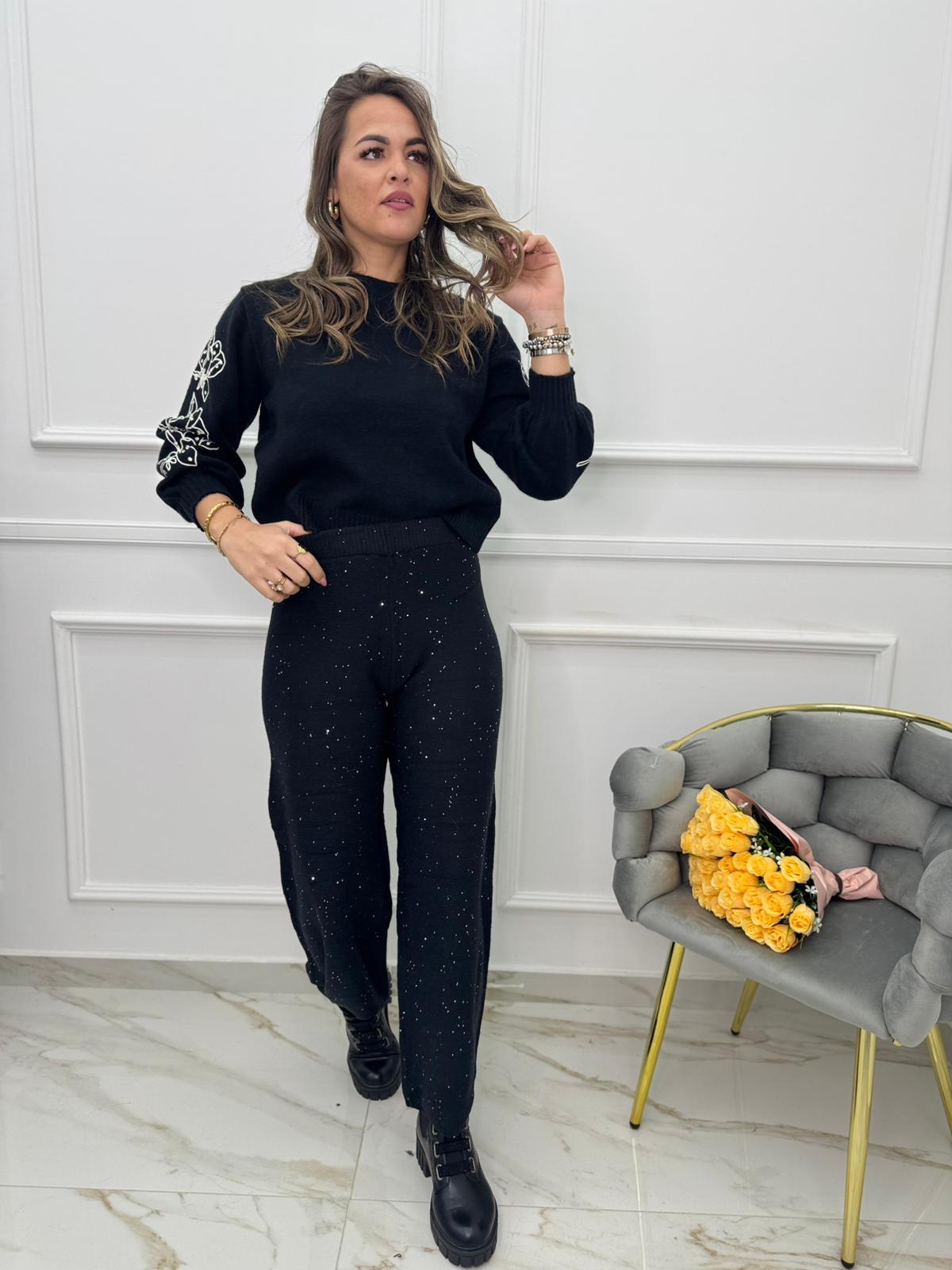 Pantalone in lana con paillettes
