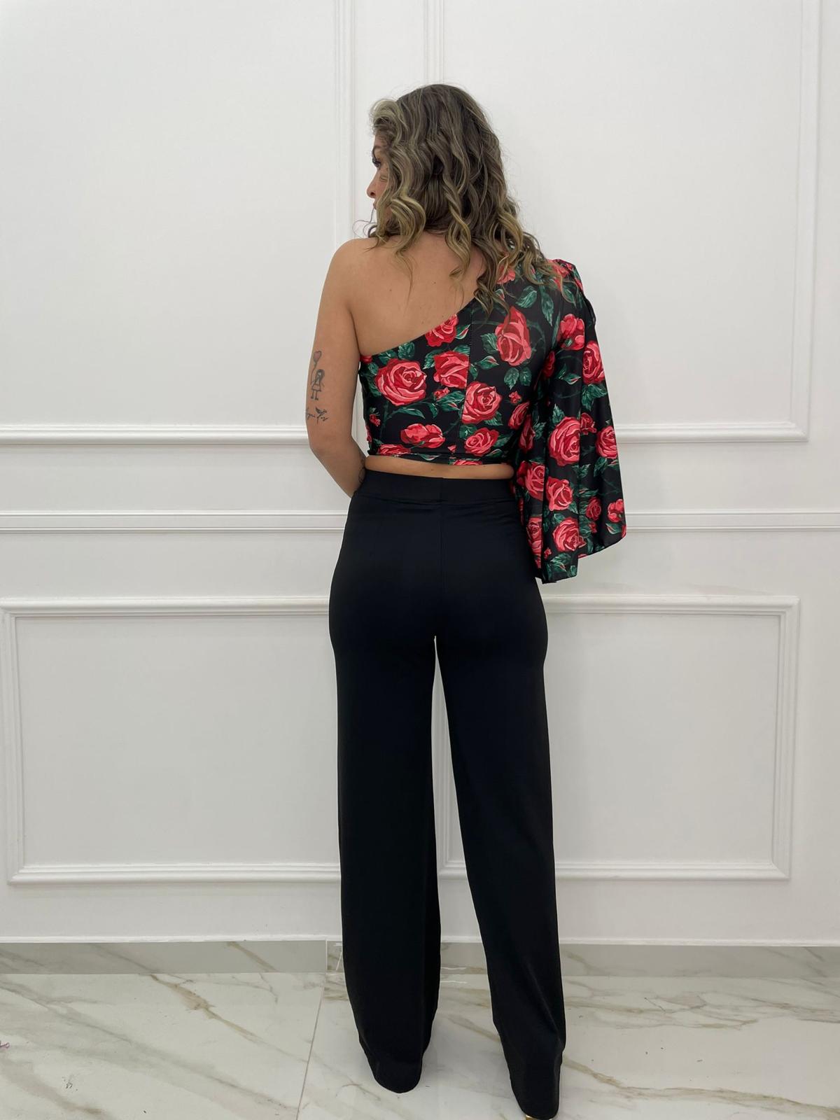 Pantalone nero in lycra modello palazzo