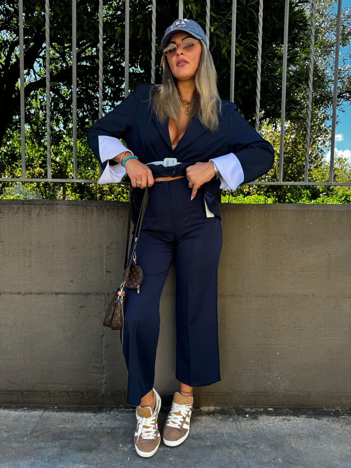 - La modella è una taglia 44, alta 1,79m e indossa la taglia "M"