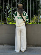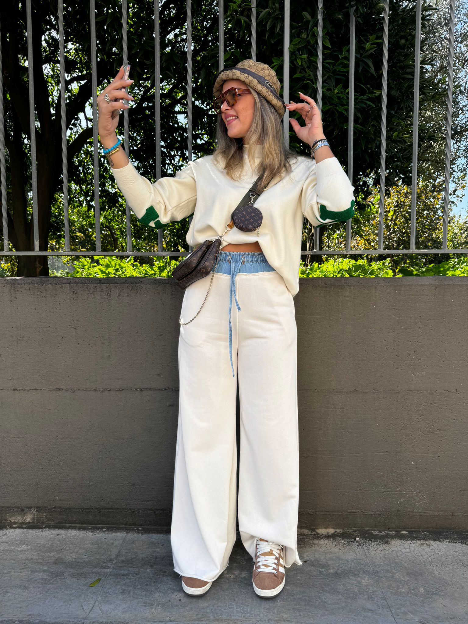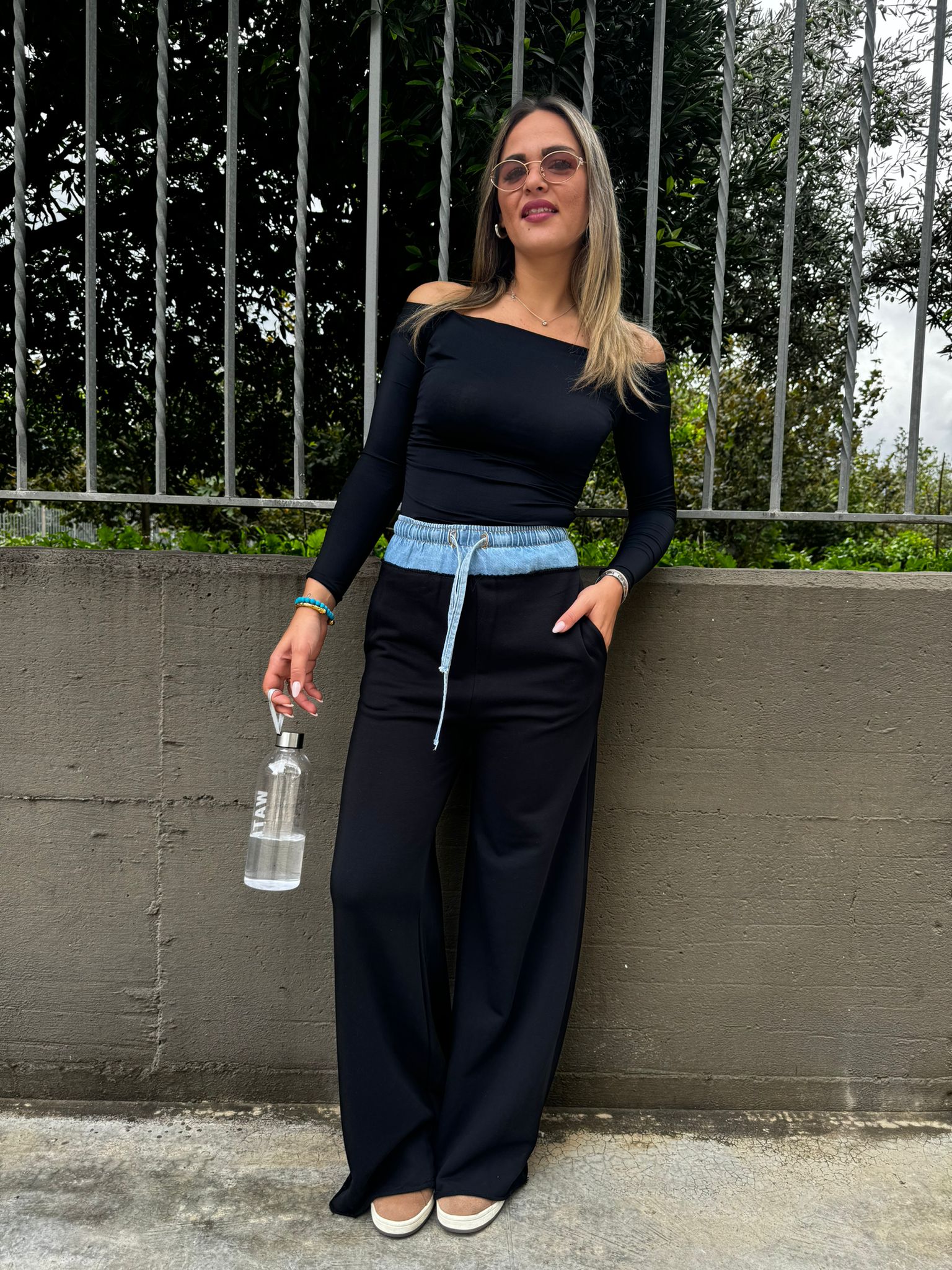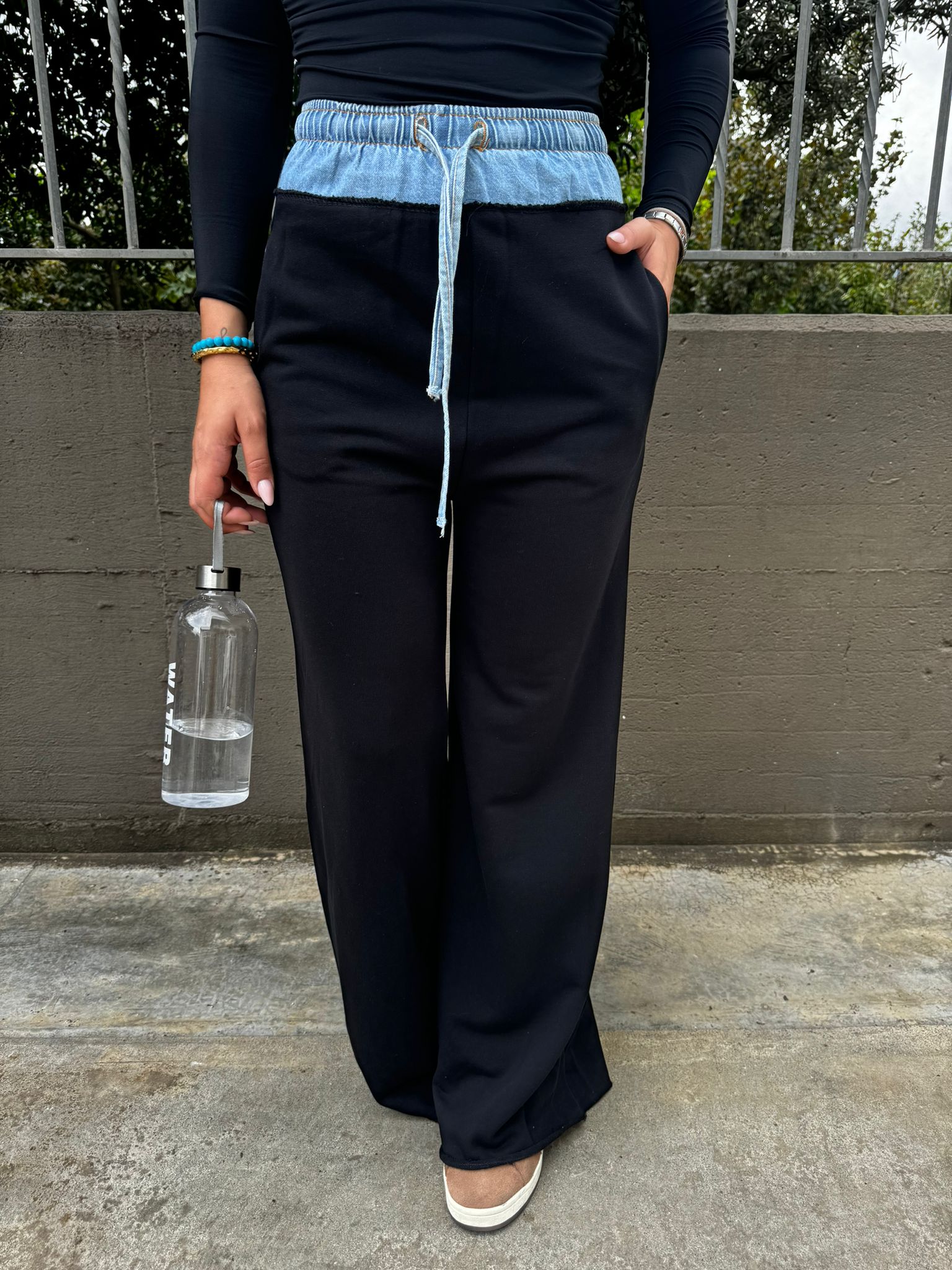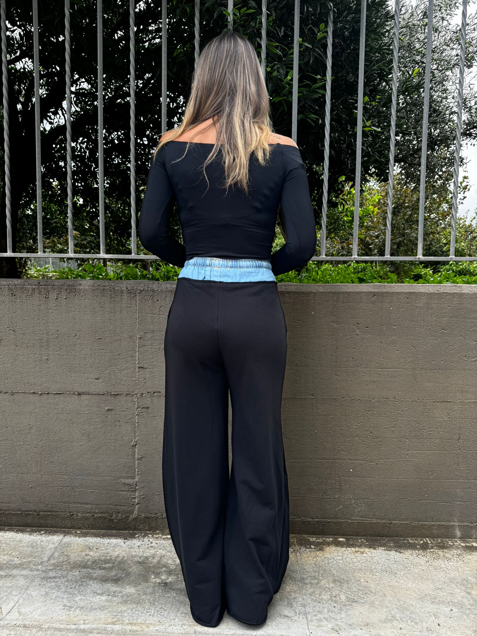 Pantalone tuta palazzo con bustino in jeans